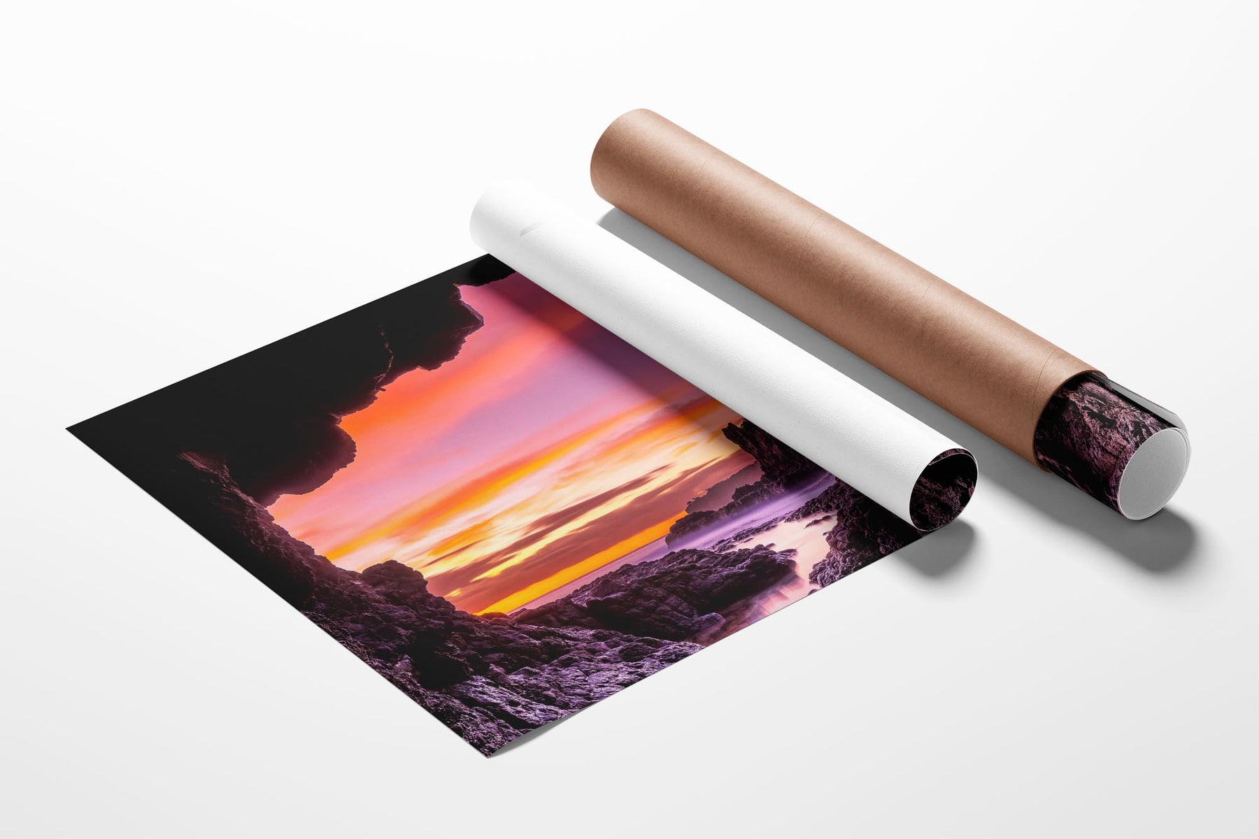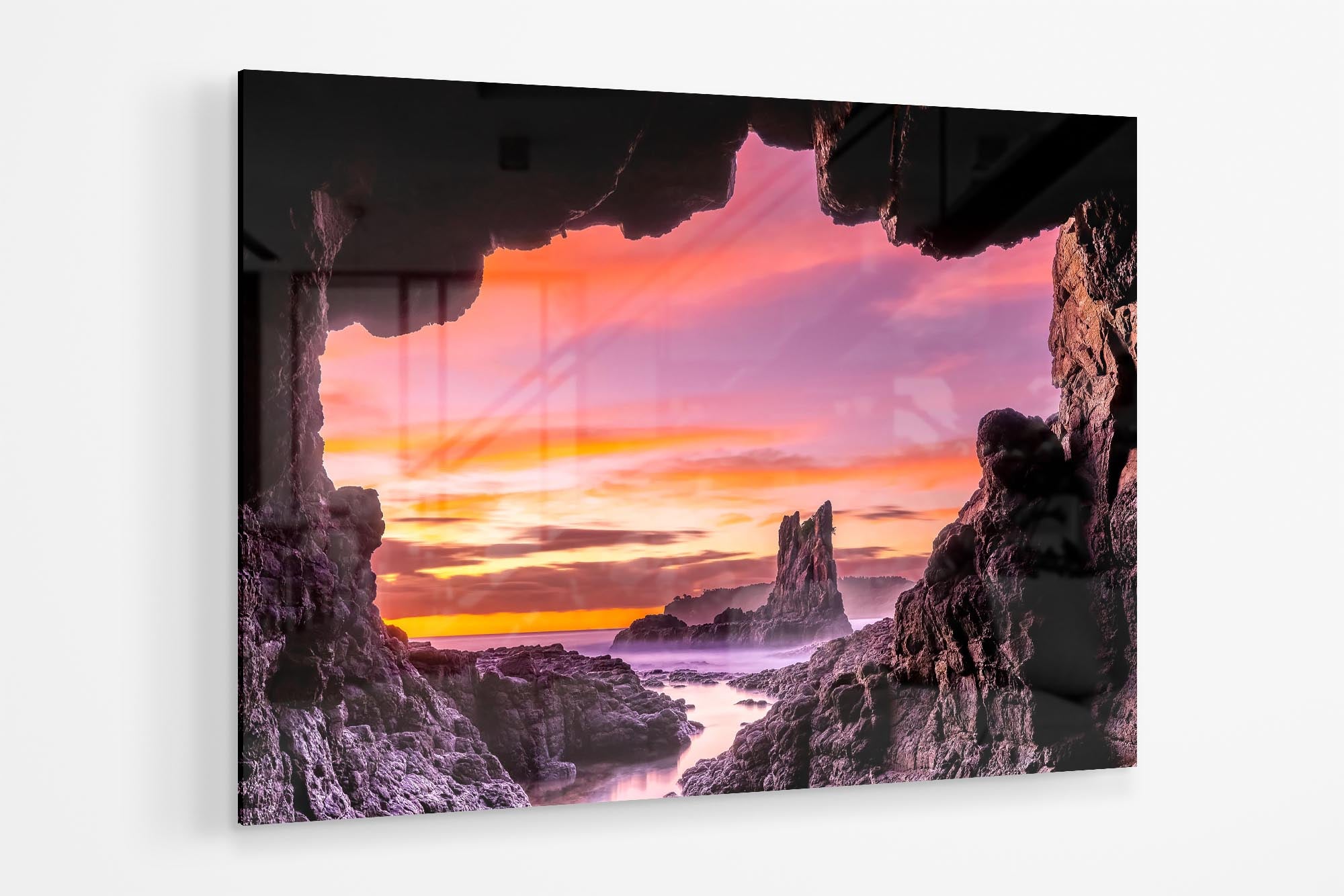 Witness the raw power and beauty of the Illawarra coast with this fine art photo print, showcasing a fiery sunrise blazing through the iconic sea cave at Cathedral Rocks in Kiama. As dawn breaks, golden light ignites the sky, casting a warm glow over the rugged basalt cliffs as waves crash along the rocky shoreline. Perfect for modern interiors, coastal homes or offices, this ocean artwork elevates spaces with timeless elegance while serving as a meaningful gift for adventurers, photographers, or admirers of the Illawarra’s untamed beauty.