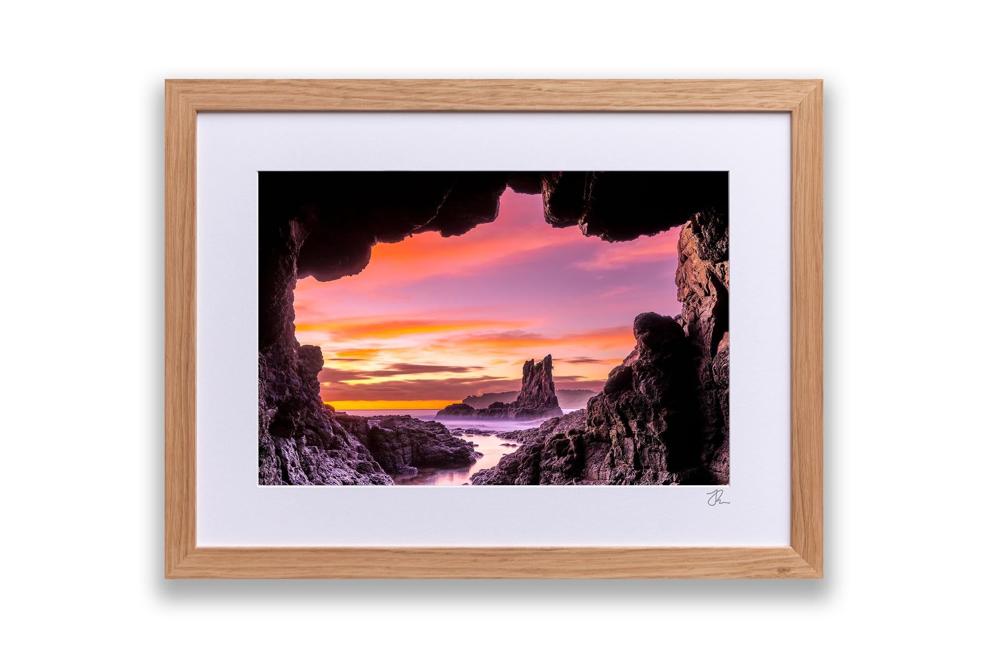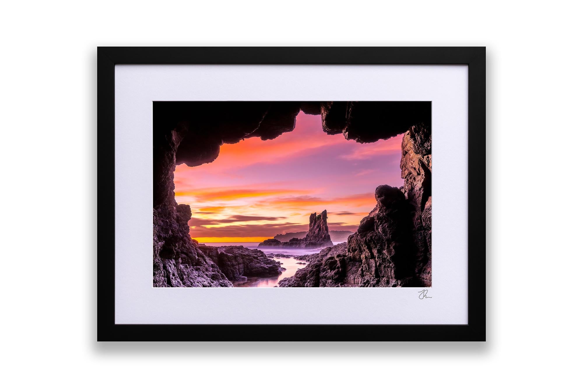 Fiery Sunrise Fine Art Print | Cathedral Rocks, Kiama – Sea Cave Photography & Illawarra Wall Art