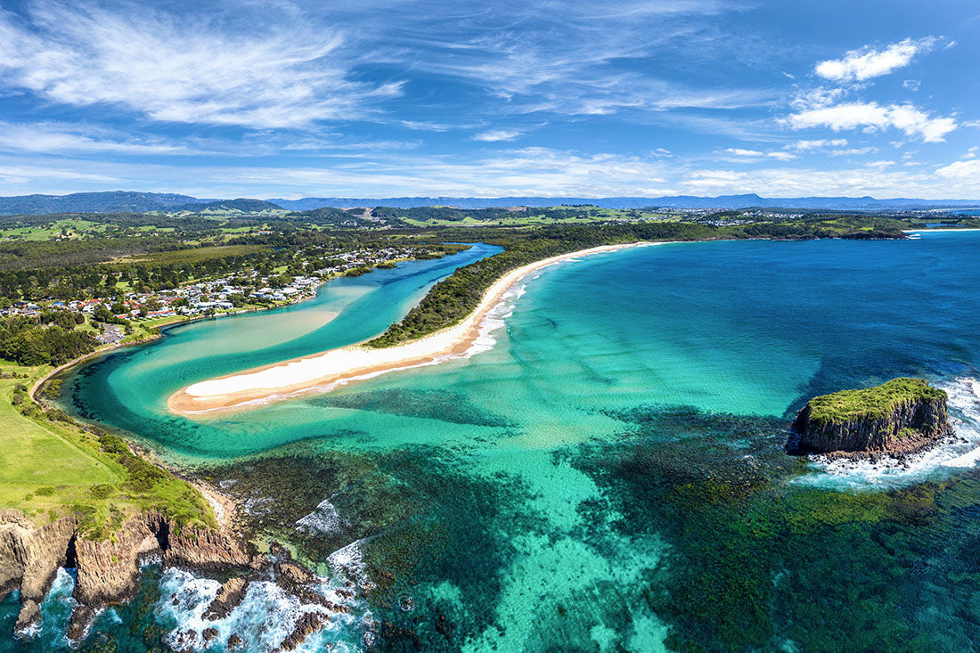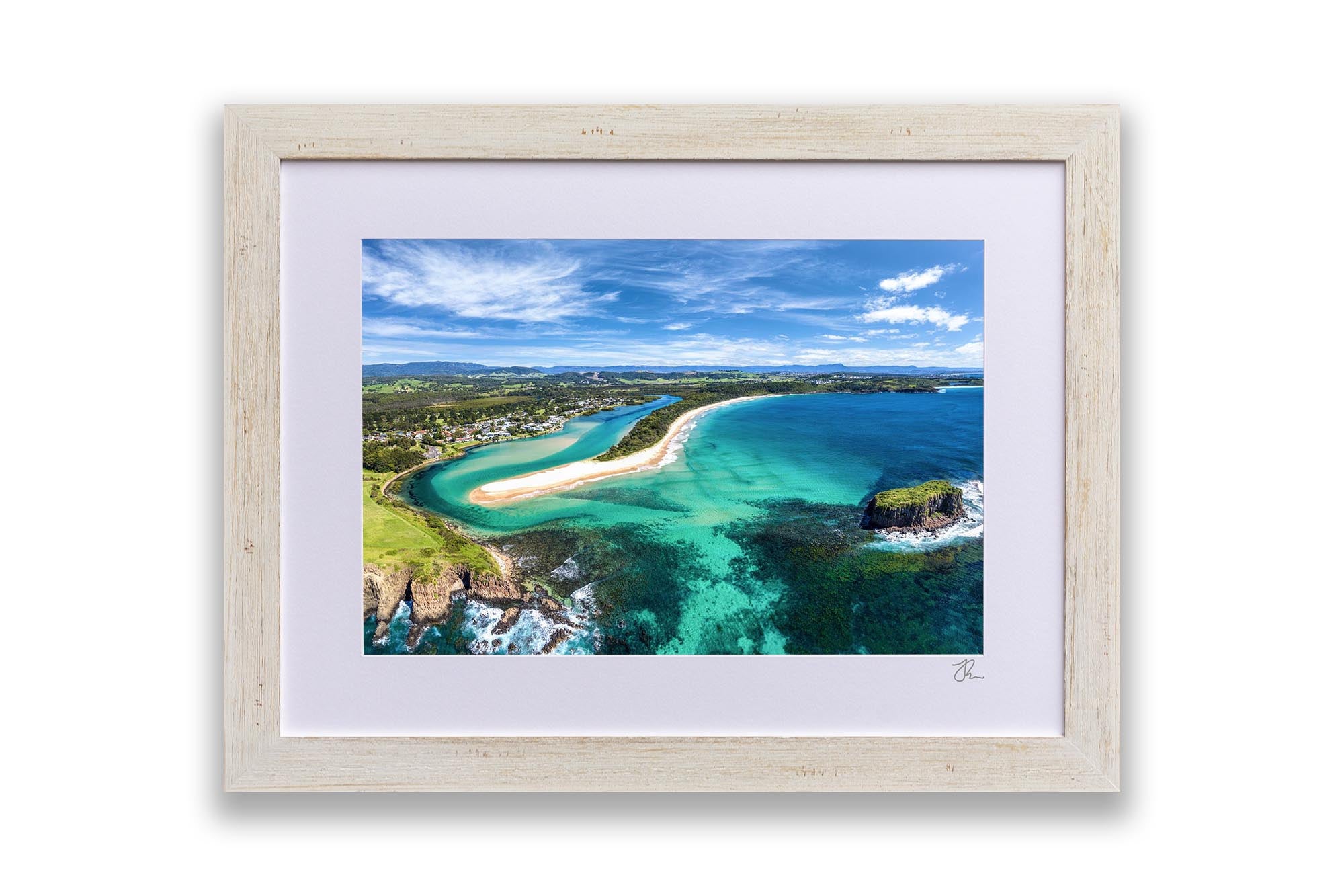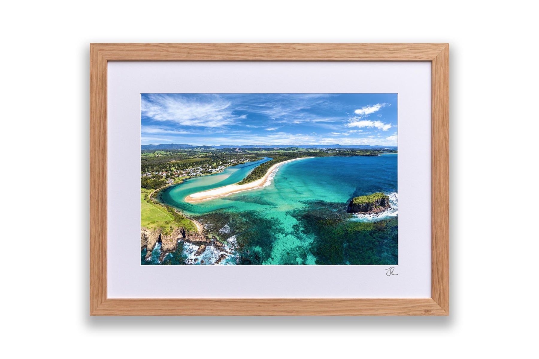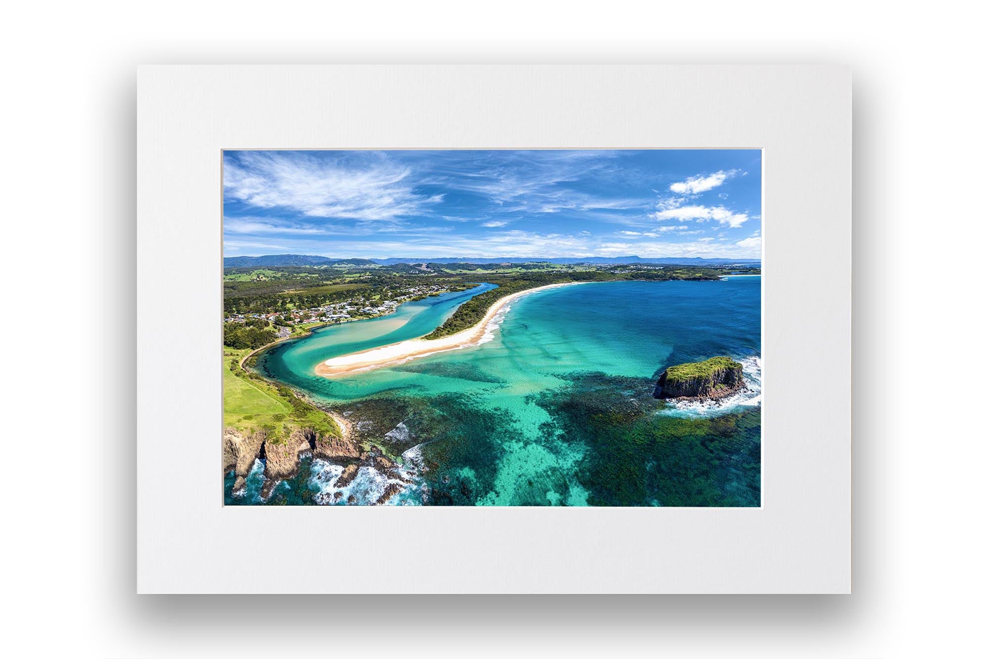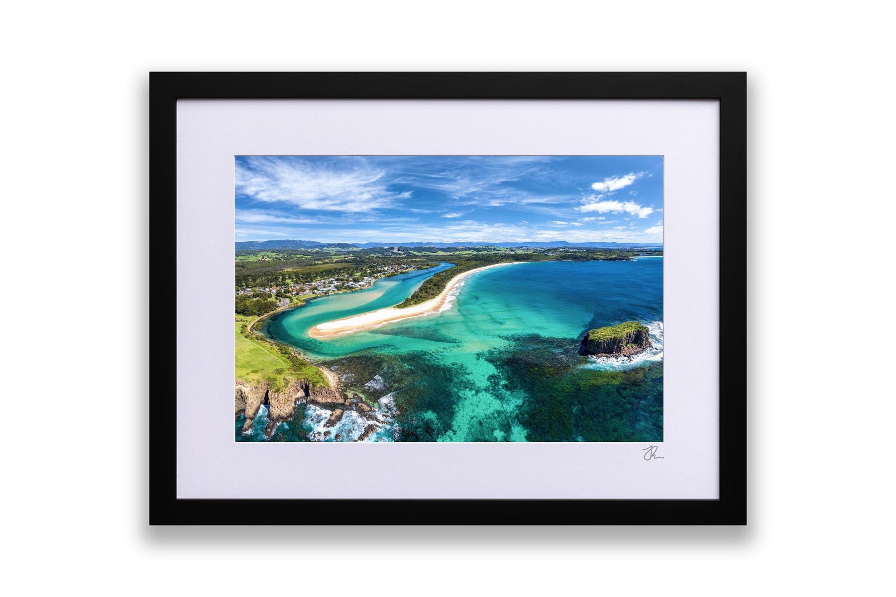 Birds Eye View Fine Art Print | Minnamurra River, Mystics Beach & Rangoon Island – Illawarra Coastal Photography