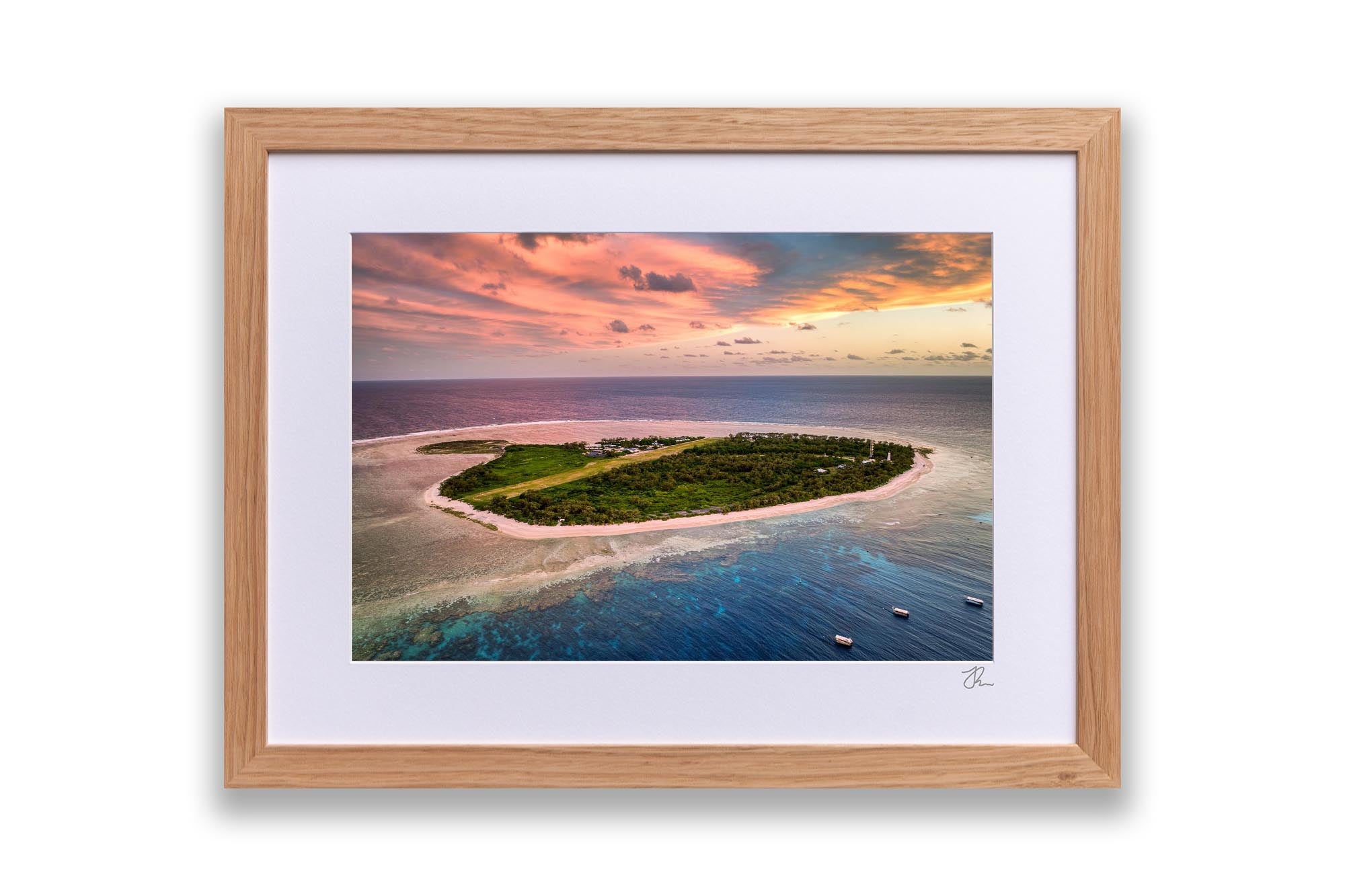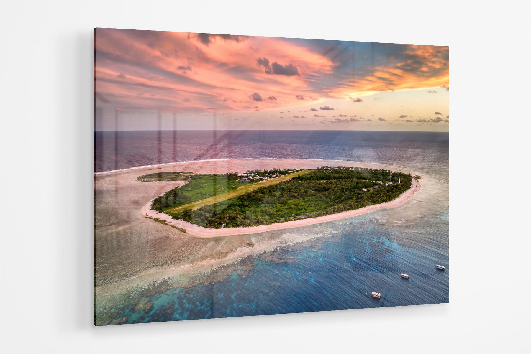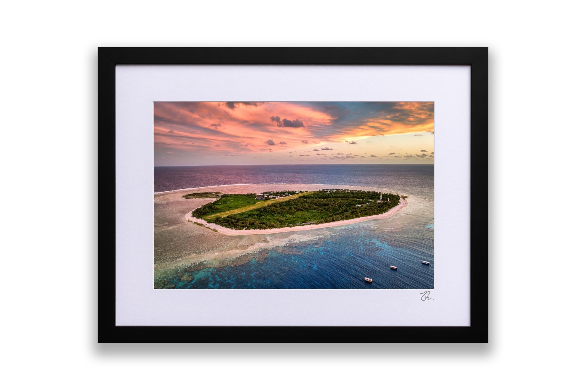 Photo print of an aerial view of the stunning island, the southernmost island of the Southern Great Barrier Reef, Queensland.