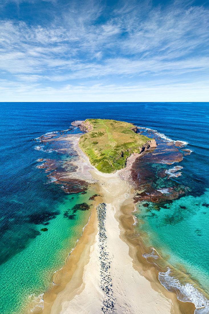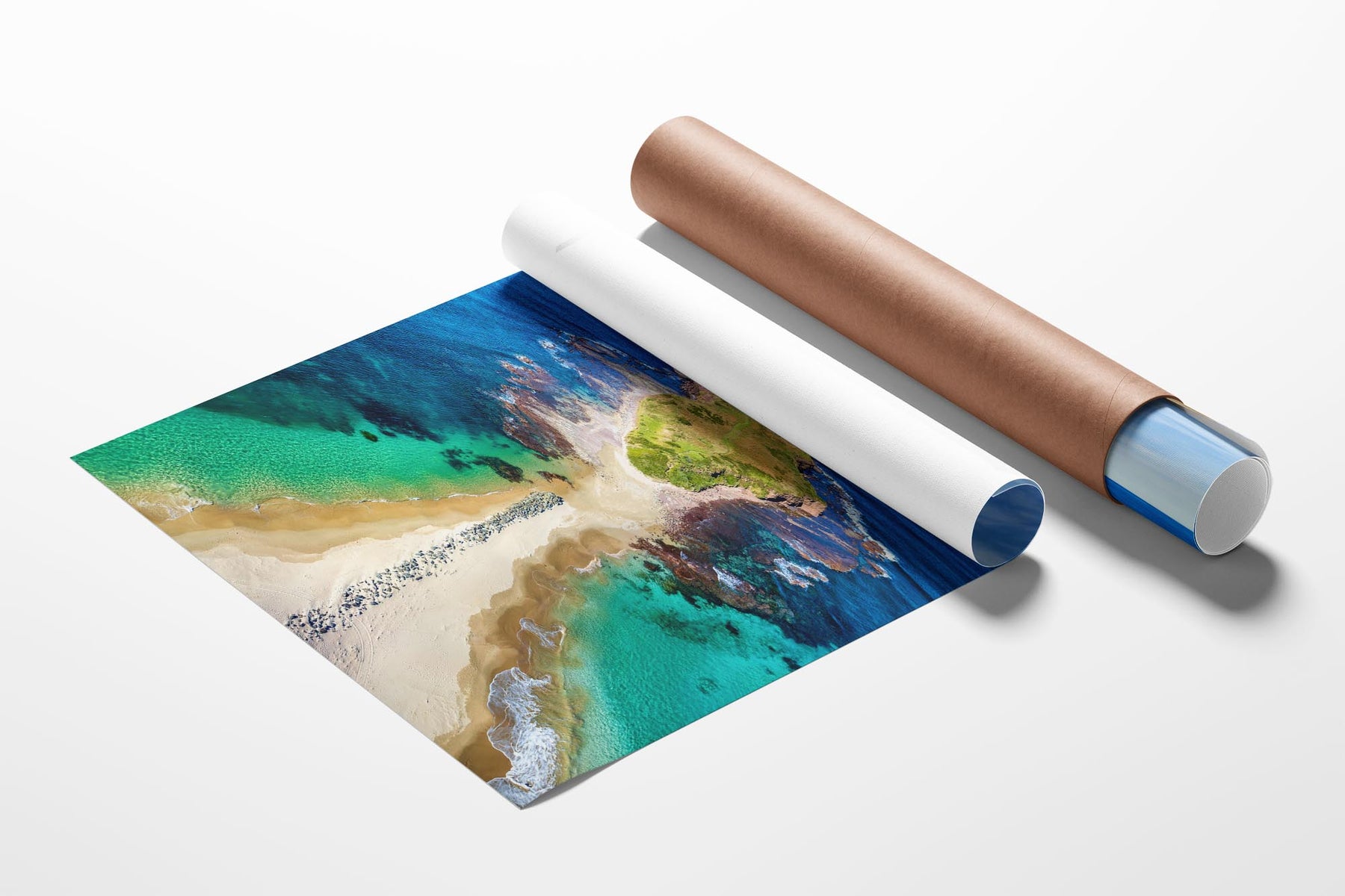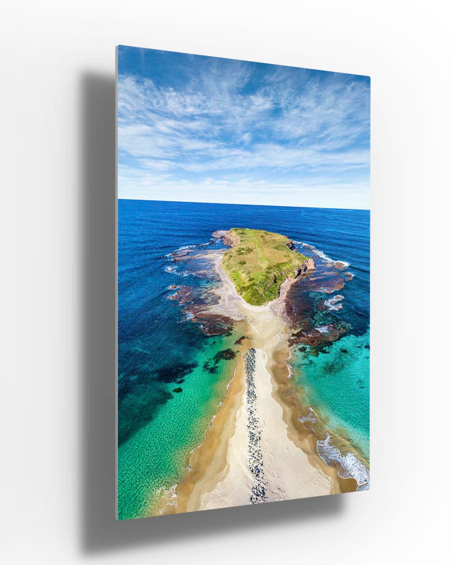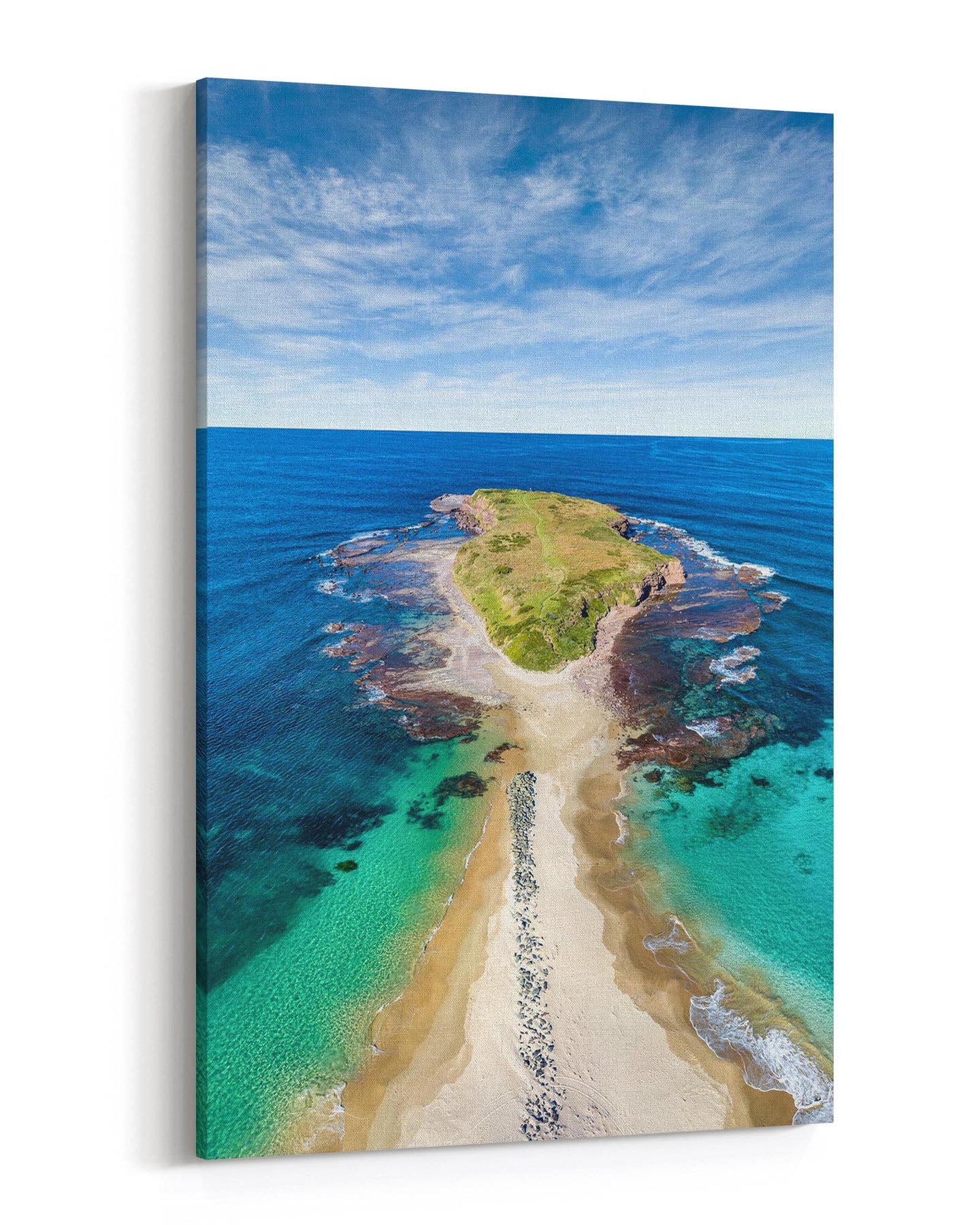 Soar above the Illawarra region with this fine art aerial photo print, capturing the serene beauty of Windang Island and its golden shores at Windang Beach. Shot from a drone, this breathtaking perspective reveals the island’s rugged charm and the endless stretch of turquoise waters that define this iconic coastal landscape. Its coastal elegance elevates modern interiors, beach houses, or offices with timeless tranquility, while serving as a thoughtful gift for surfers, ocean enthusiasts or admirers of the Illawarra’s unspoiled beauty.