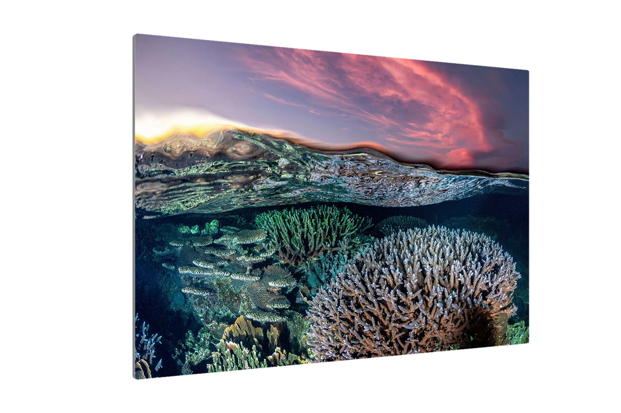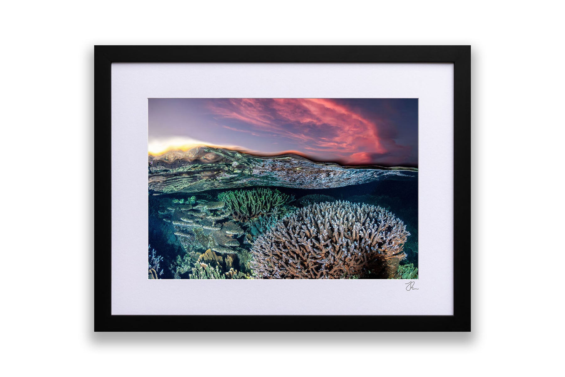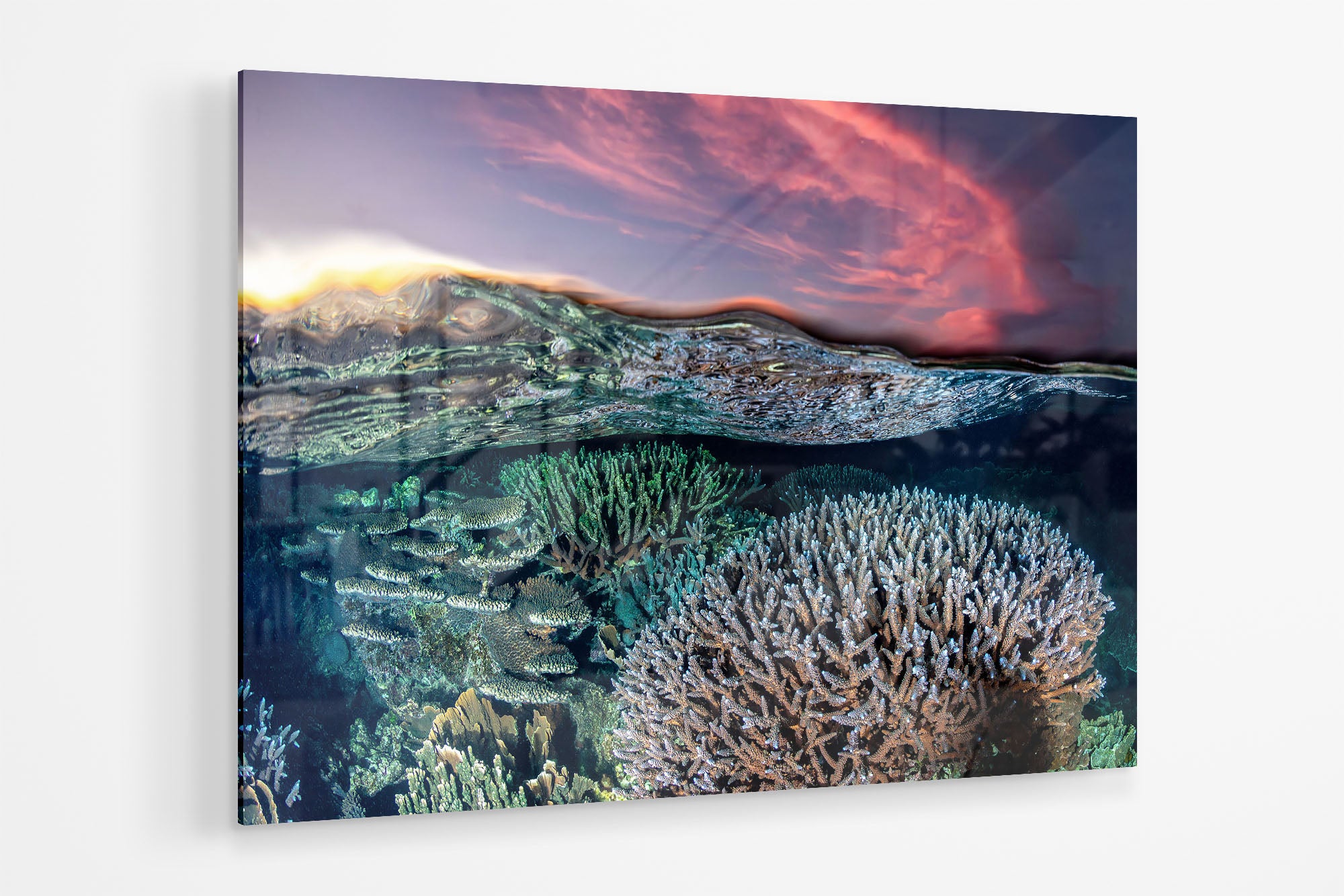 Vivid Sunset & Coral Split Shot Print – Coral Bay, Ningaloo Reef, Western Australia