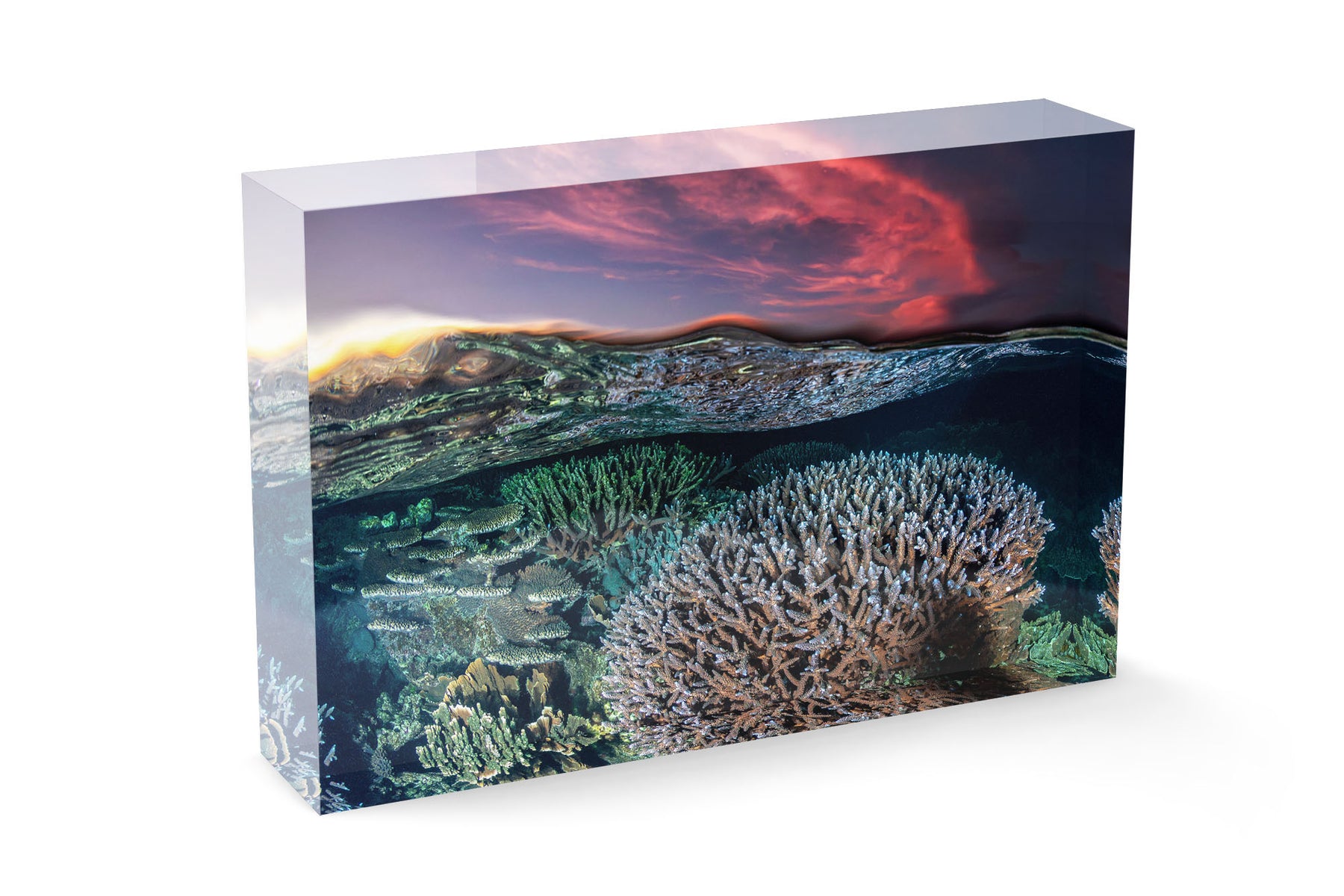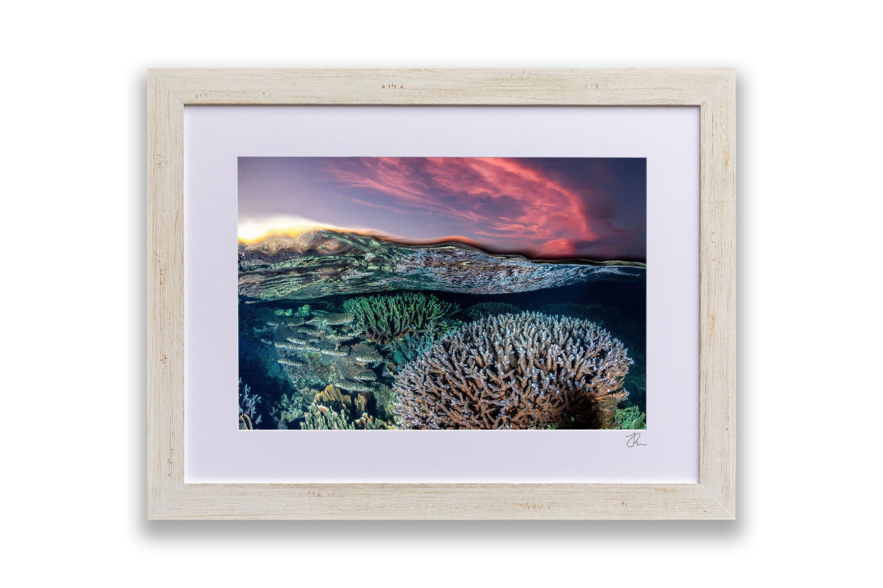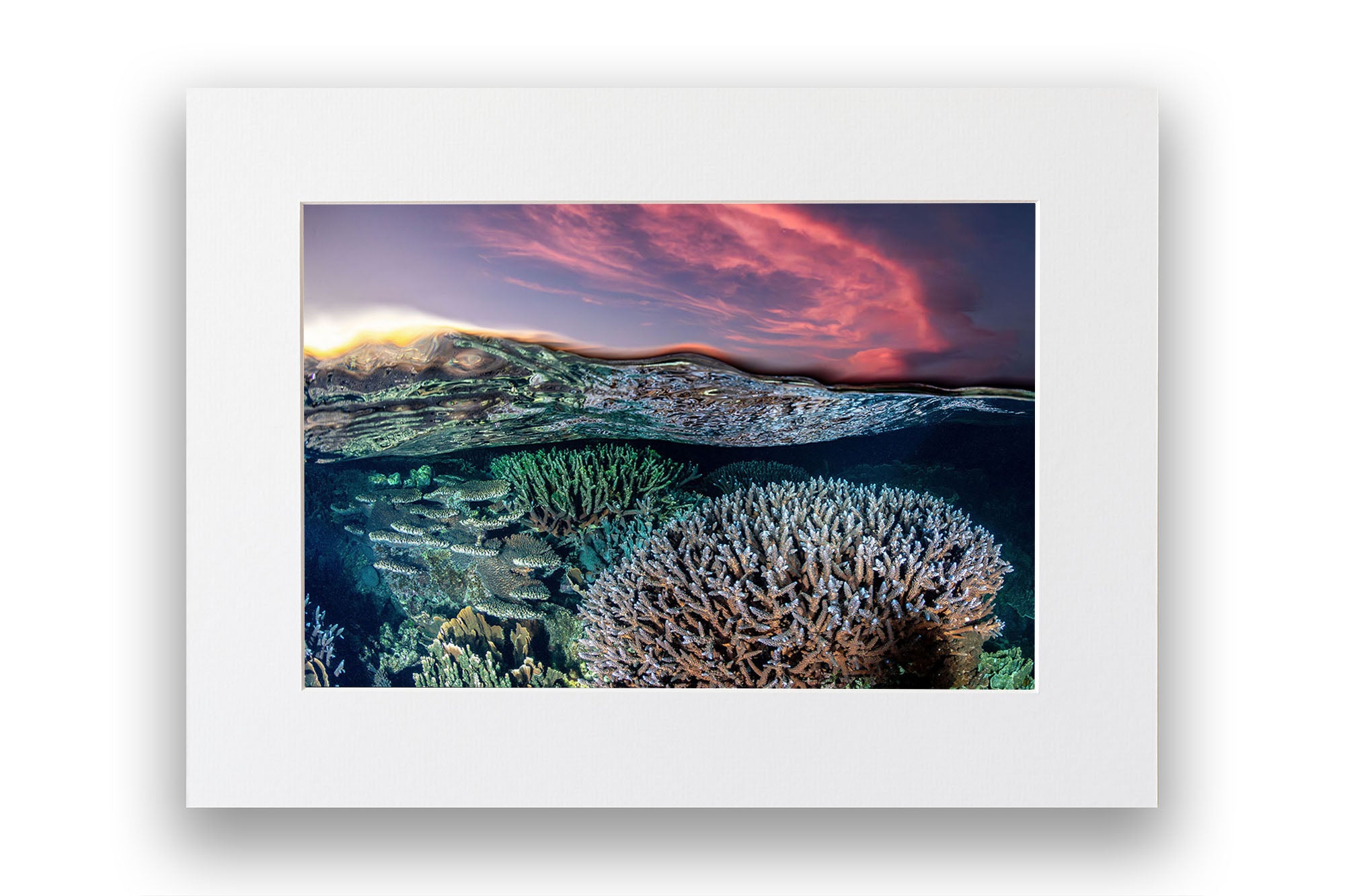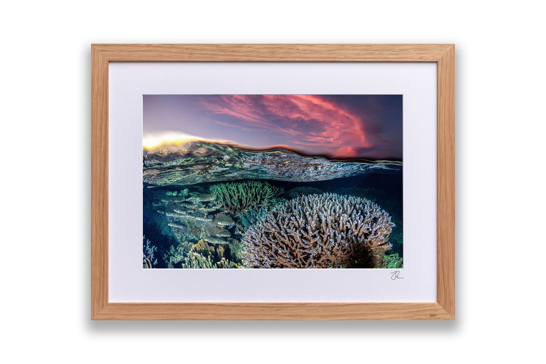 Vivid Sunset & Coral Split Shot Print – Coral Bay, Ningaloo Reef, Western Australia