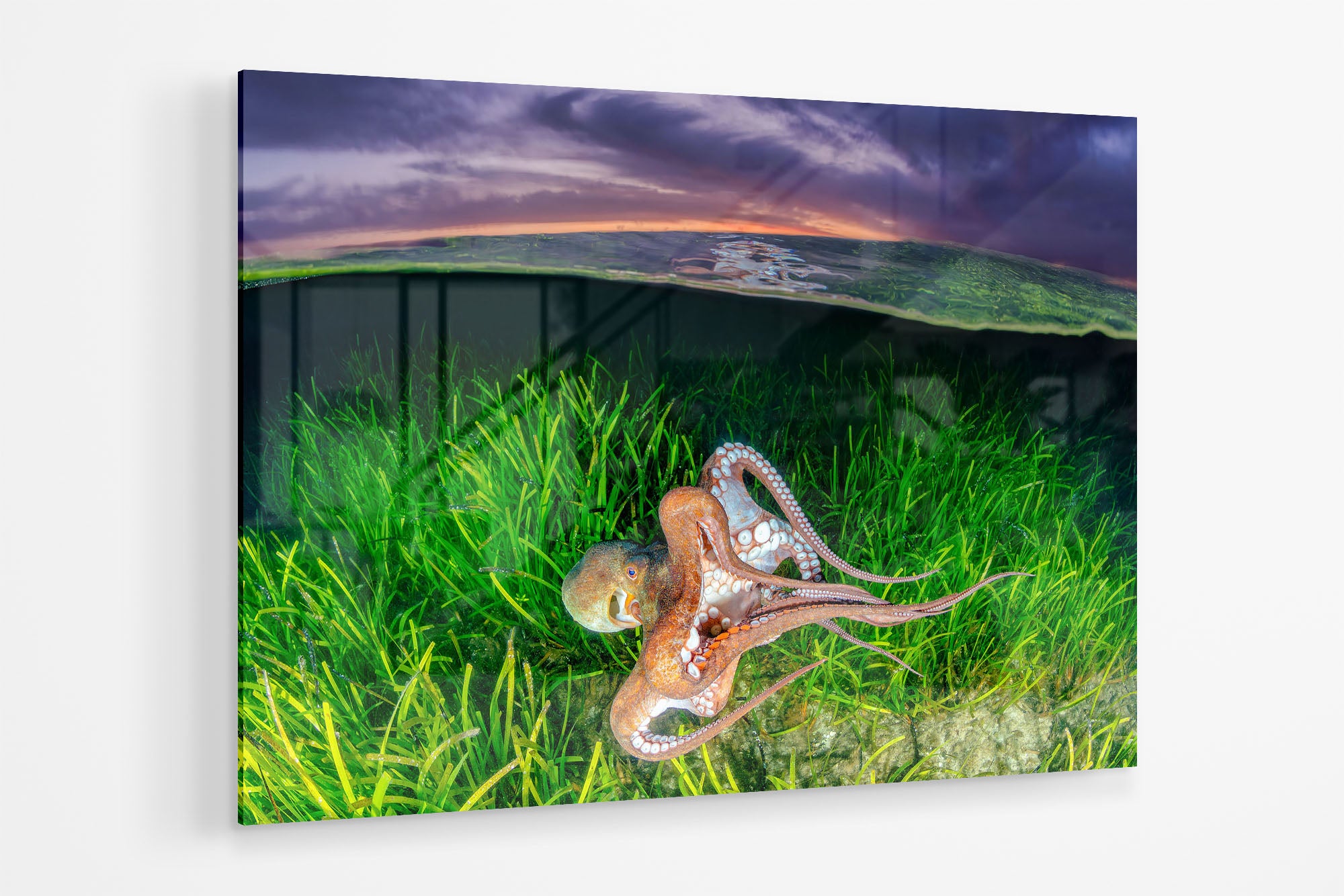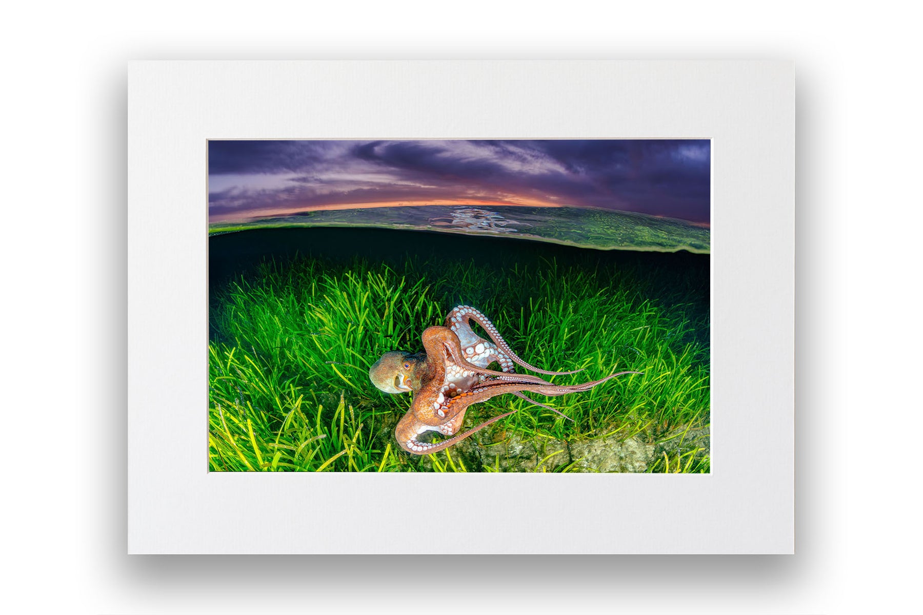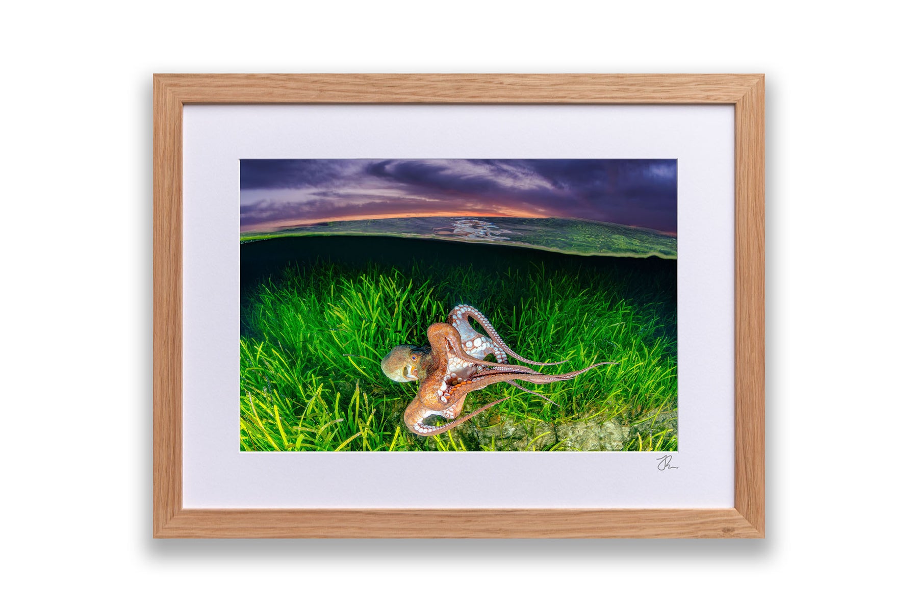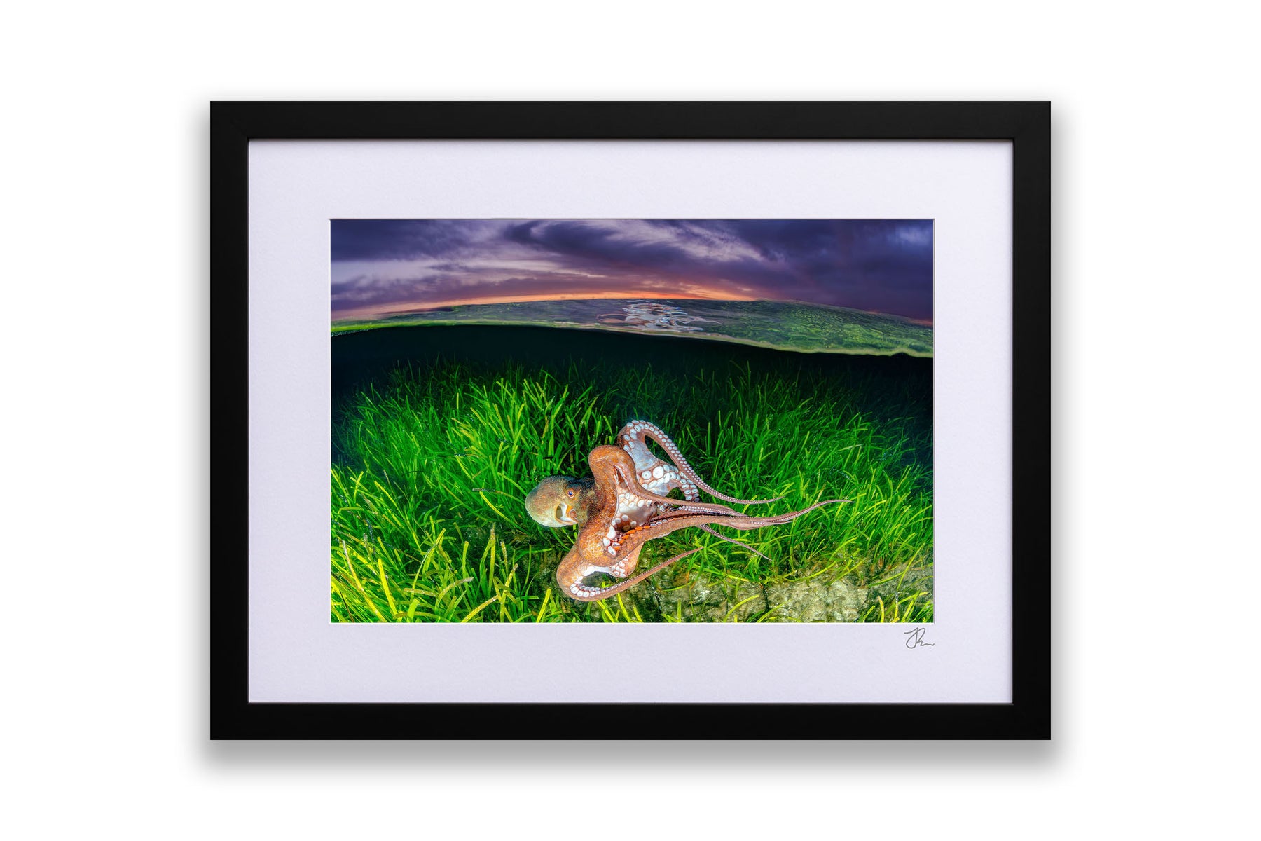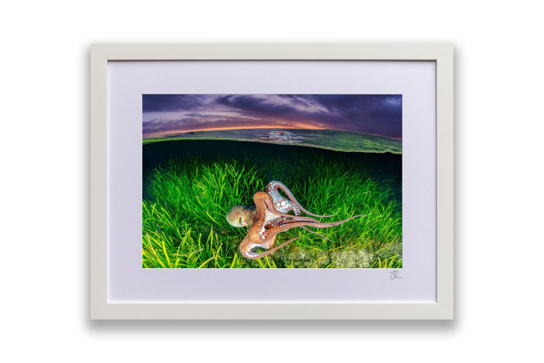 Over-Under Photo Print – Common Sydney Octopus in Seagrass Beds, Jervis Bay