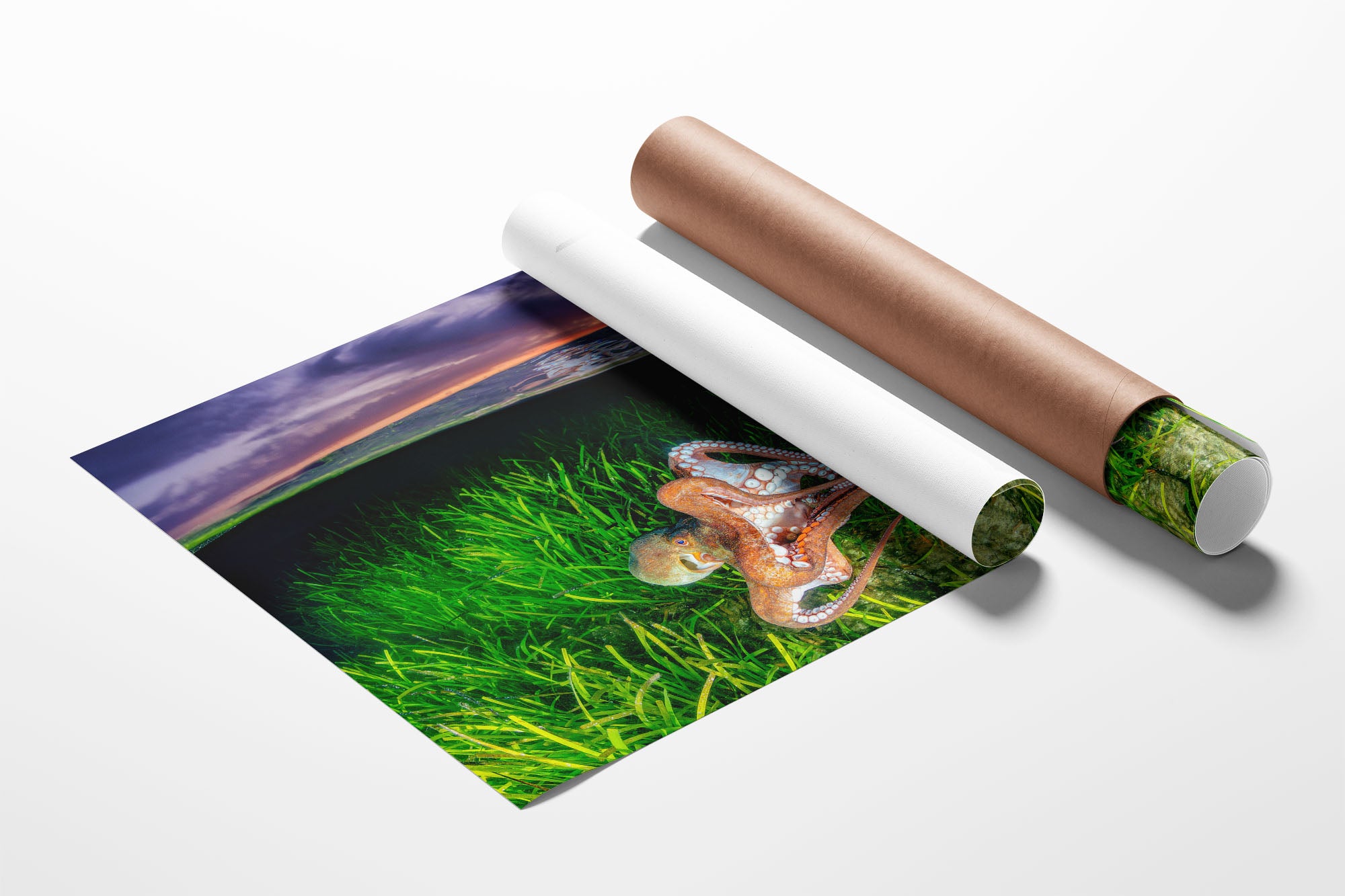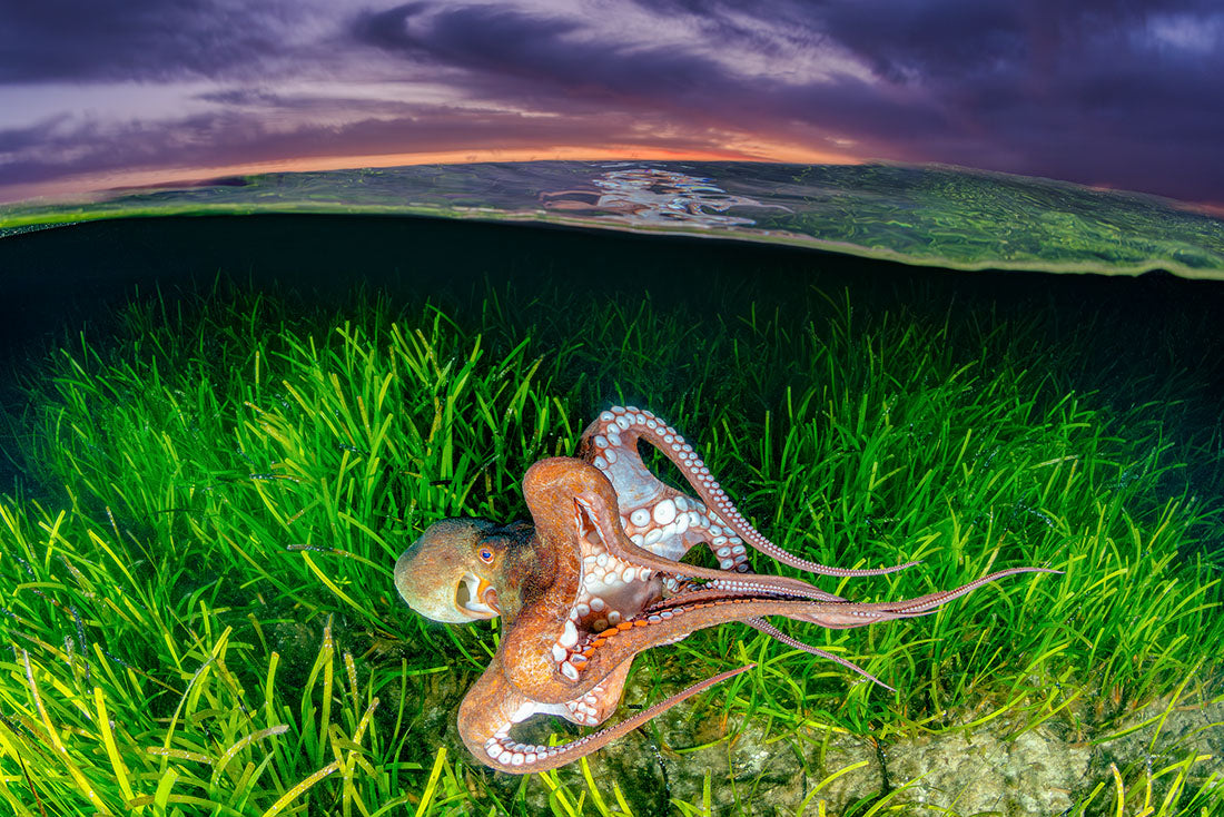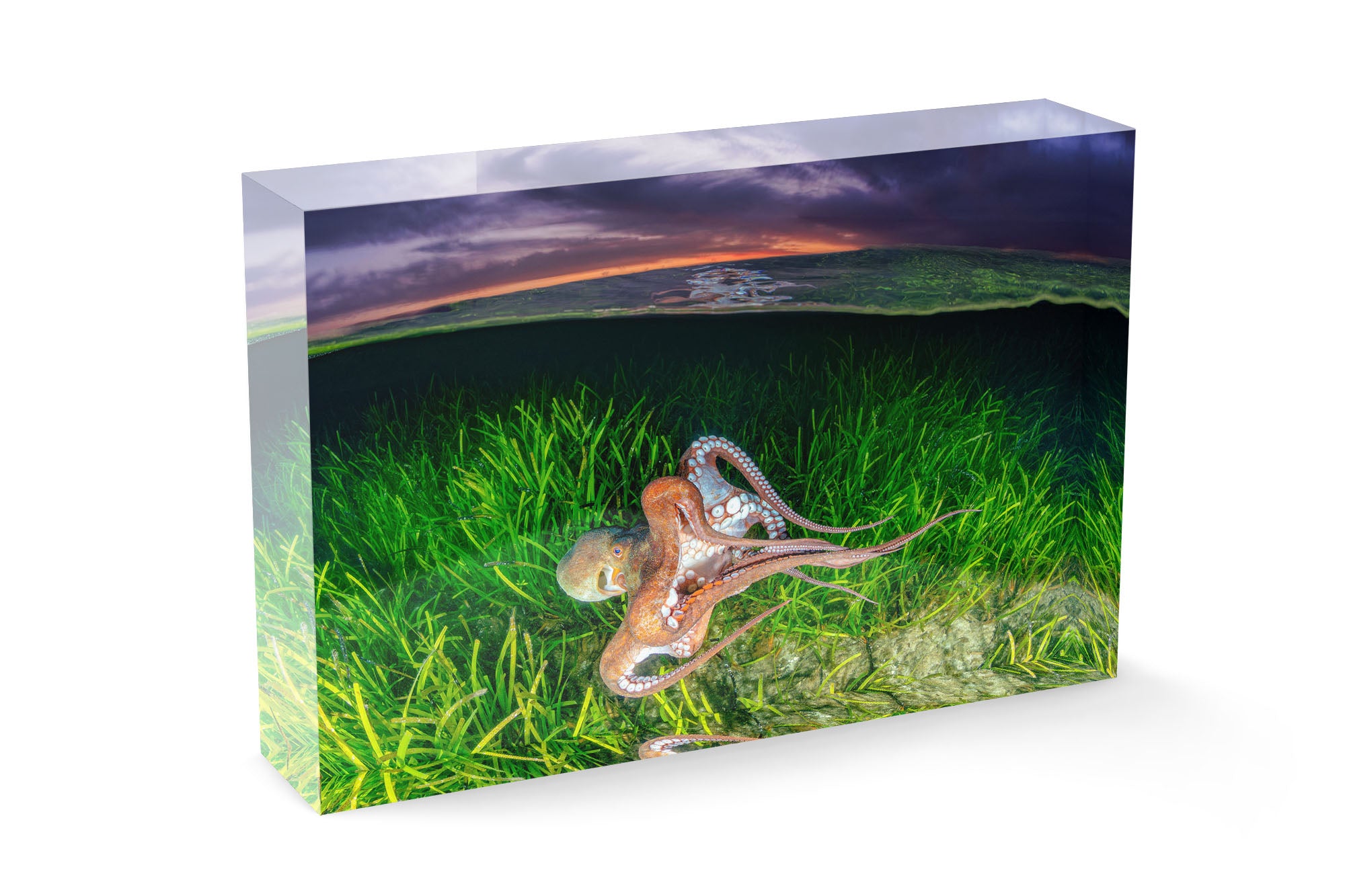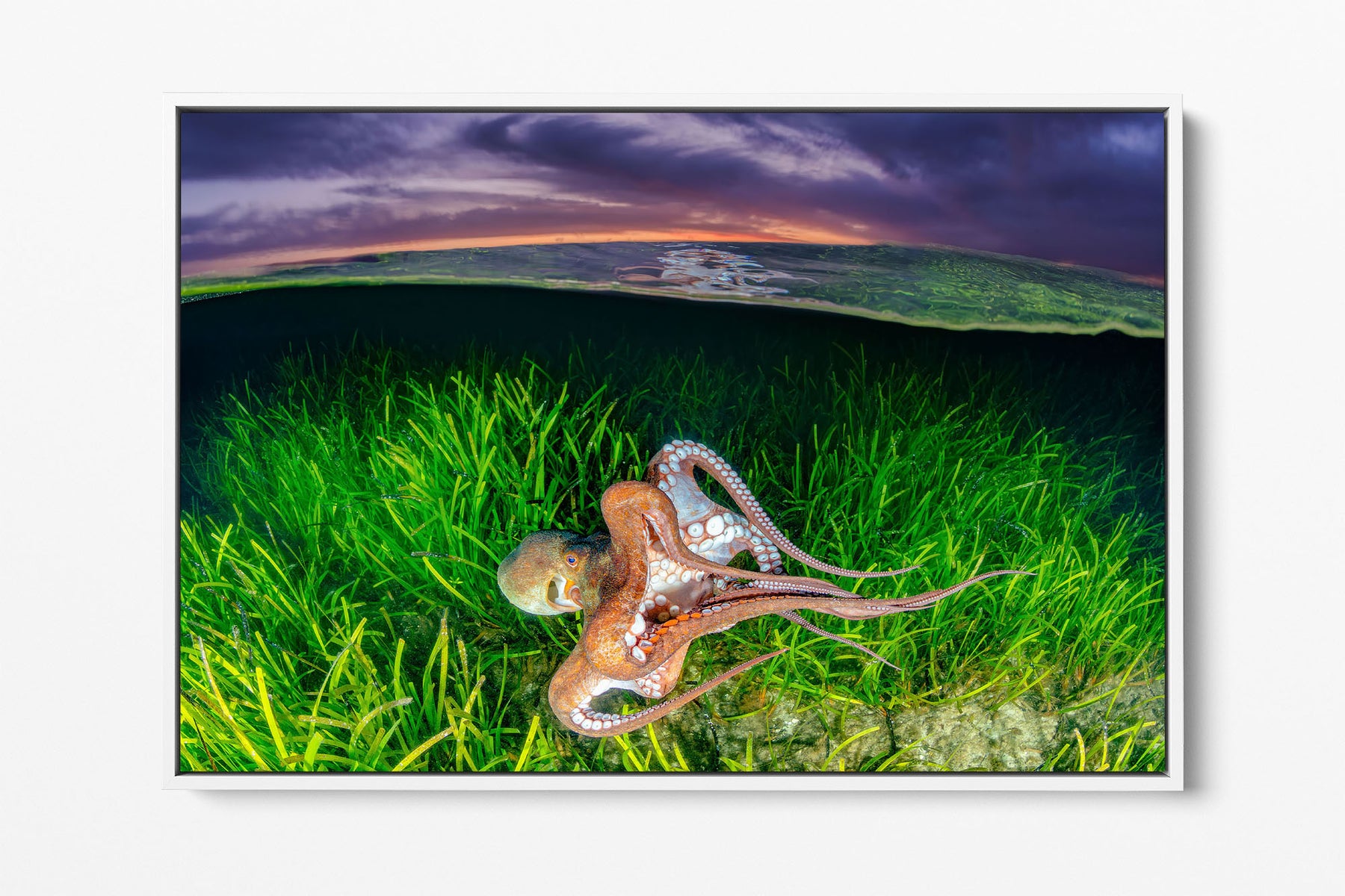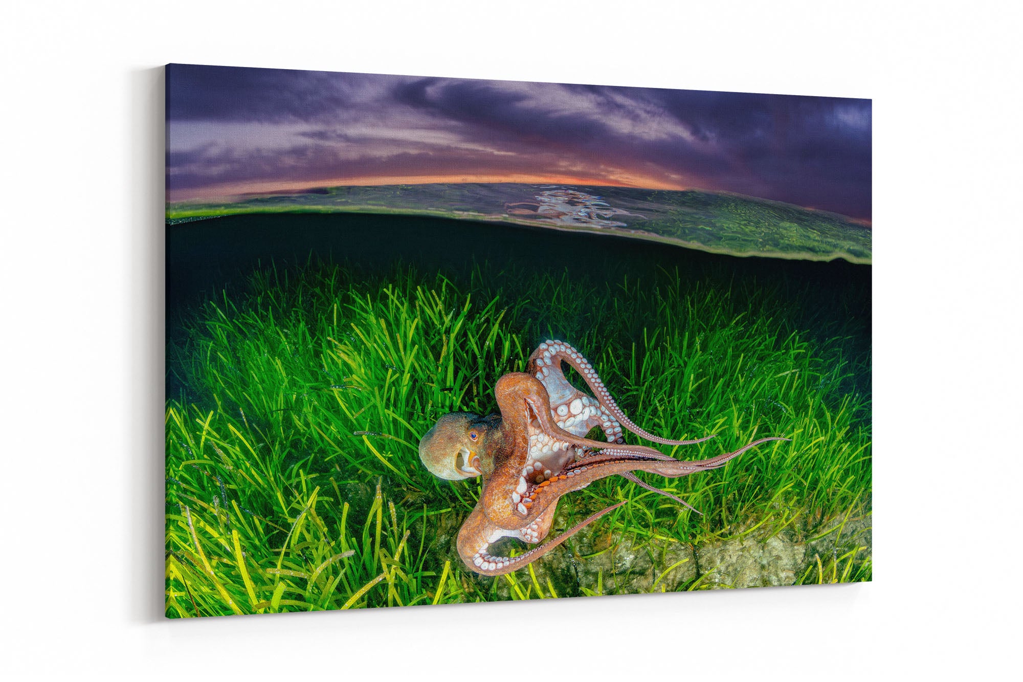 Over-Under Photo Print – Common Sydney Octopus in Seagrass Beds, Jervis Bay