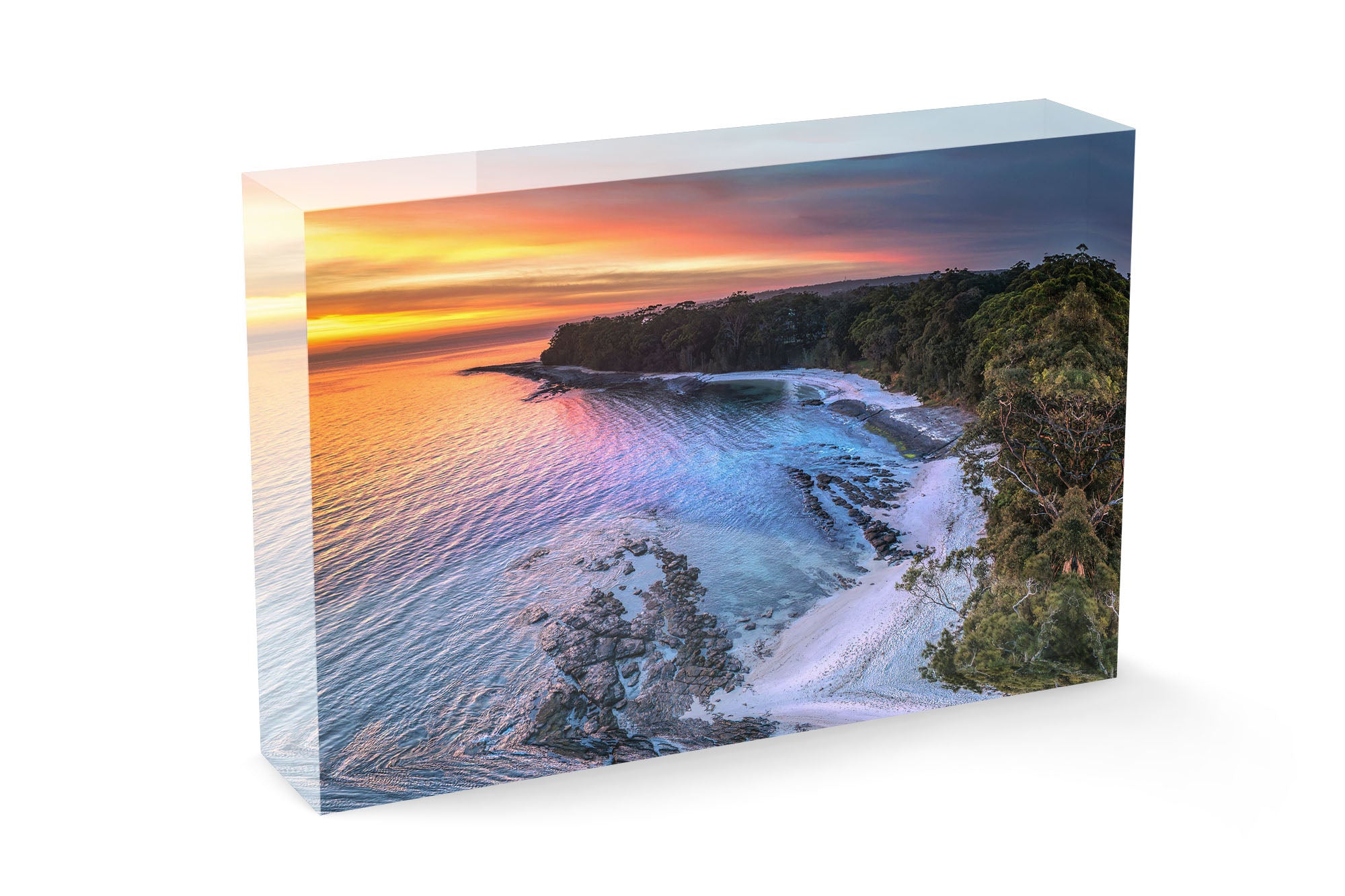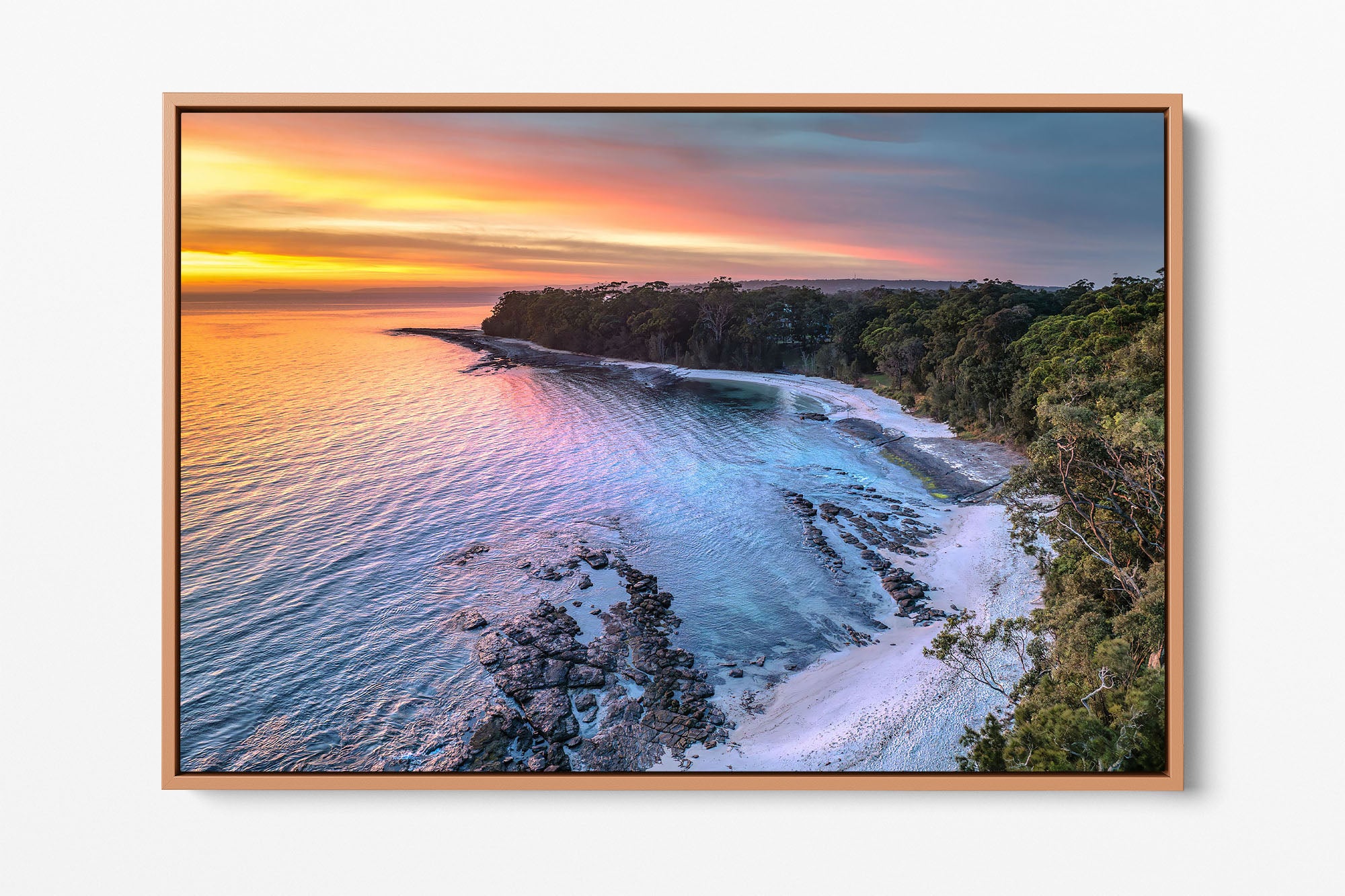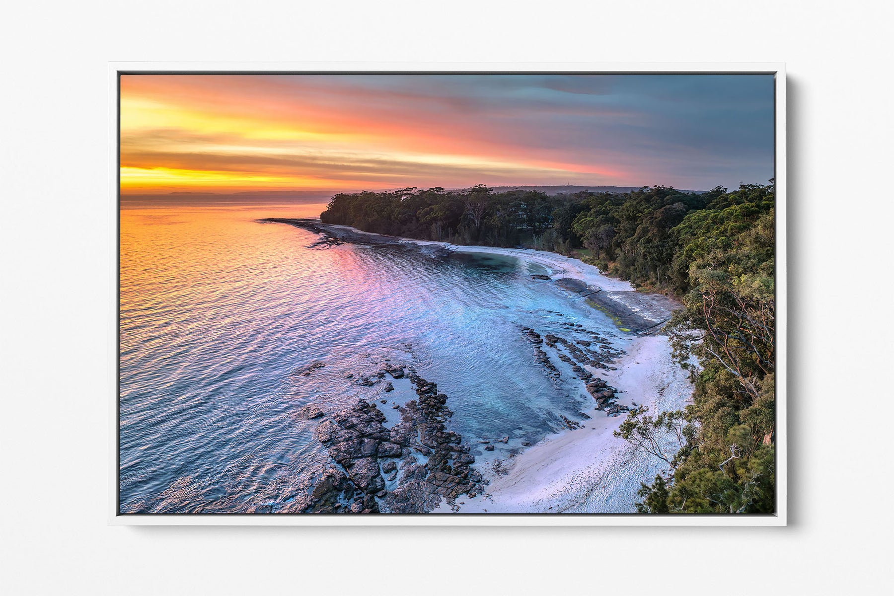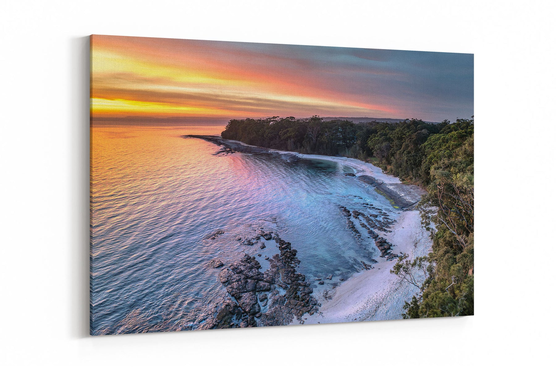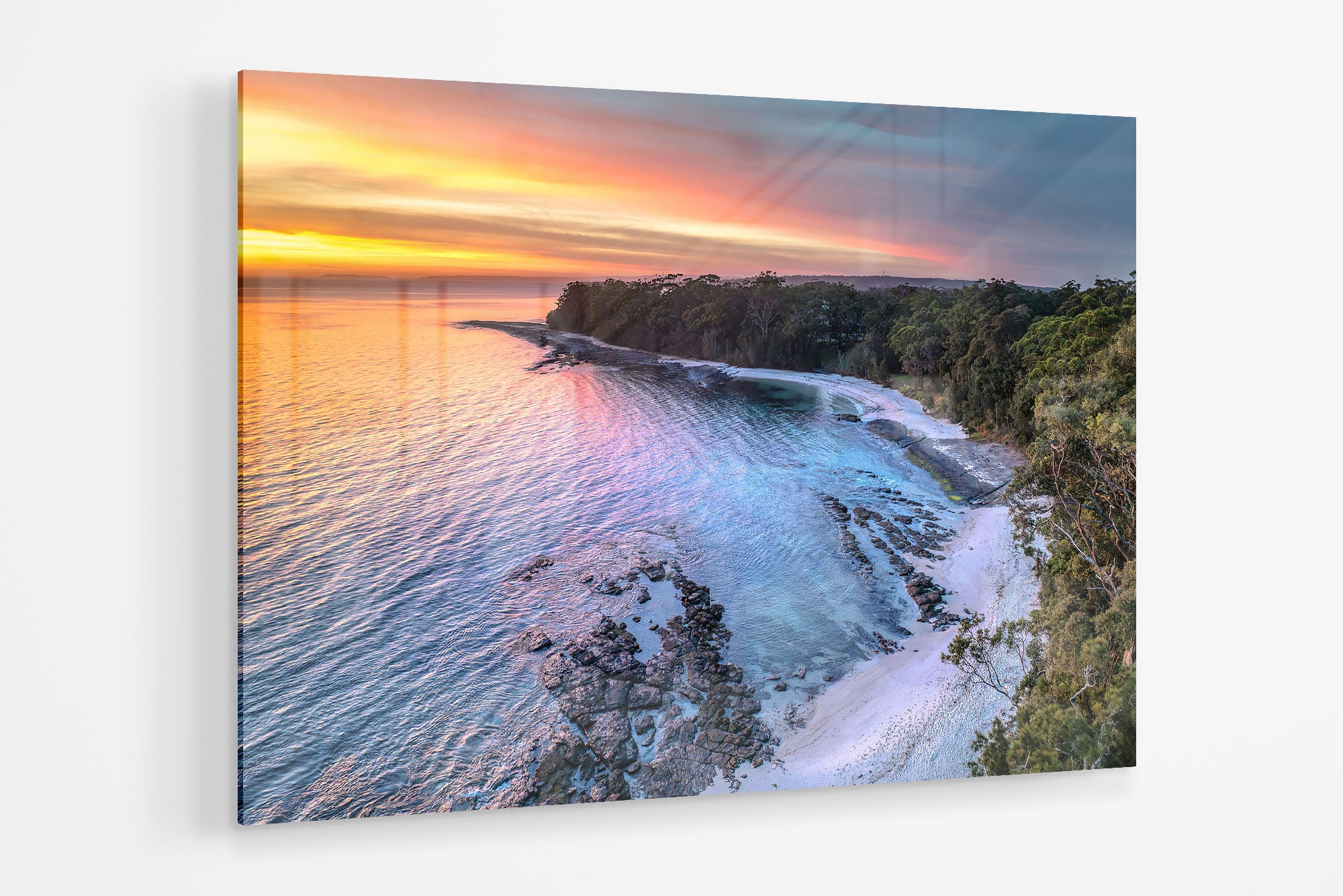 Elevate your space with this radiant aerial masterpiece—shop now and bring the magic of Jervis Bay's stunning sunrises into your home today!