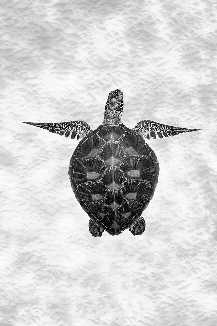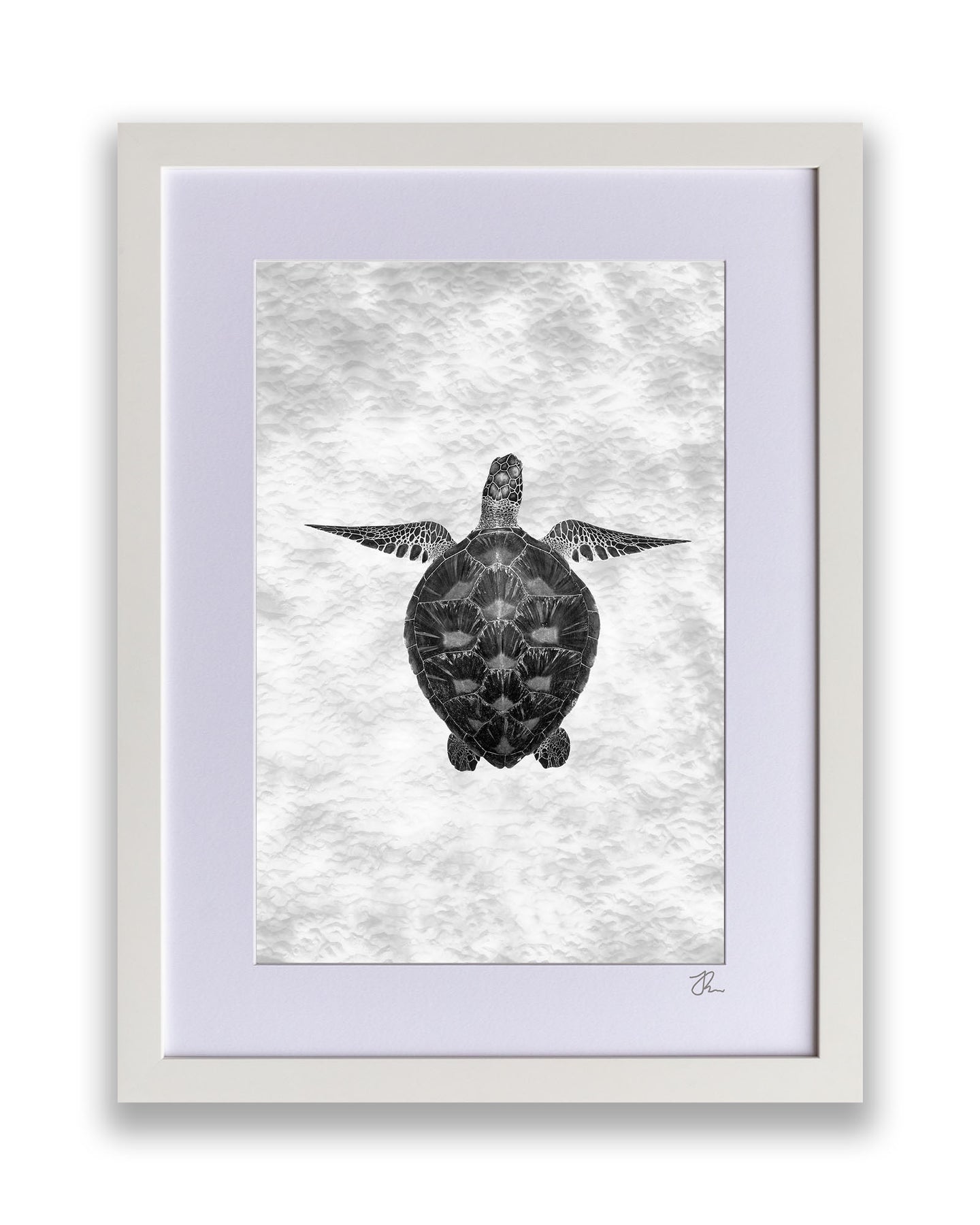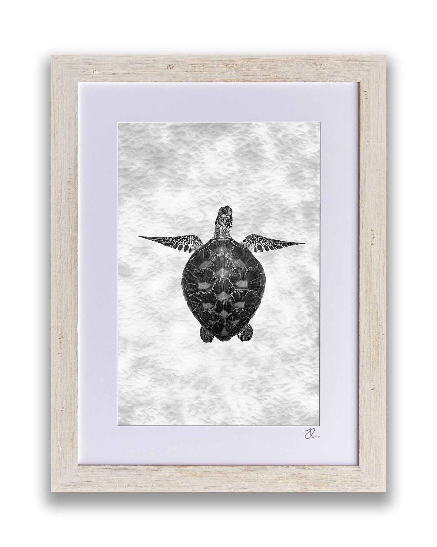 Enduring Grace – Monochrome Green Sea Turtle Fine Art Print, Great Barrier Reef
