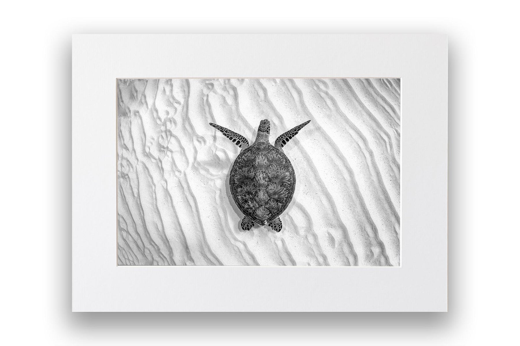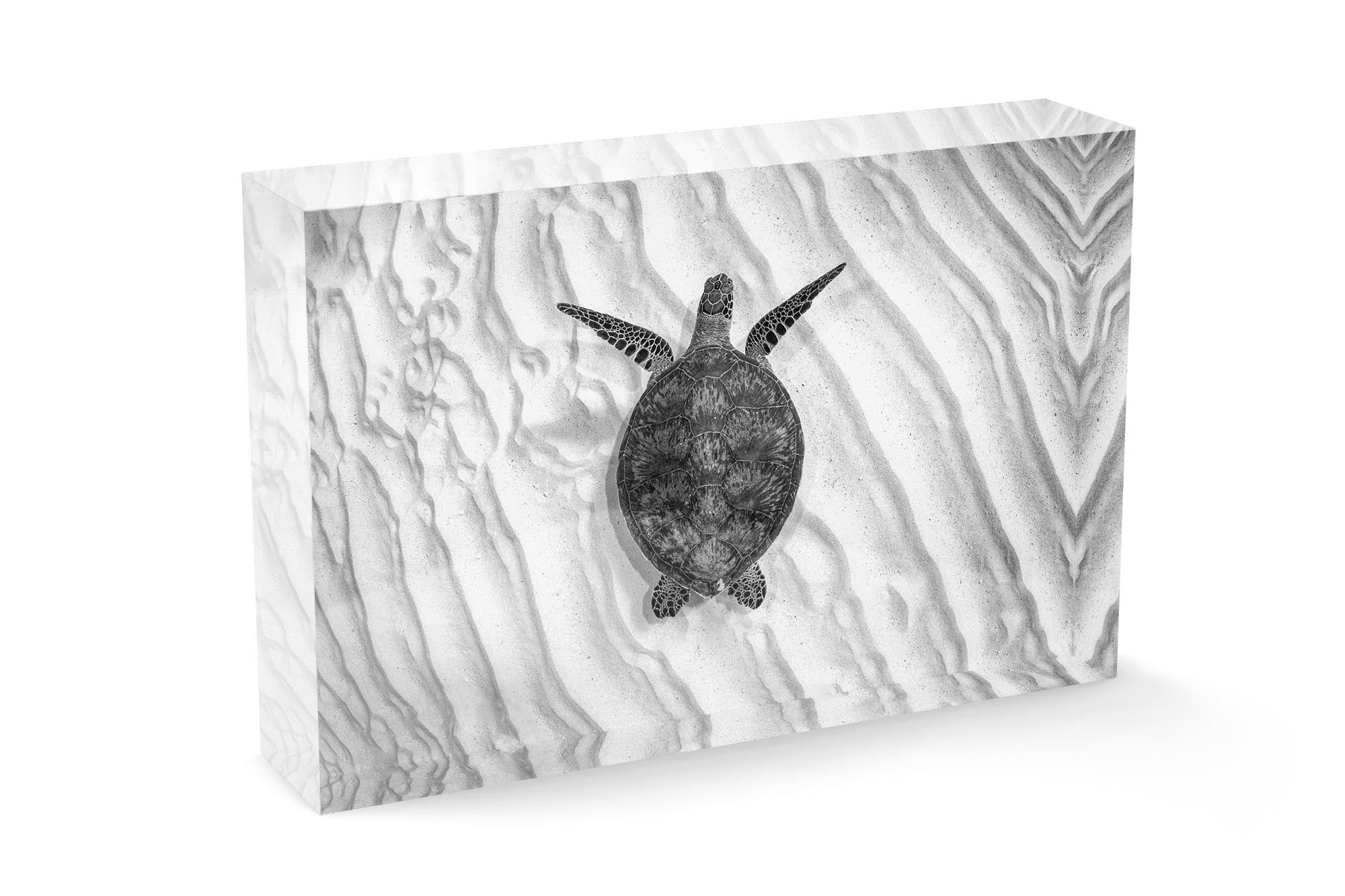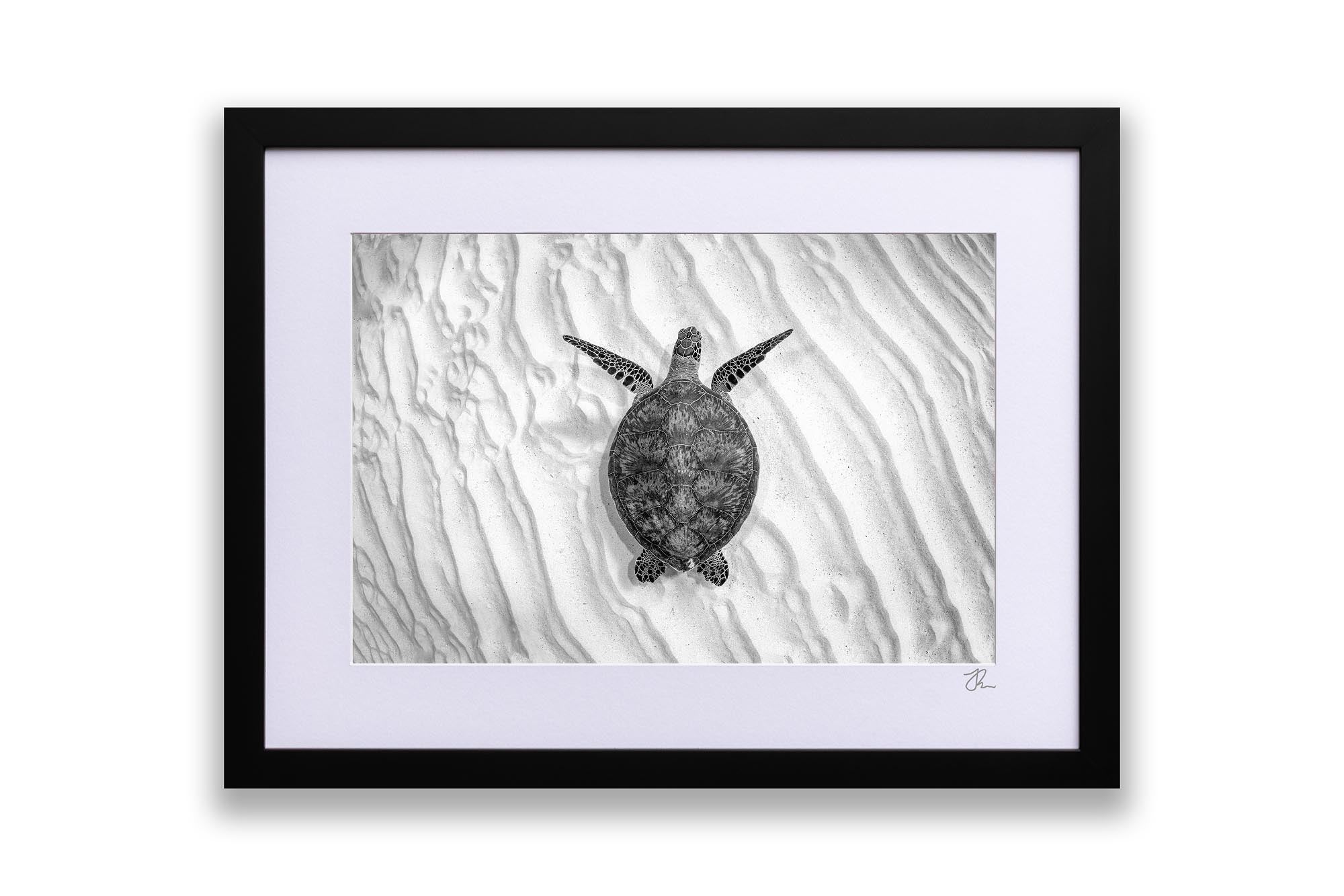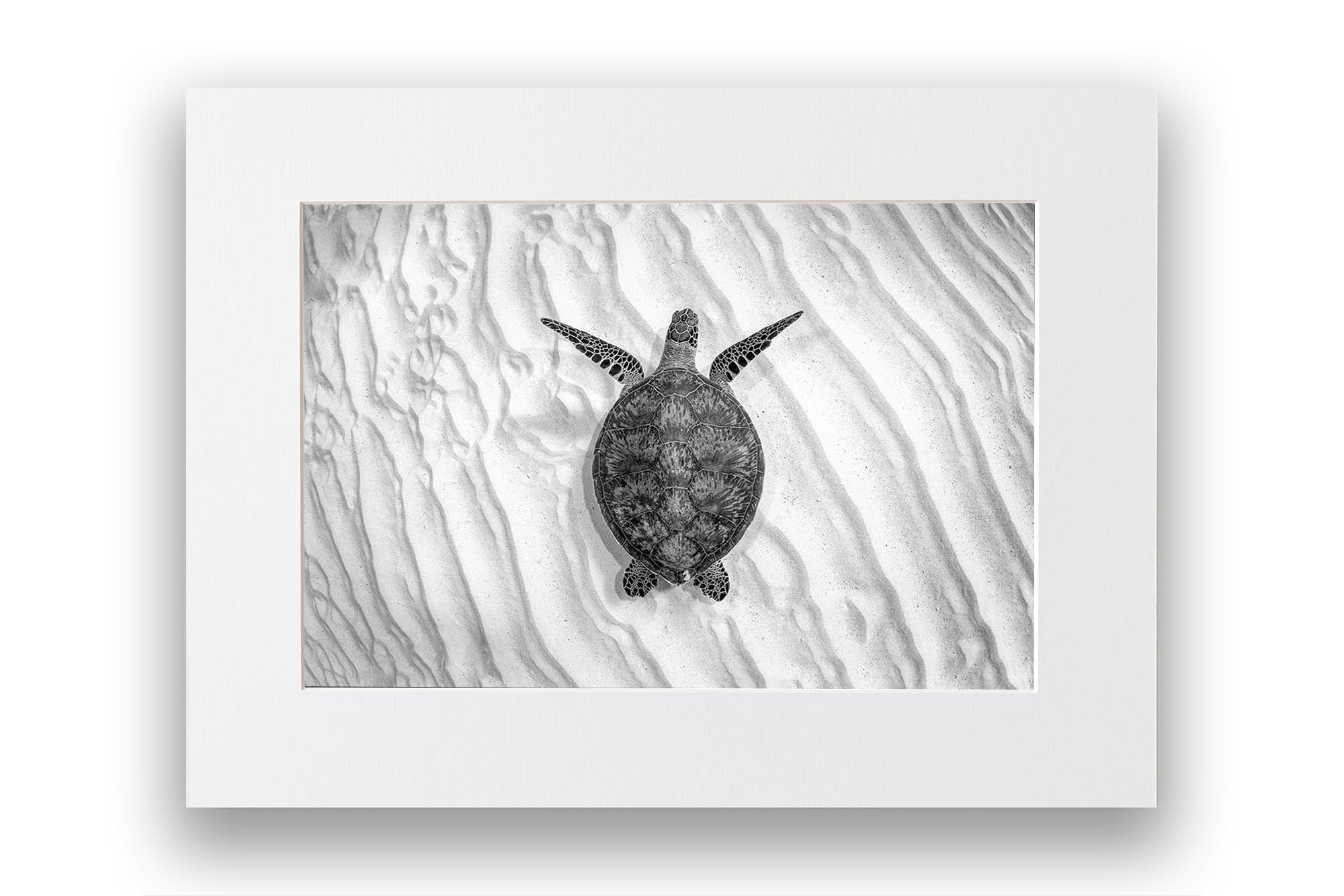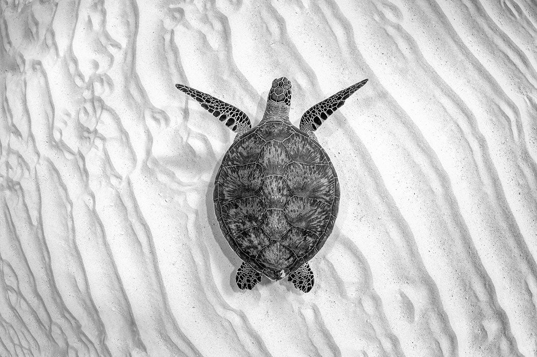Endangered Green Sea Turtle (Chelonia mydas) Monochrome Print – Lady Elliot Island, Southern Great Barrier Reef, Queensland