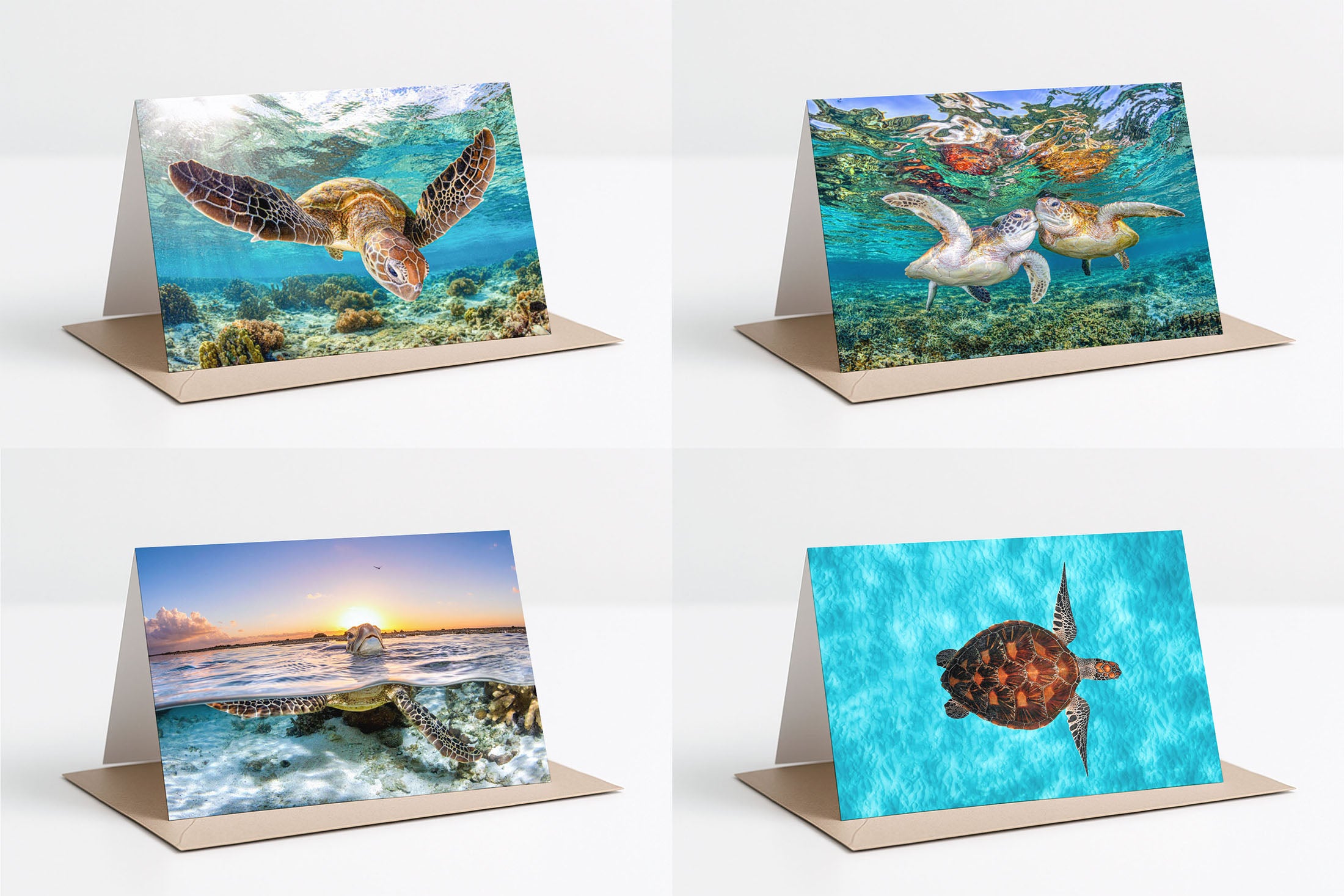 Green Sea Turtle Greeting Card 4x Pack