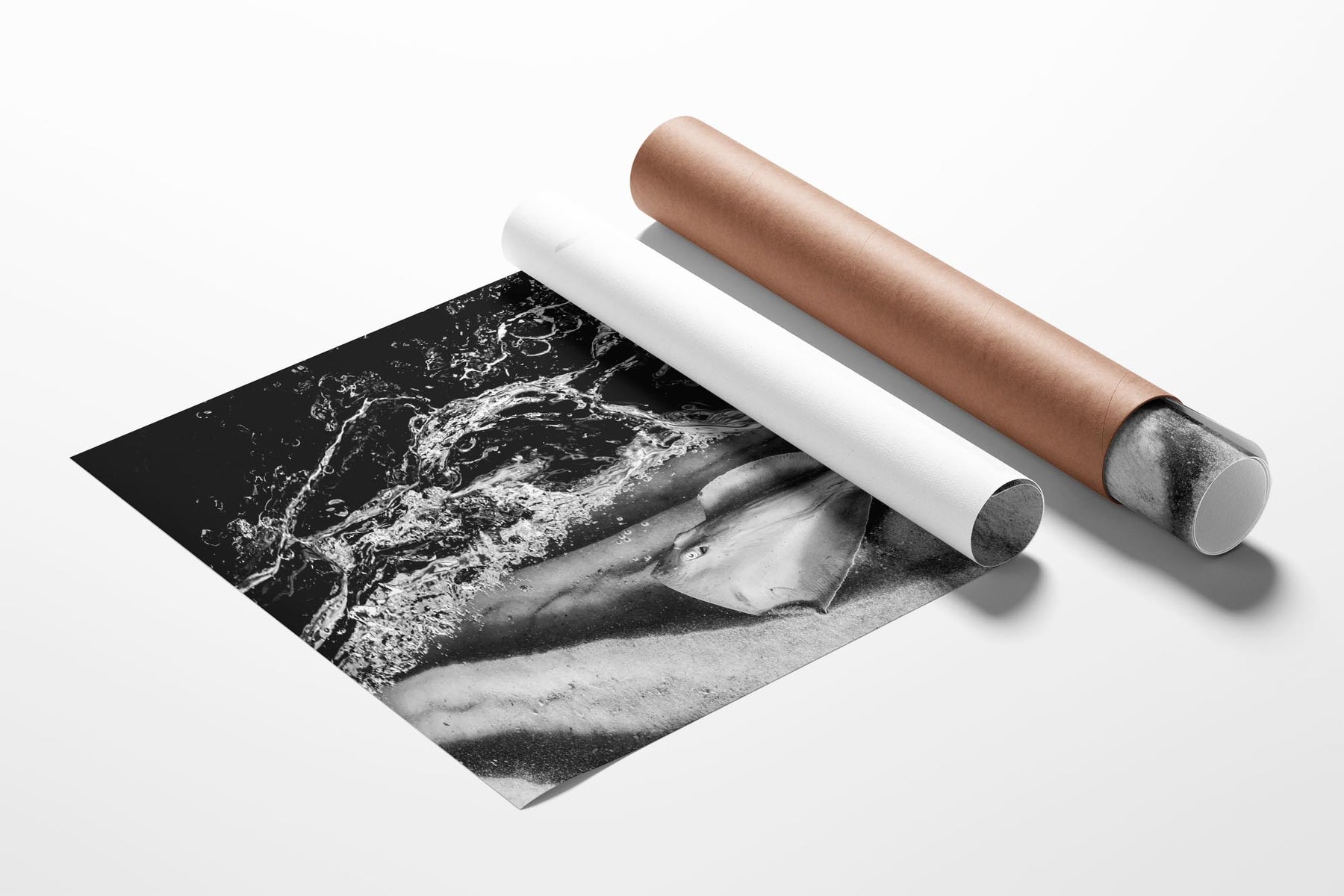 This striking black and white fine art print captures a Common Stingaree gliding mysteriously over the sand flats of Jervis Bay after dark, a finalist in the prestigious 2019 Australian Geographic Nature Photographer of the Year Competition. The monochrome palette amplifies the scene’s ethereal beauty, transforming the stingaree’s graceful movement into a timeless, emotive masterpiece.
