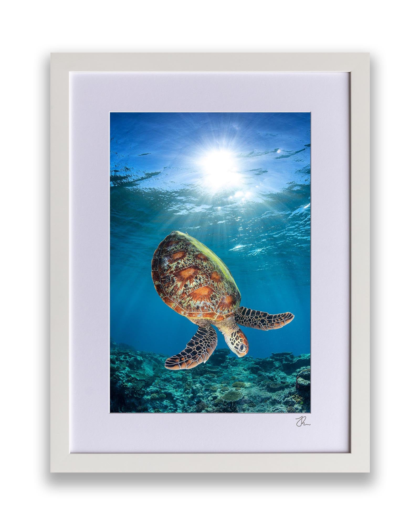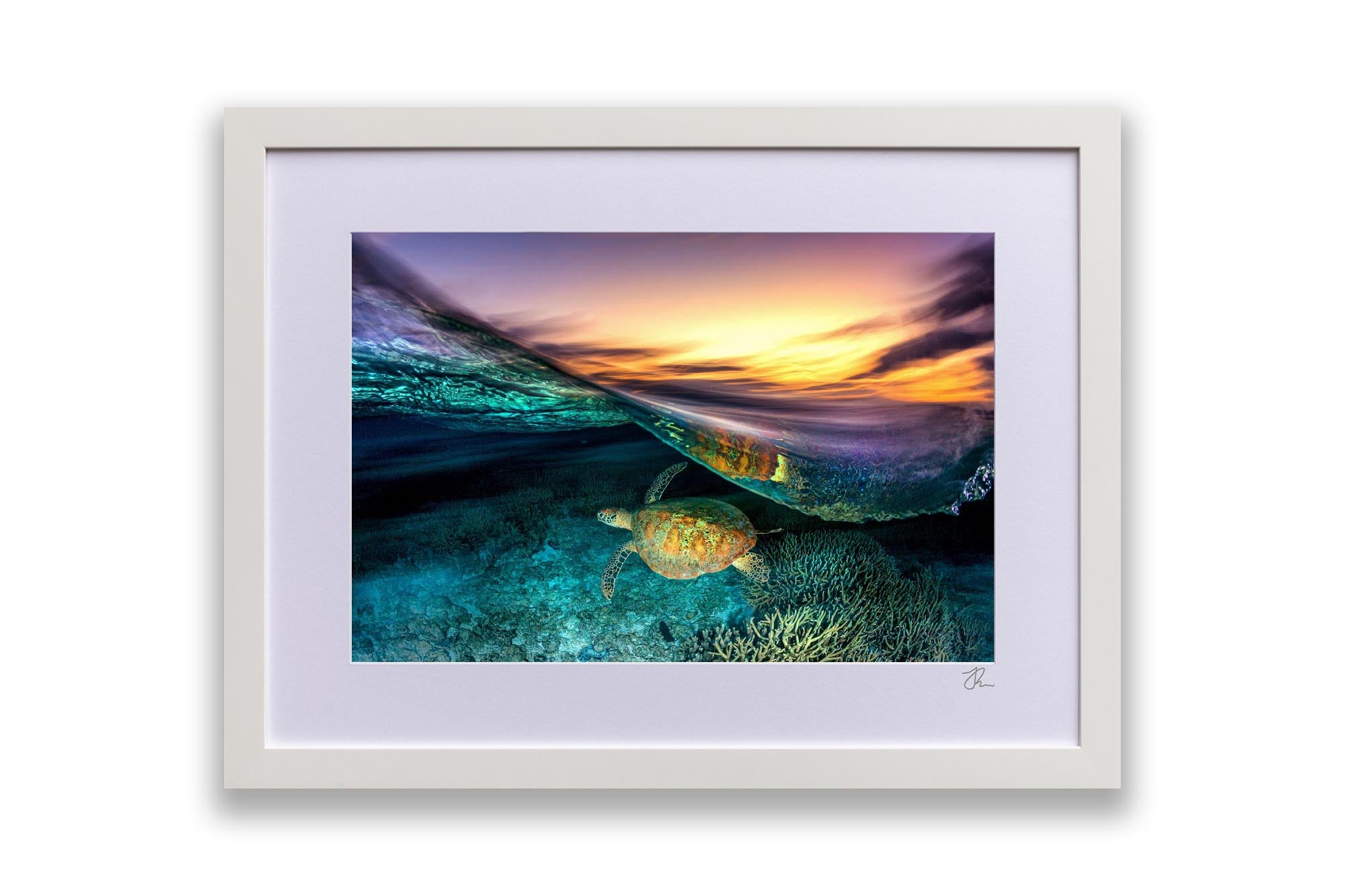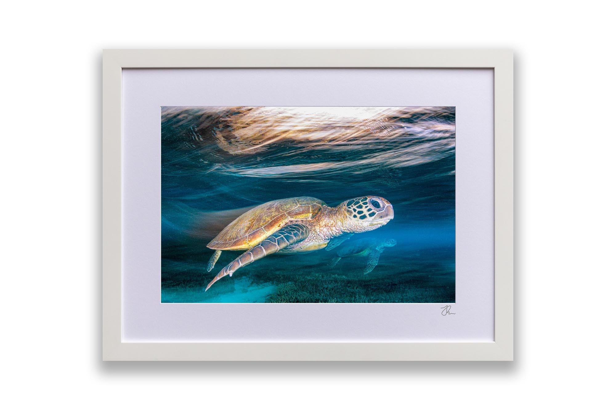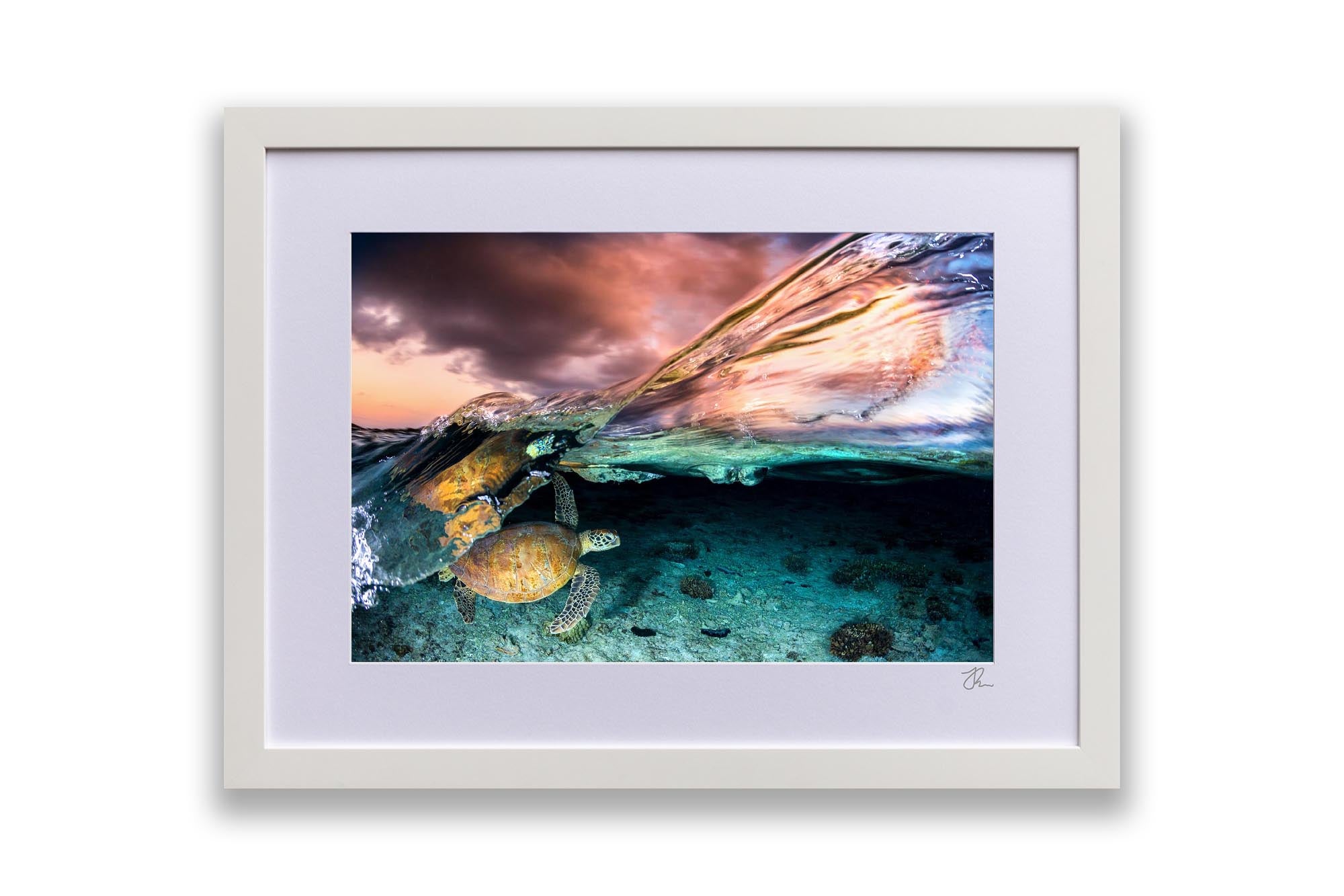 As Jordan’s favourite marine creature, sea turtles are the focus of much of his work, with each photograph showcasing his deep respect and admiration for these majestic creatures and the ocean's rich biodiversity. Whether you're an ocean lover, marine life enthusiast, or seeking unique coastal decor, these sea turtle prints bring the serene beauty of the ocean to your walls.