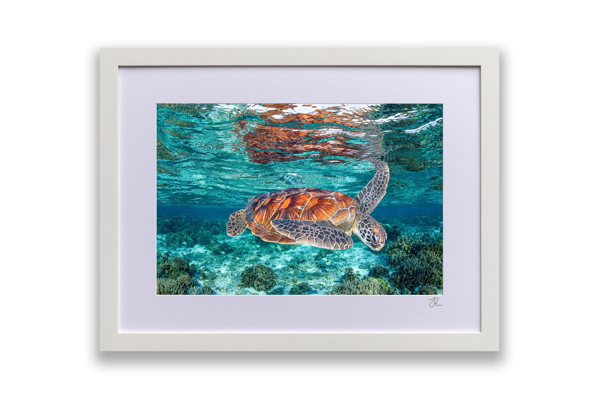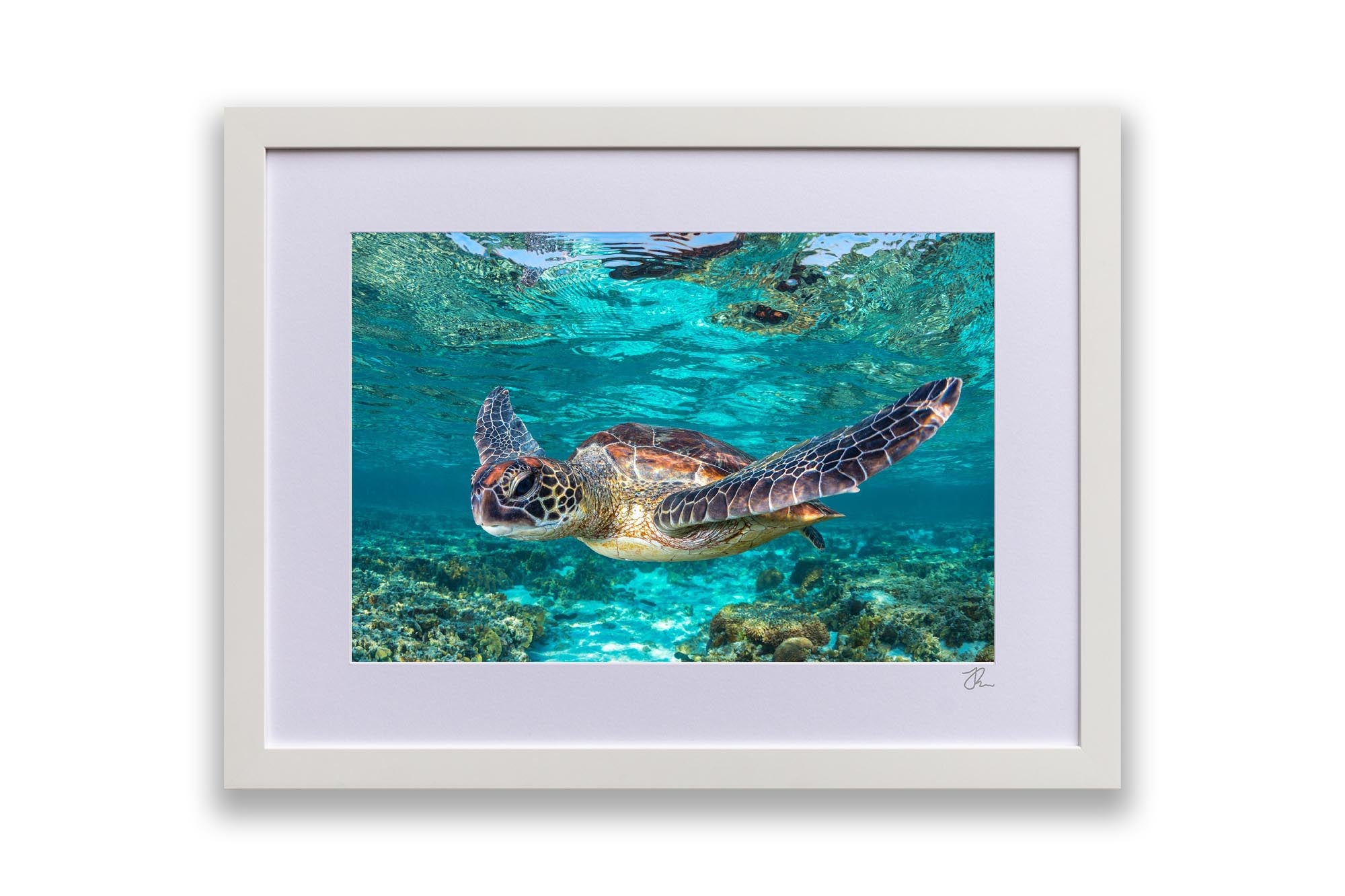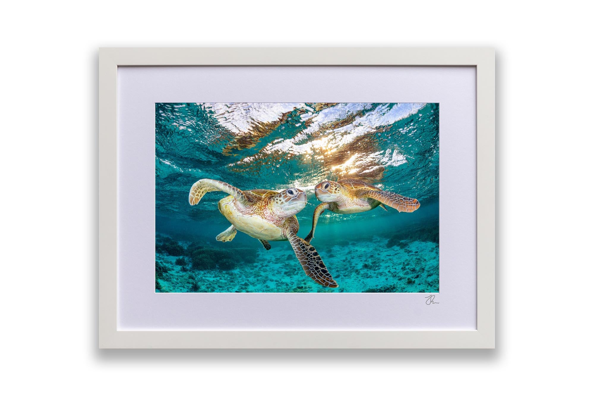 As Jordan’s favourite marine creature, sea turtles are the focus of much of his work, with each photograph showcasing his deep respect and admiration for these majestic creatures and the ocean's rich biodiversity. Whether you're an ocean lover, marine life enthusiast, or seeking unique coastal decor, these sea turtle prints bring the serene beauty of the ocean to your walls.