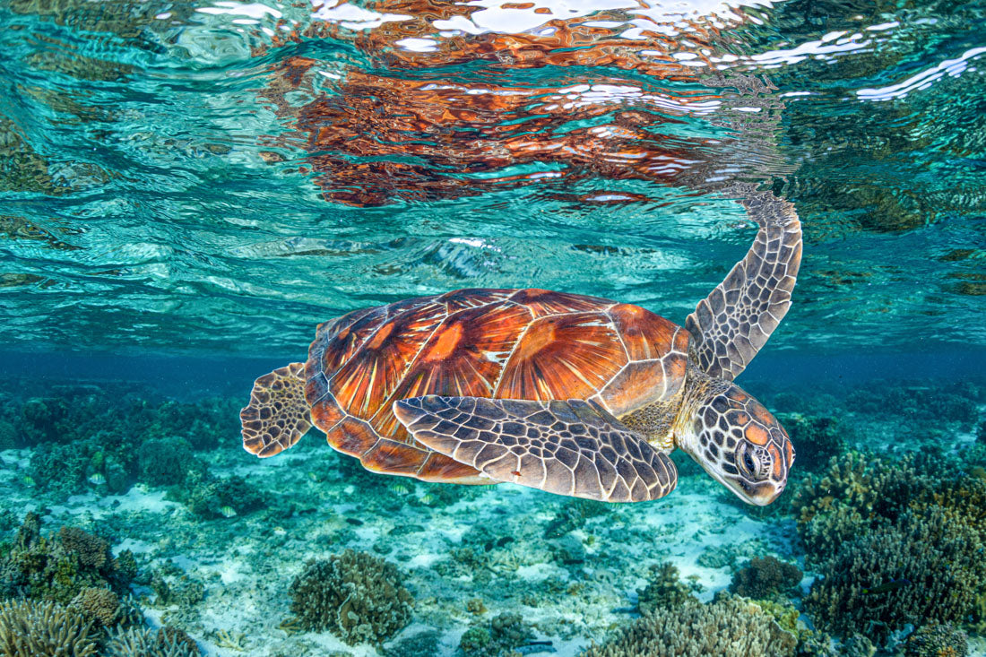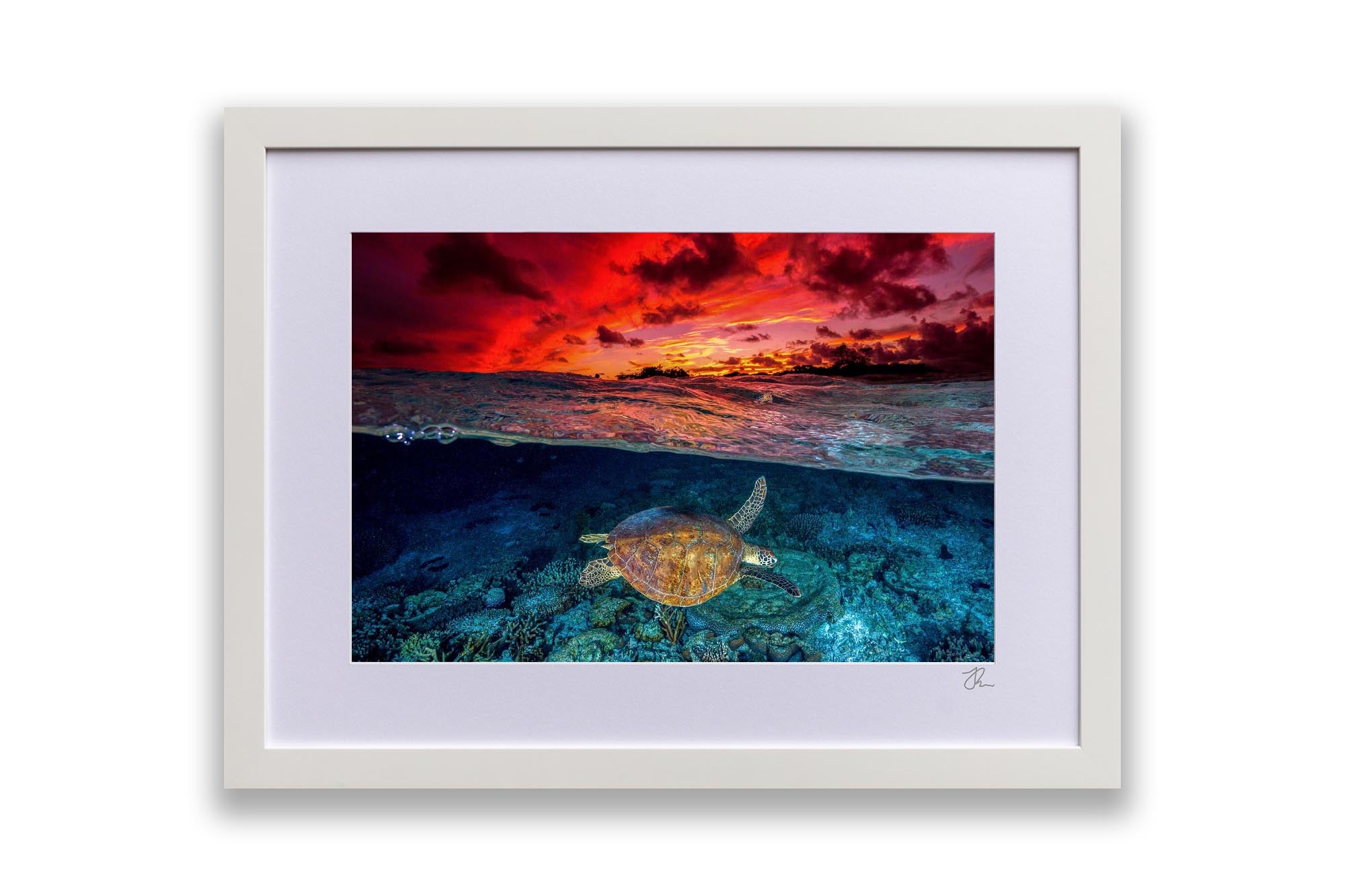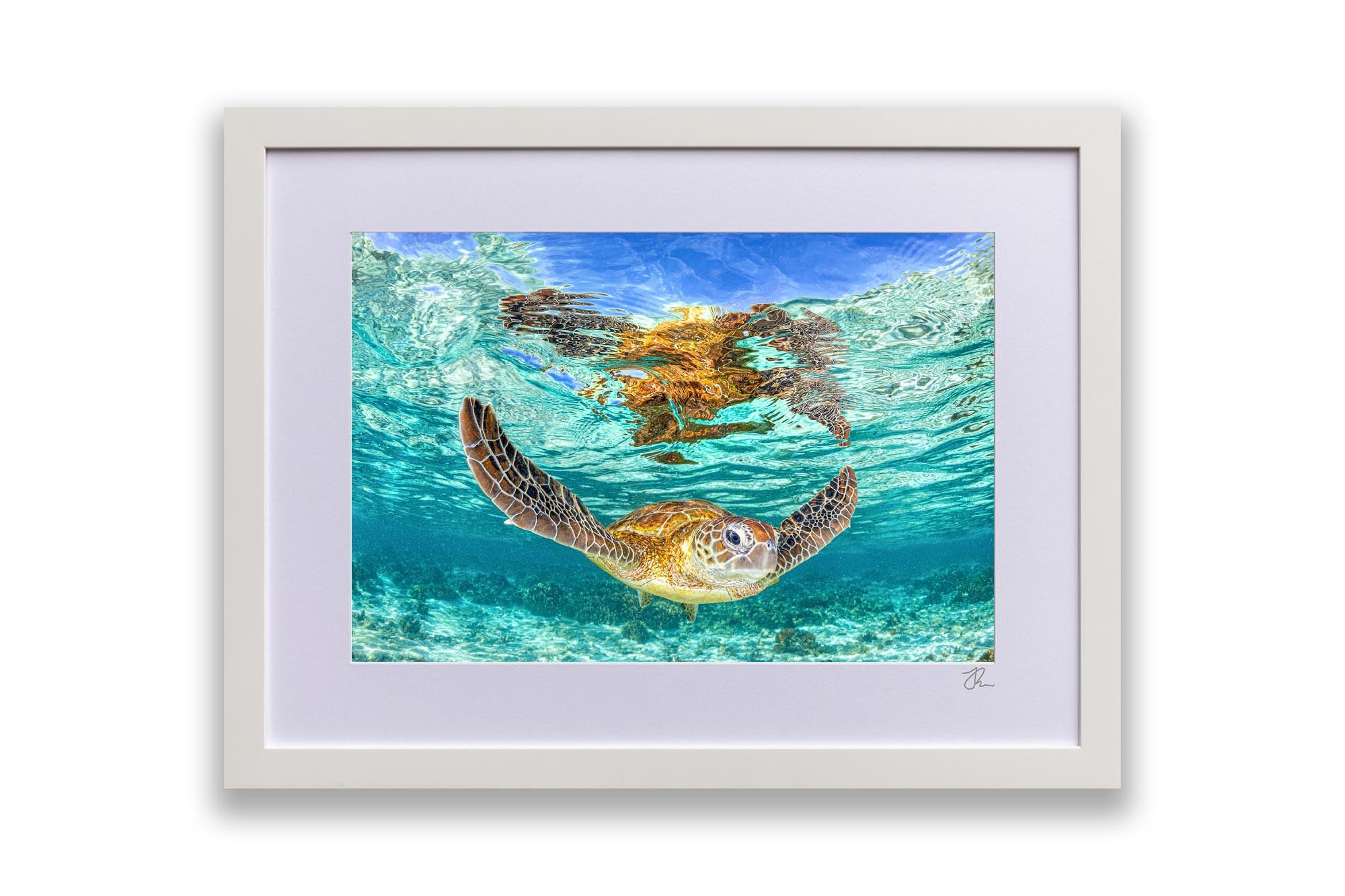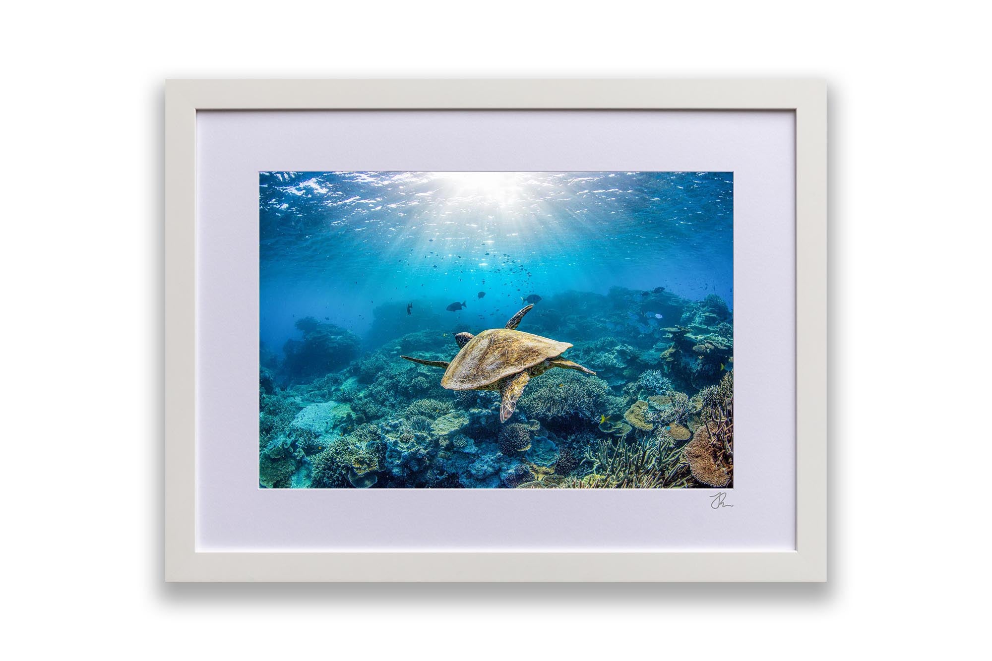 As Jordan’s favourite marine creature, sea turtles are the focus of much of his work, with each photograph showcasing his deep respect and admiration for these majestic creatures and the ocean's rich biodiversity. Whether you're an ocean lover, marine life enthusiast, or seeking unique coastal decor, these sea turtle prints bring the serene beauty of the ocean to your walls.