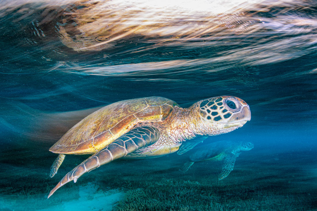 Discover a breathtaking collection of fine art sea turtle photography prints, expertly captured by renowned photographer Jordan Robins. These stunning images feature sea turtles in their natural underwater habitat, photographed at iconic locations including Lady Elliot Island and Heron Island on the Great Barrier Reef and Ningaloo Reef in Western Australia.