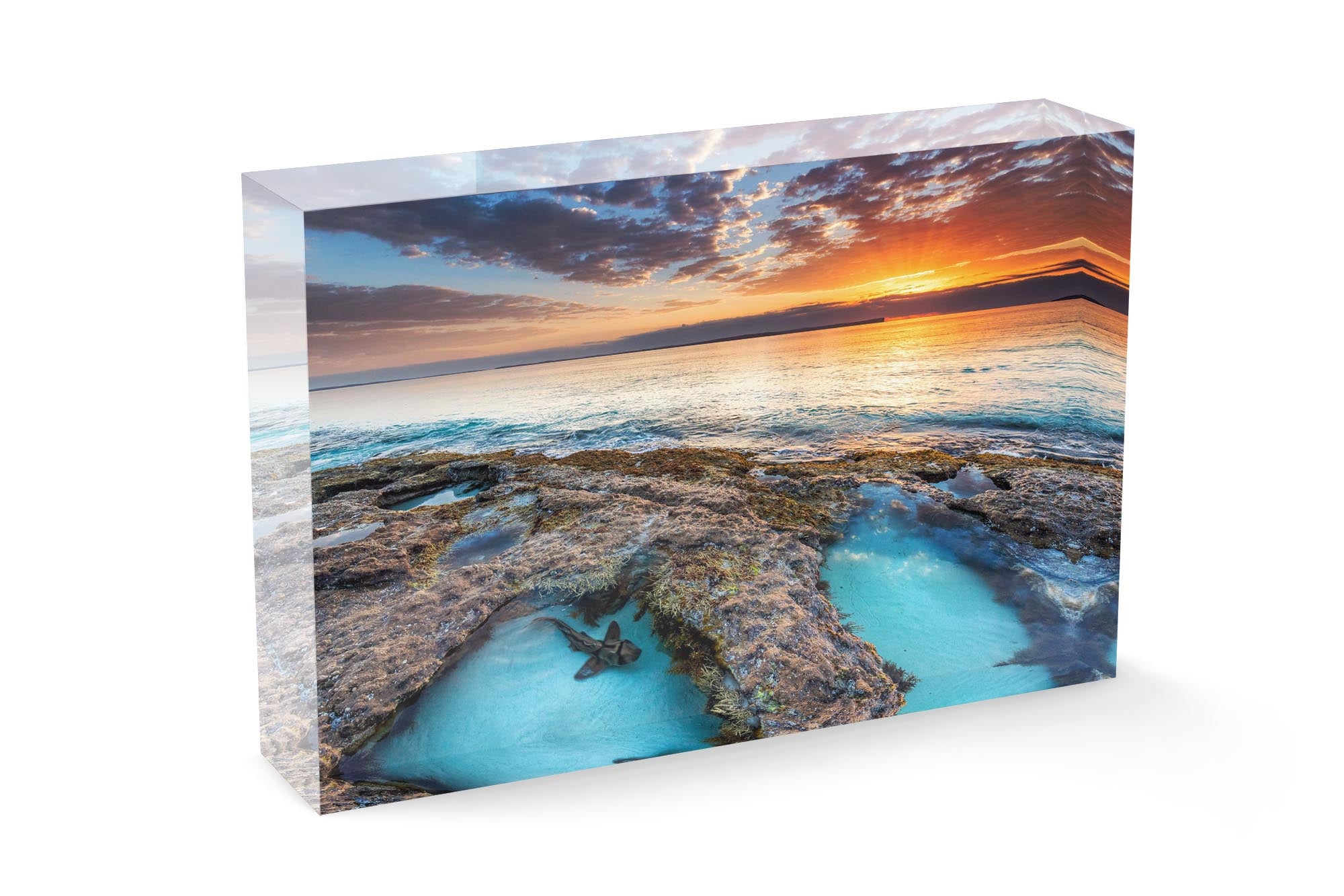 Elevate your decor with Jordans' acrylic blocks, featuring stunning ocean art printed on fine art metallic pearl paper. These free-standing acrylic blocks are perfect for display on desks or shelves, offering a striking 3D effect thanks to their thick 30mm acrylic and diamond-polished edges. Hand-finished for fine detail, the blocks enhance the vibrancy and depth of each photo.