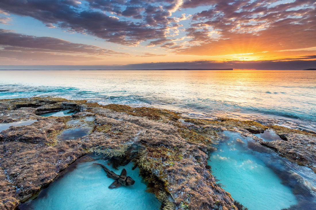 Fine art photo print of a Port Jackson Shark in an intertidal rockpool at Chinamans Beach, located next to Hyams Beach in Jervis Bay on the NSW South Coast.