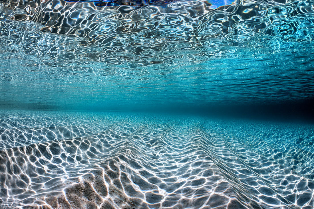 Photo print of rays of sunlight dancing upon the sea floor in the crystal clear water at Hyams Beach, Jervis Bay.