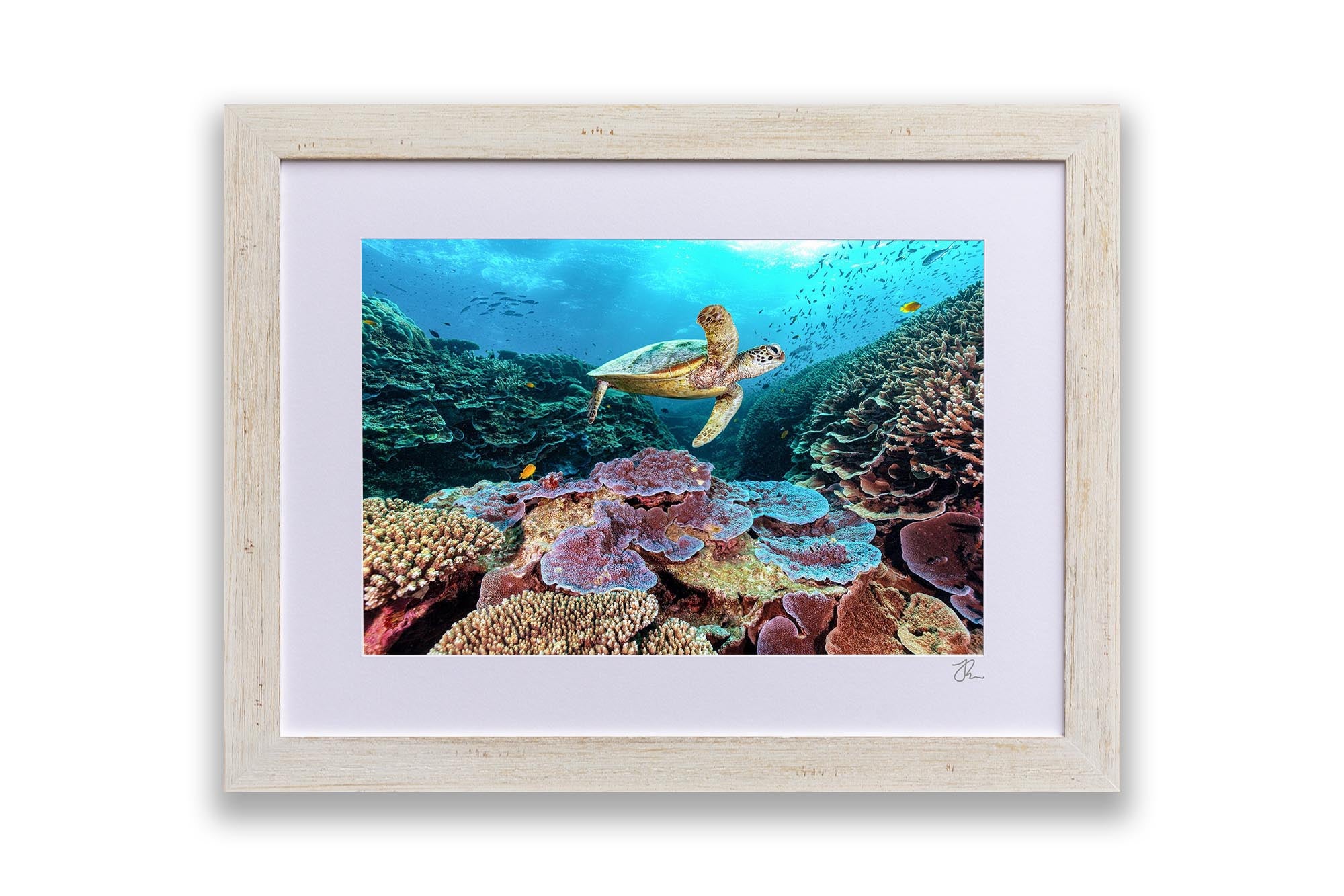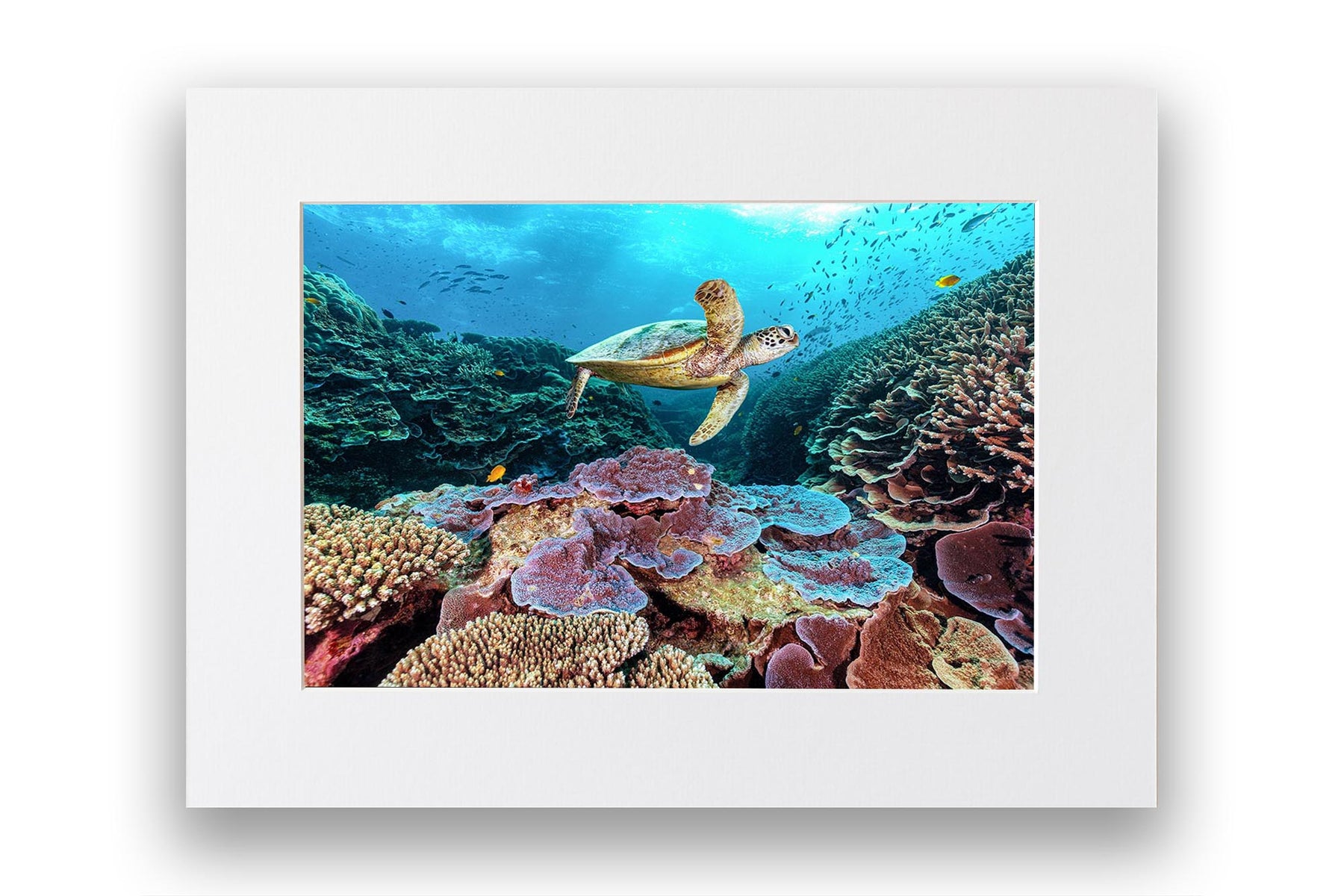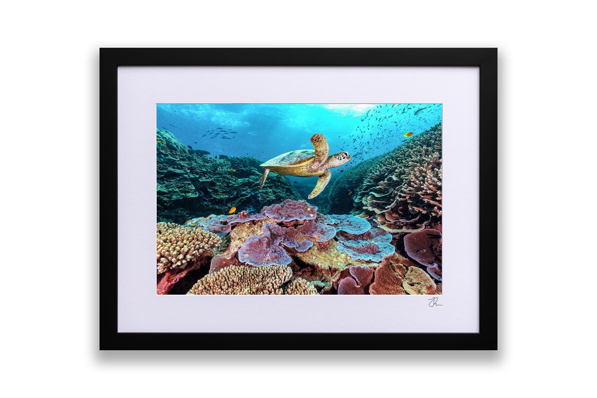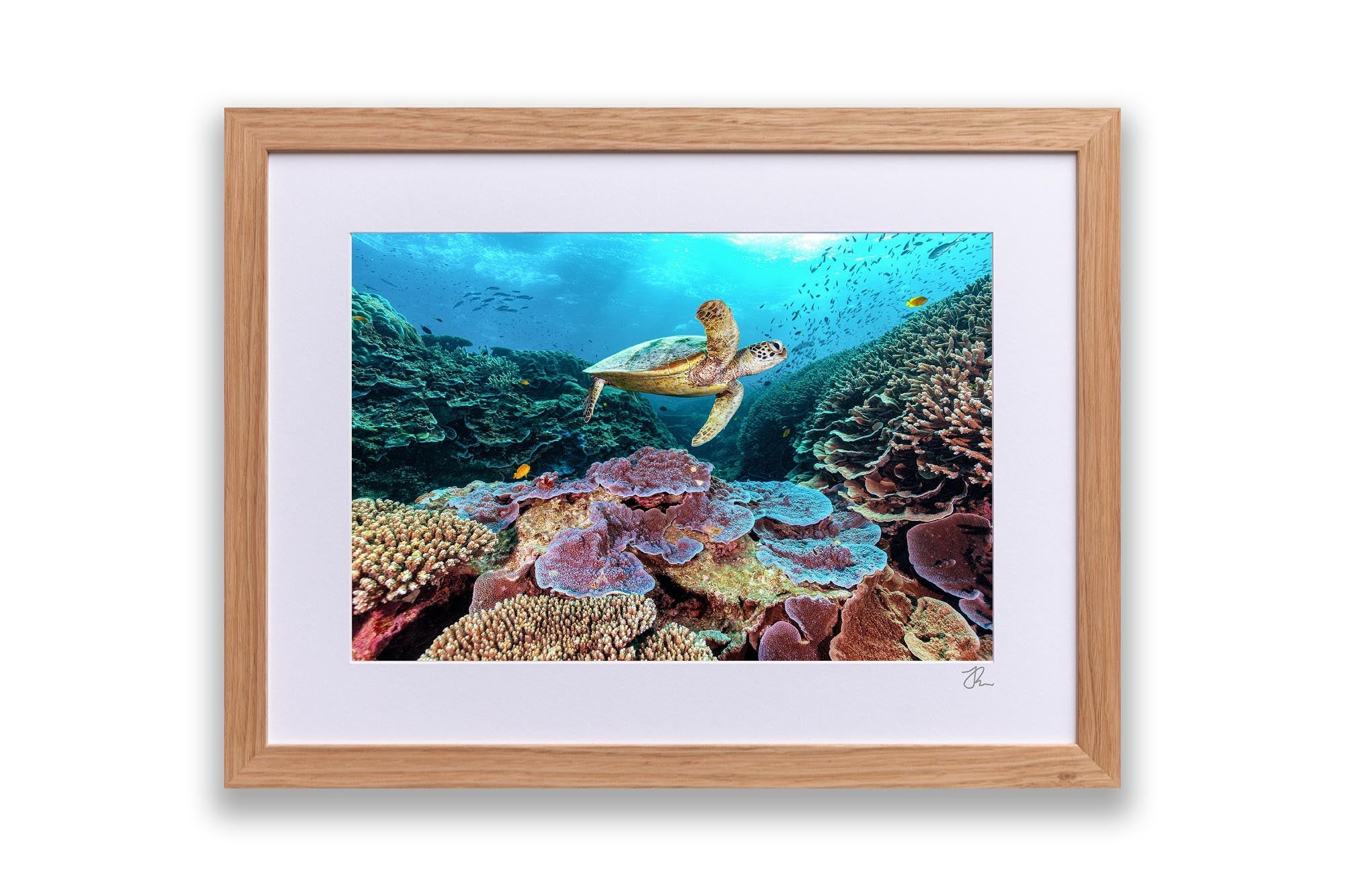 Green Sea Turtle (Chelonia mydas) Coral Garden Print – Heron Island, Southern Great Barrier Reef, Queensland