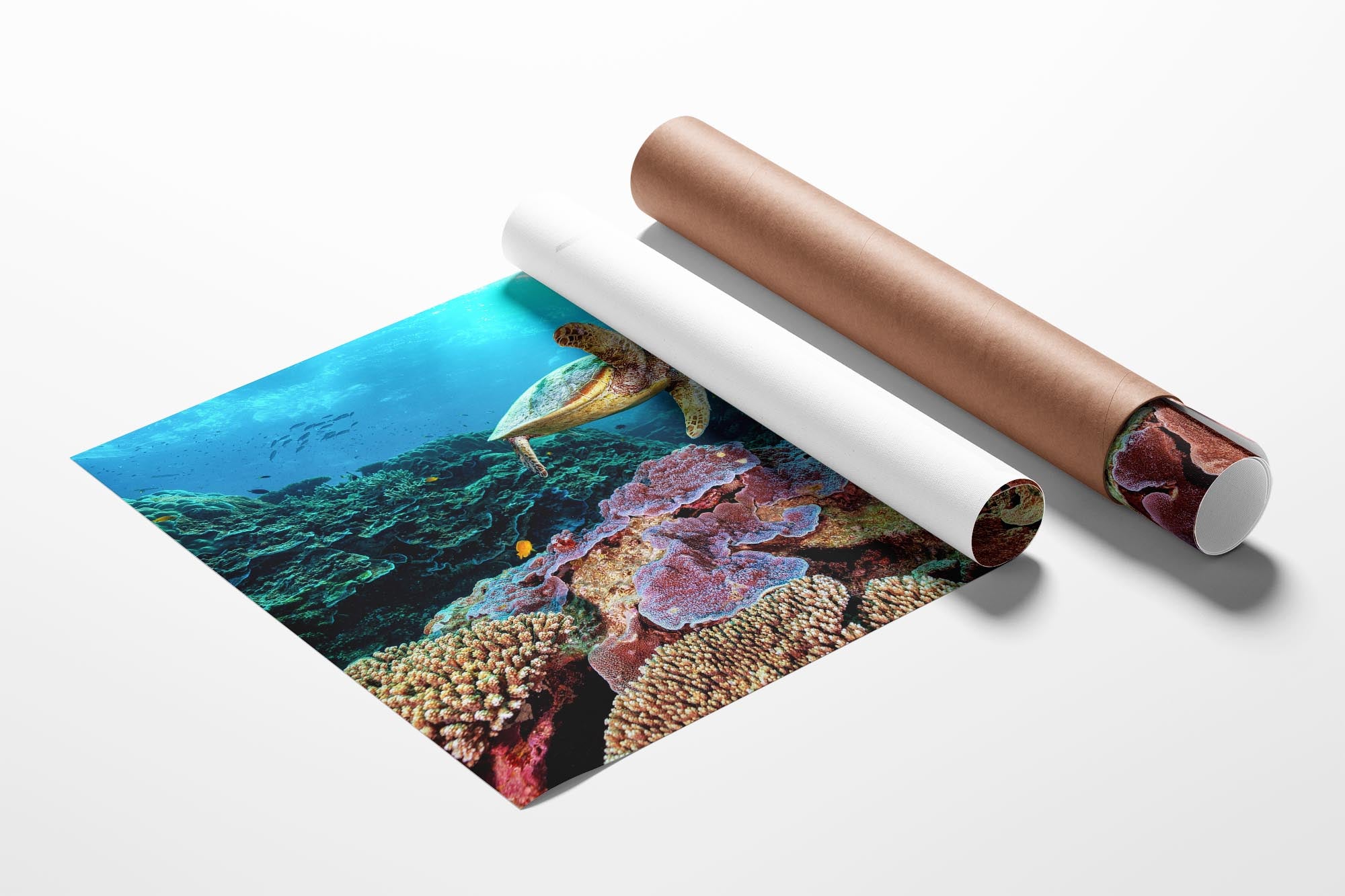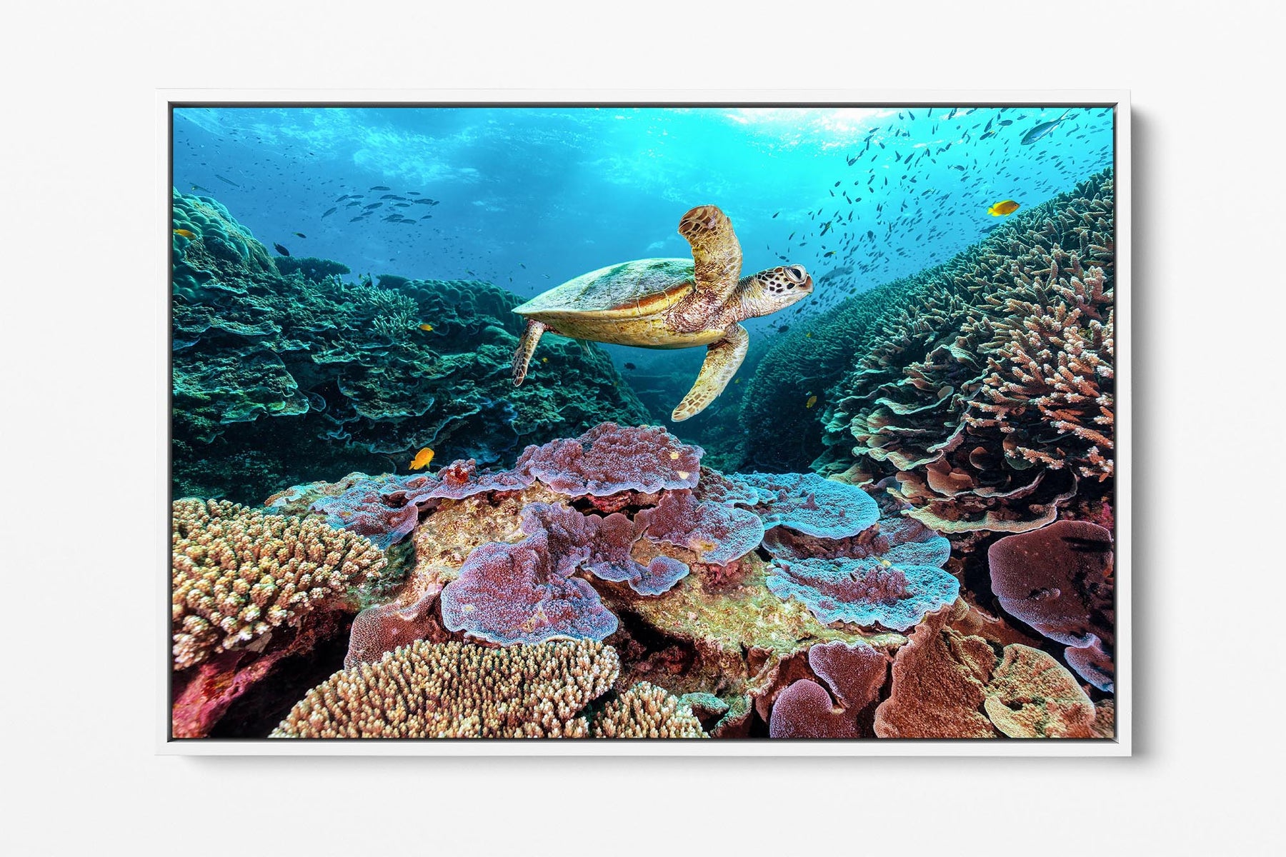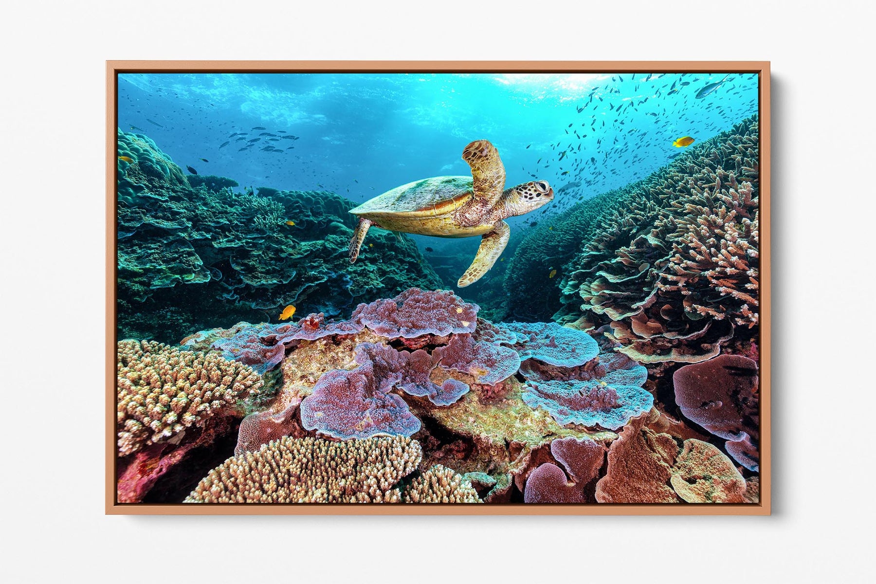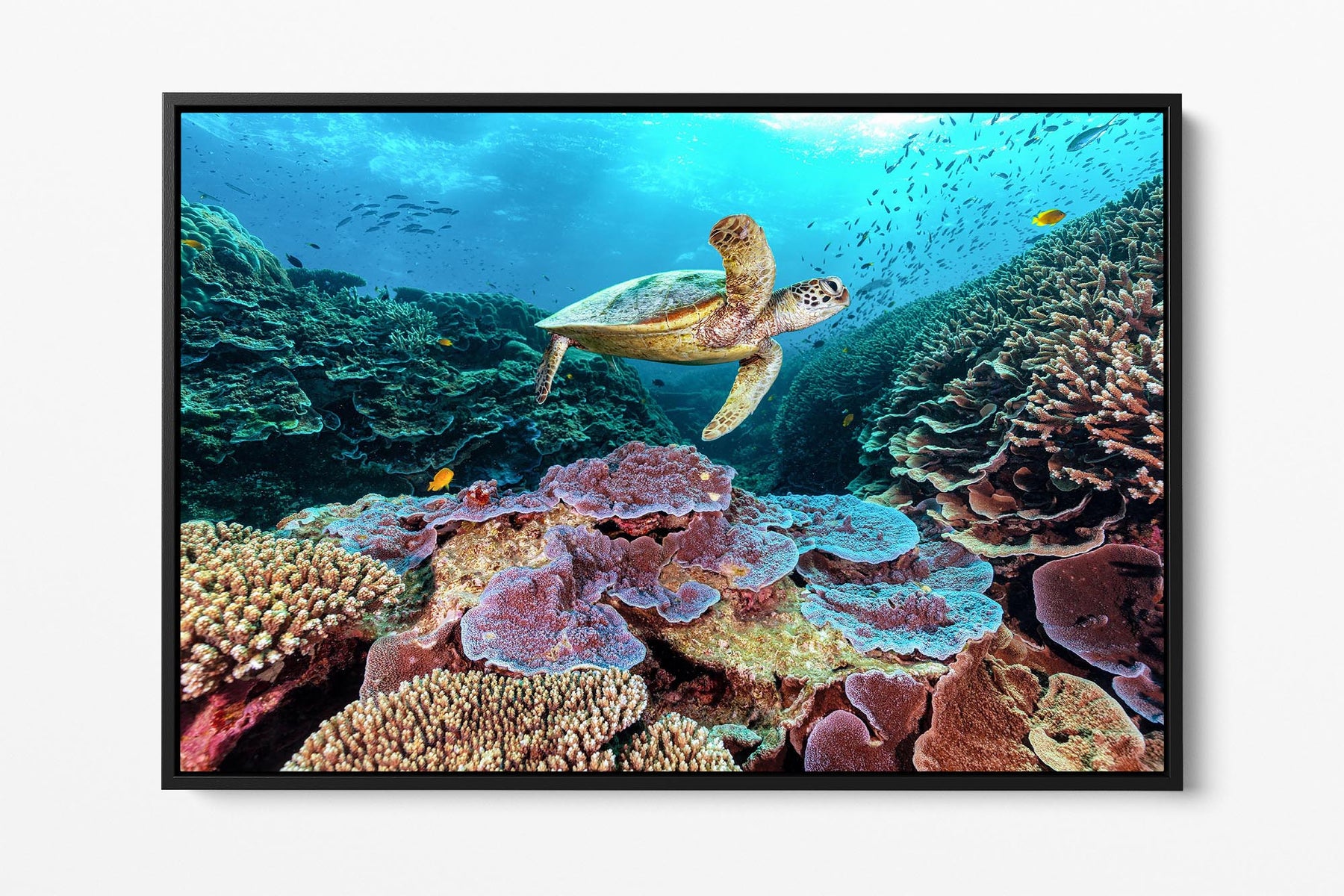 Green Sea Turtle (Chelonia mydas) Coral Garden Print – Heron Island, Southern Great Barrier Reef, Queensland