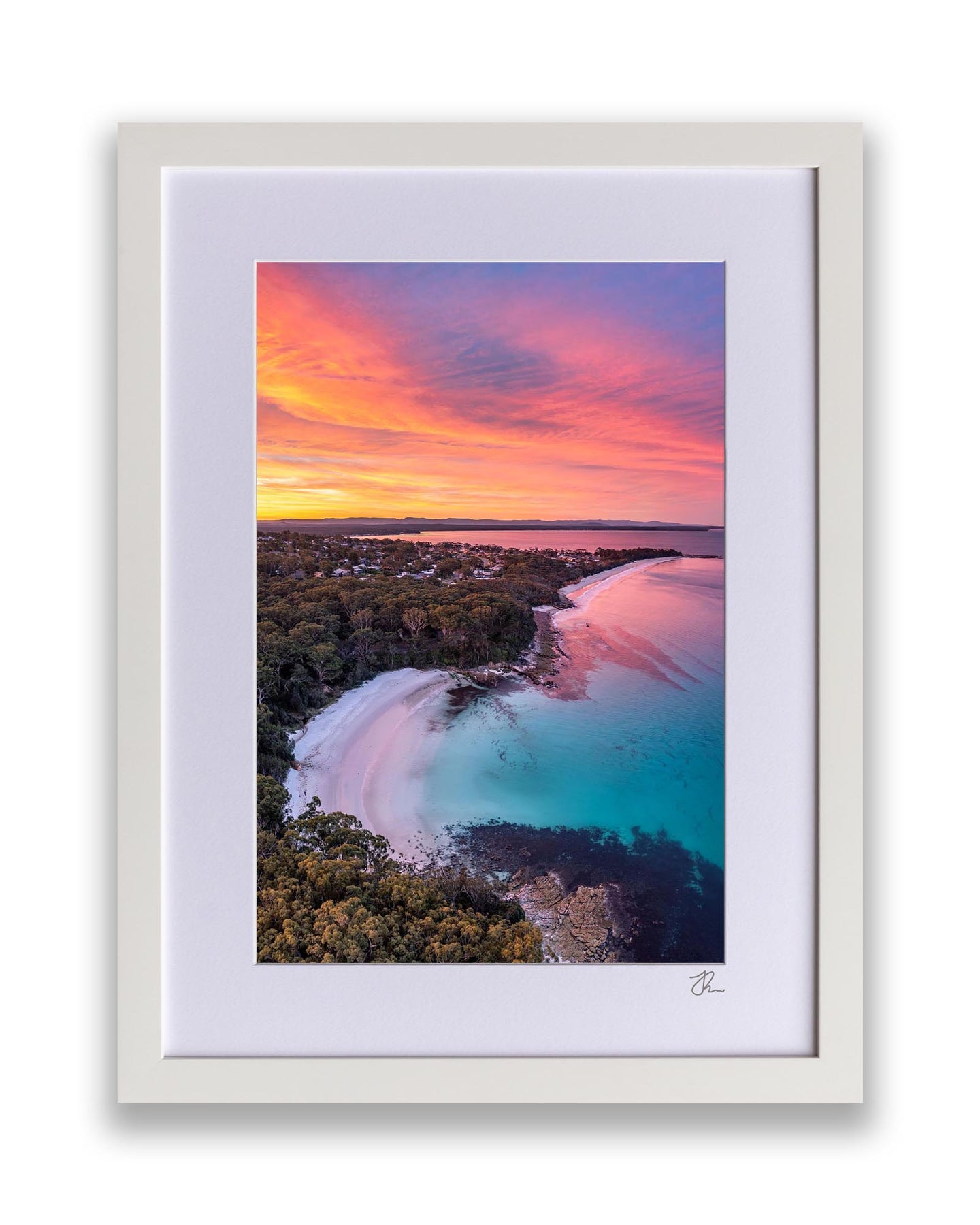 There are four different frame types available for Jordan’s Framed Print range, these include White, Black, White Wash and Tasmanian Oak (Premium Frame).
