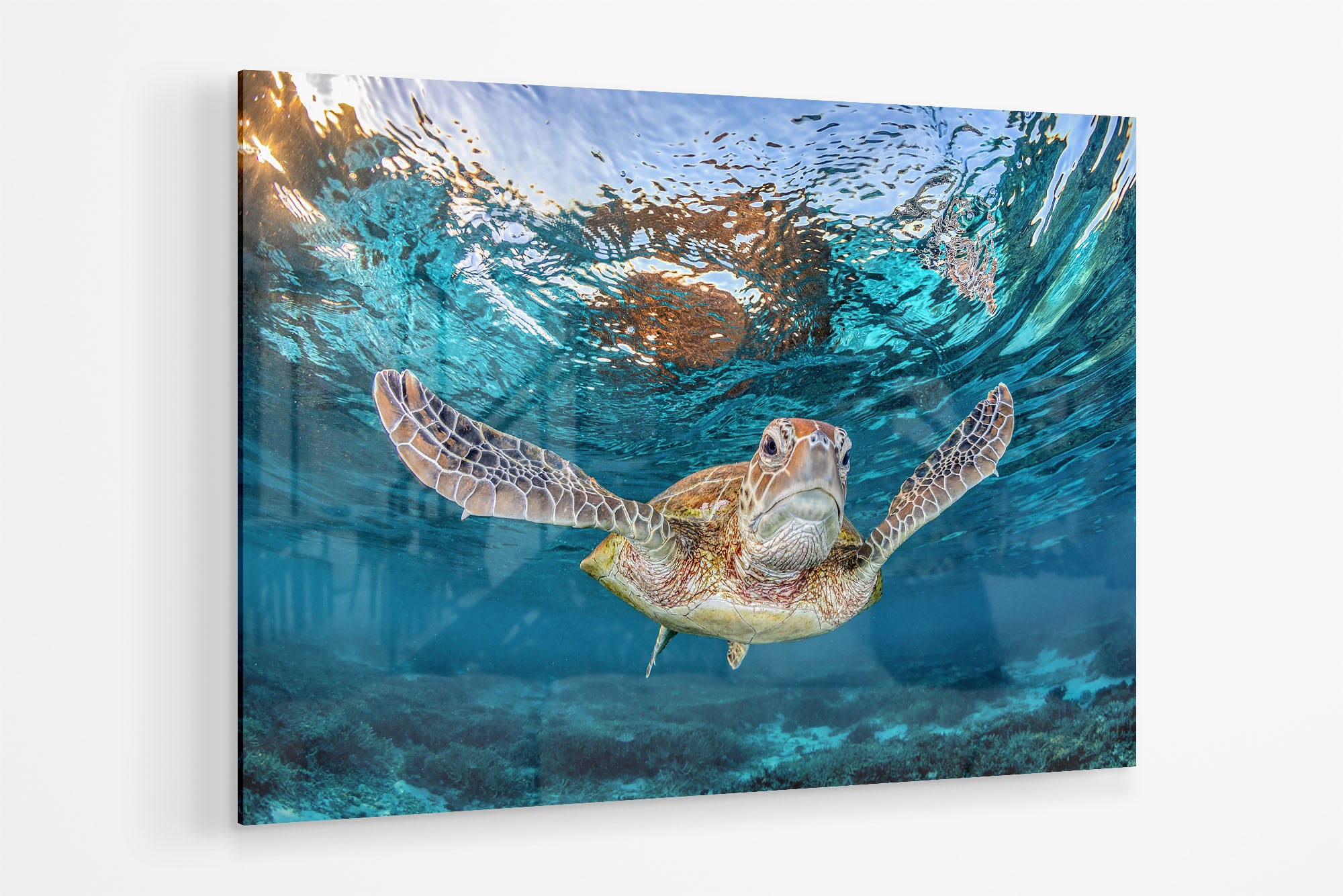 Green Sea Turtle (Chelonia mydas) Underwater Print – Lady Elliot Island Lagoon, Southern Great Barrier Reef, Queensland