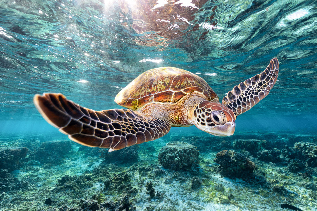 Green Sea Turtle (Chelonia mydas) Underwater Print – Lady Elliot Island Lagoon, Great Barrier Reef, Queensland