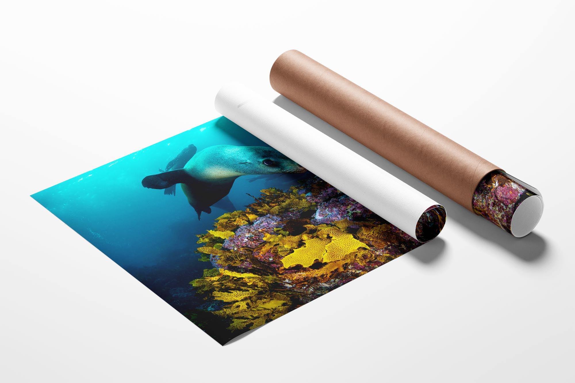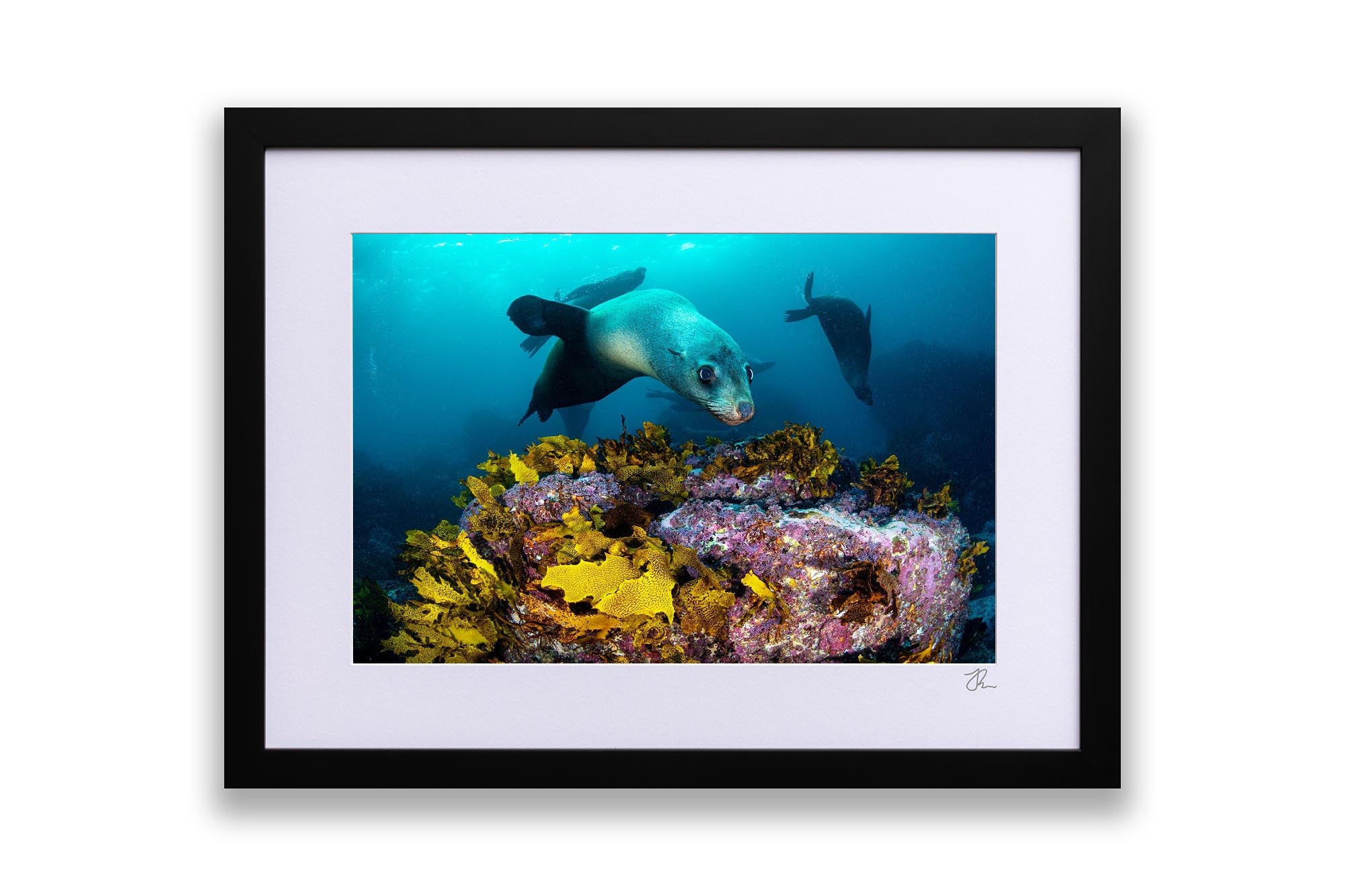 Dive in and experience the playful charm of friendly local Fur Seals, photographed while freediving in the crystal-clear waters off the coast of Jervis Bay. Perfect for wildlife enthusiasts, ocean lovers, or anyone looking to bring the vibrant marine life of Jervis Bay into their home or office. This fine art print is a celebration of Australia’s rich marine biodiversity and the joyful spirit of these beloved creatures.