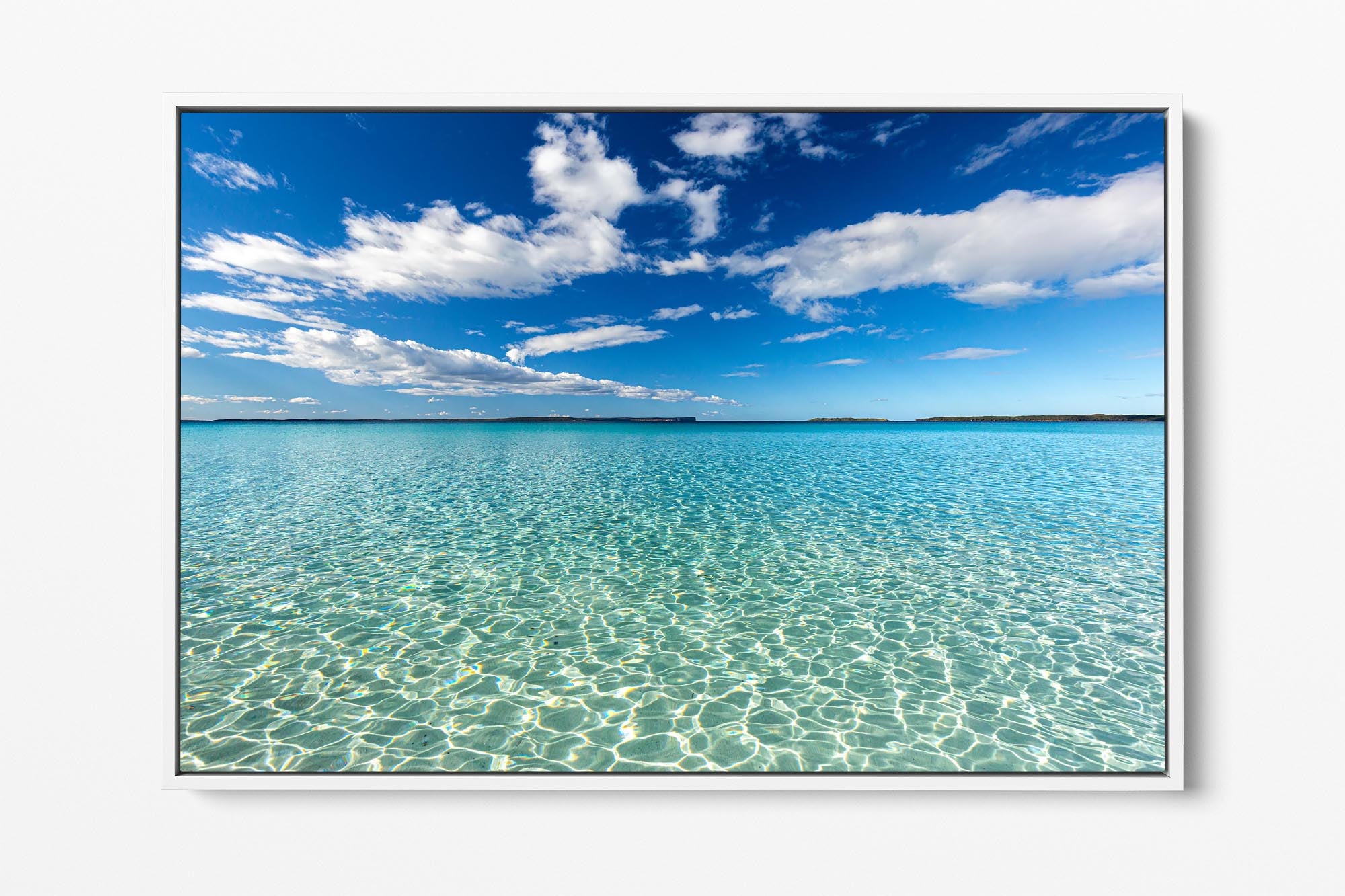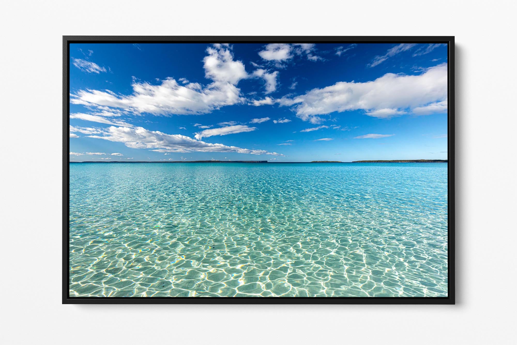 The fine art canvas come stretched around an internal timber frame however there is the option to add a float frame to the exterior of the fine art canvas. Float frames are available in white, black and Tasmanian oak and are a great way to add more depth and contrast to our fine art canvas range.