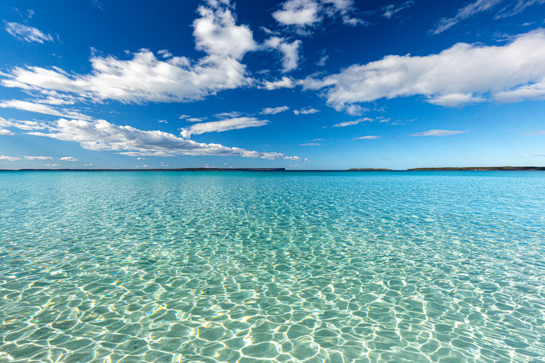 Glassy conditions at Hyams Beach, looking out towards Point Perpendicular at the entrance of Jervis Bay.