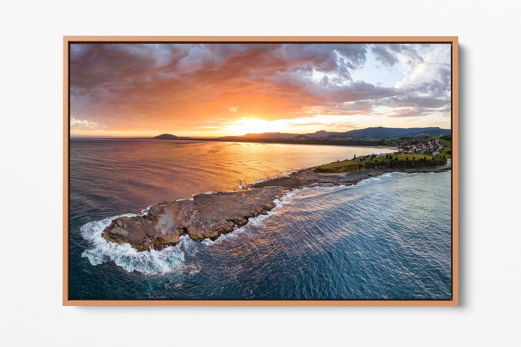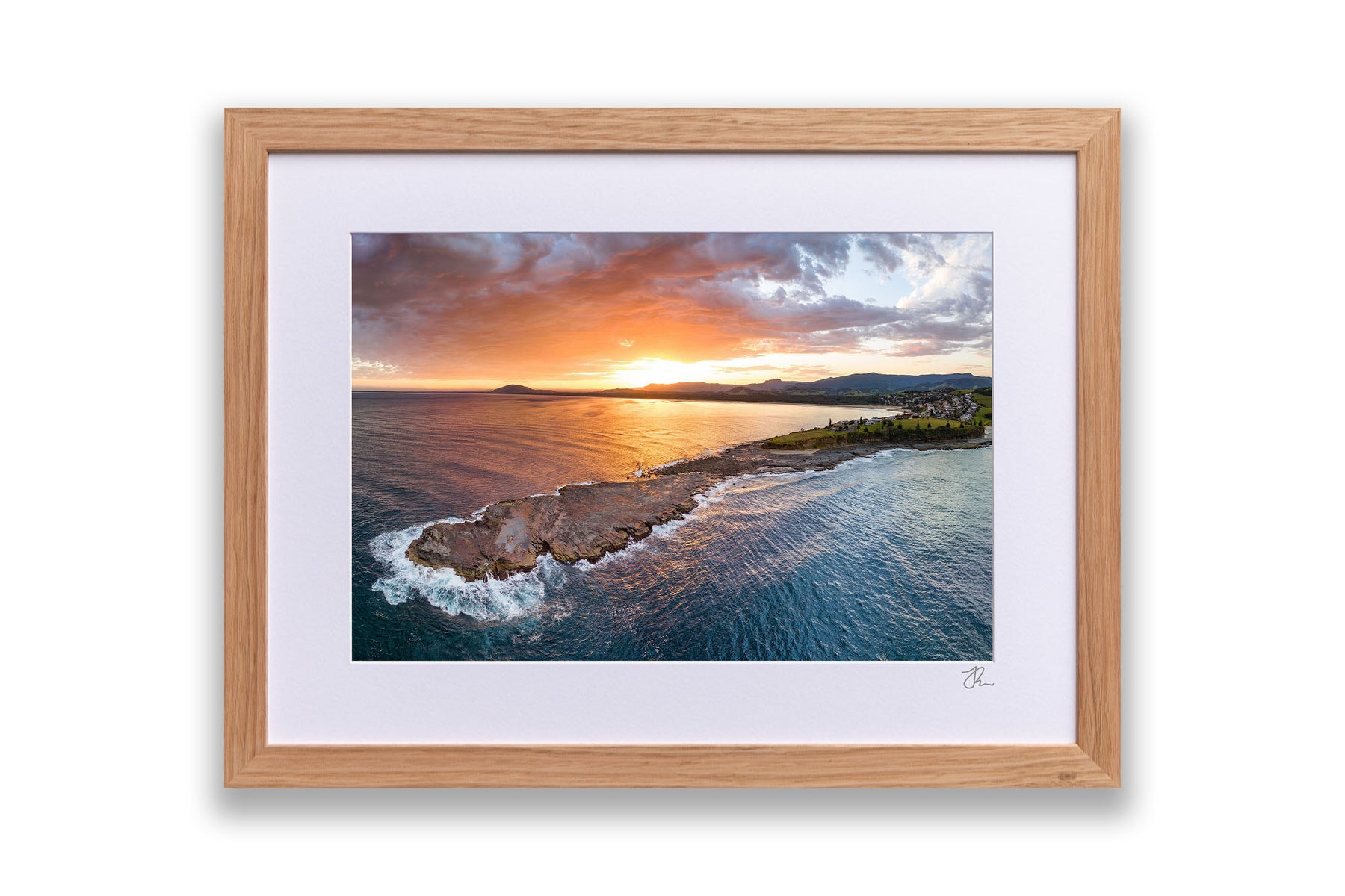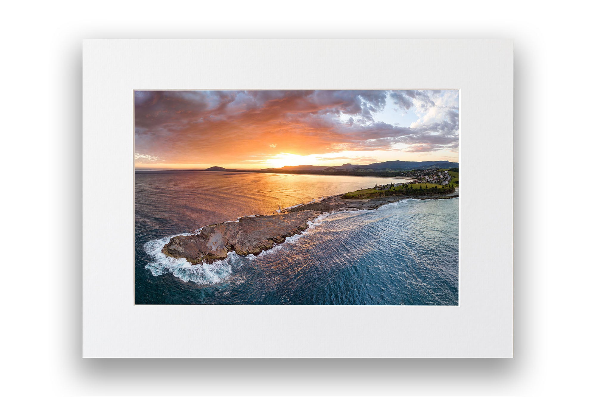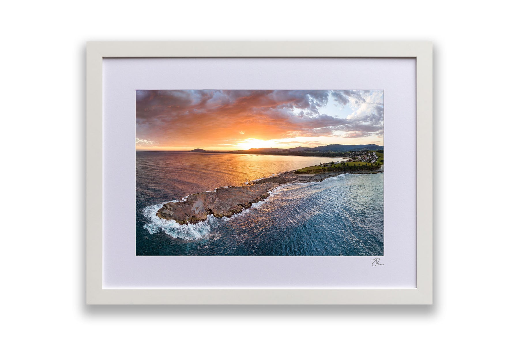 Stunning Aerial Sunset Photo Print – Black Head & 7 Mile Beach, Gerroa | Coastal Wall Art