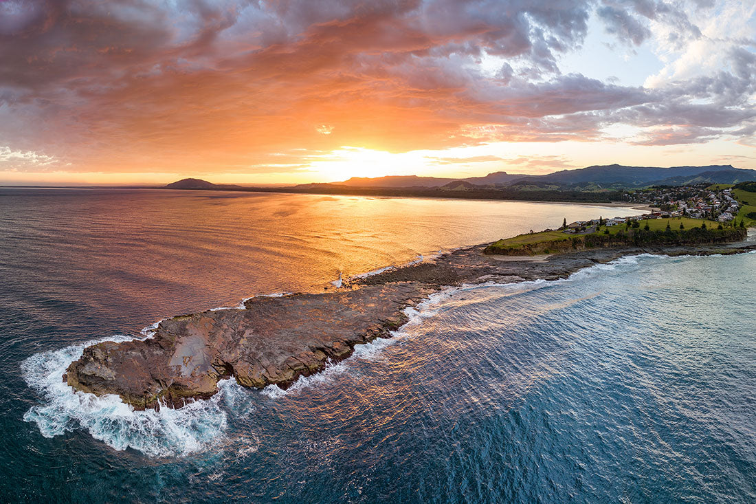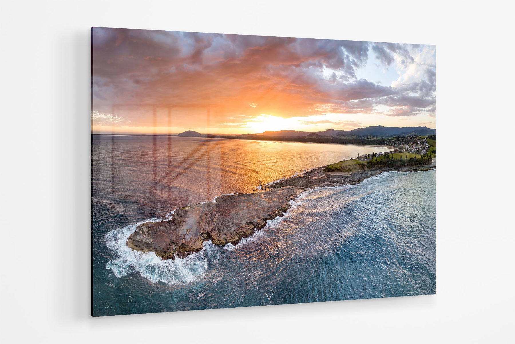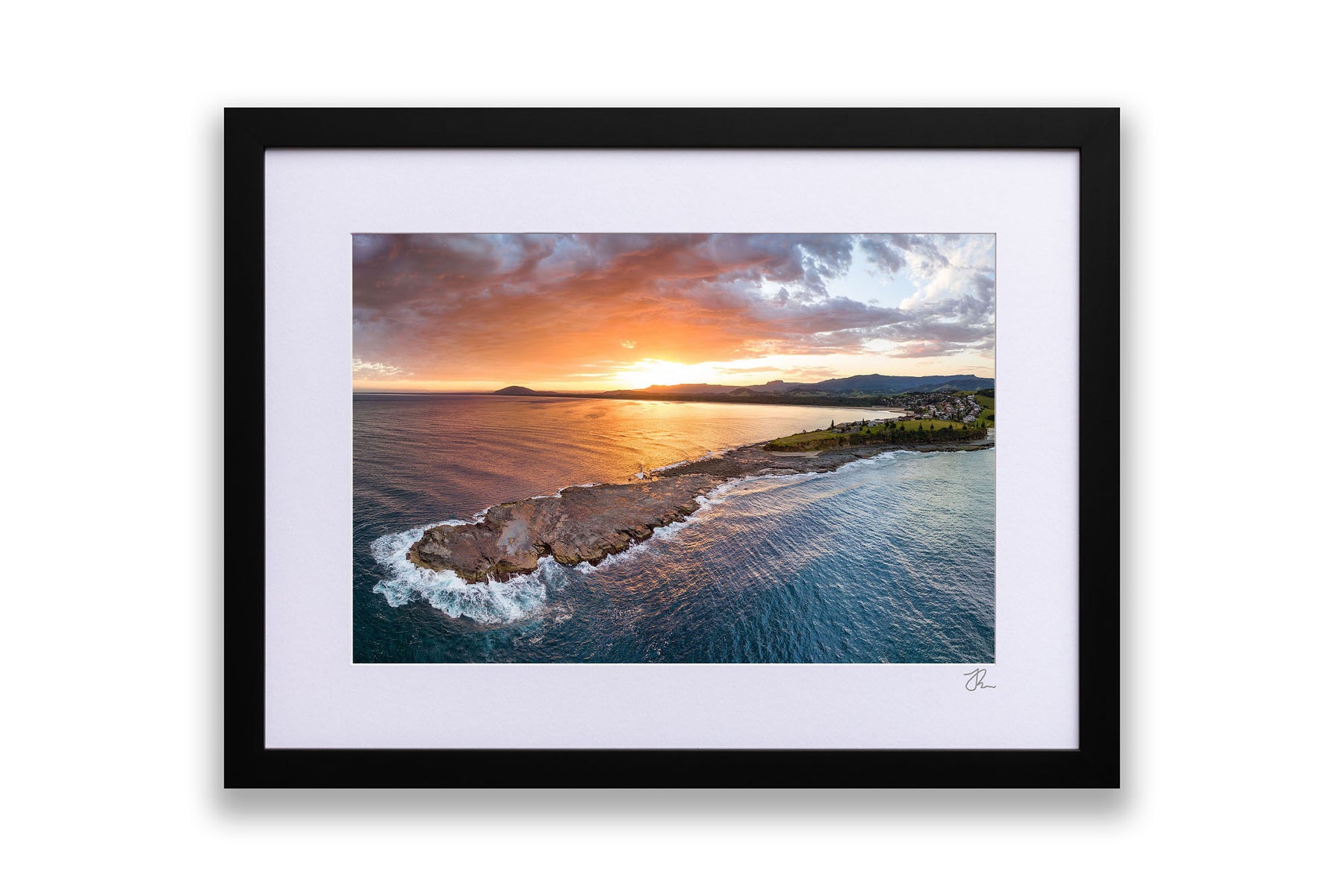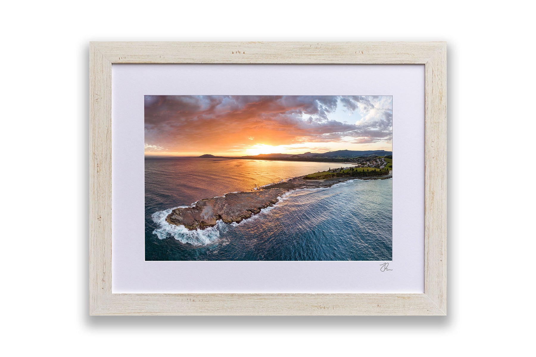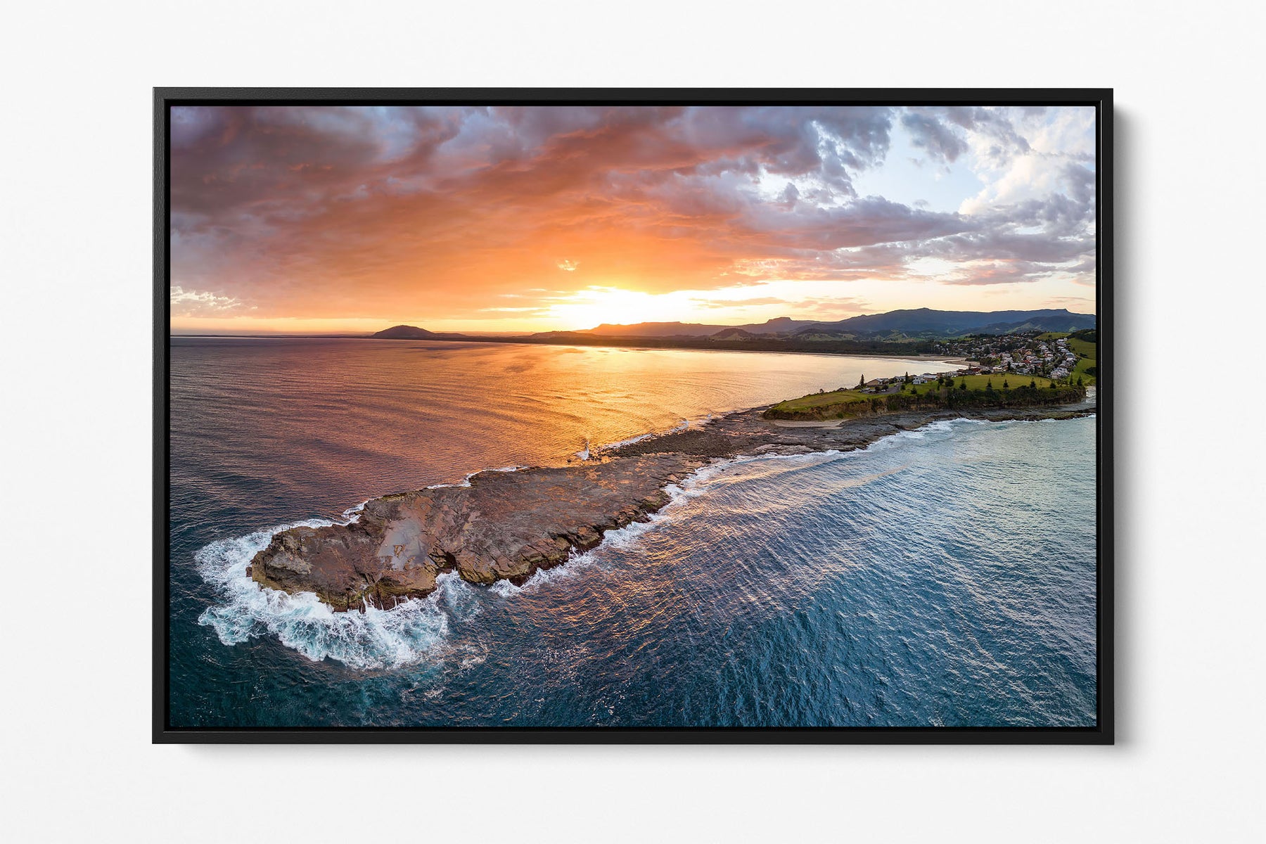 Stunning Aerial Sunset Photo Print – Black Head & 7 Mile Beach, Gerroa | Coastal Wall Art
