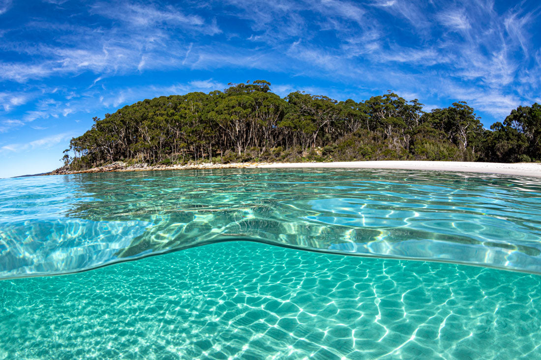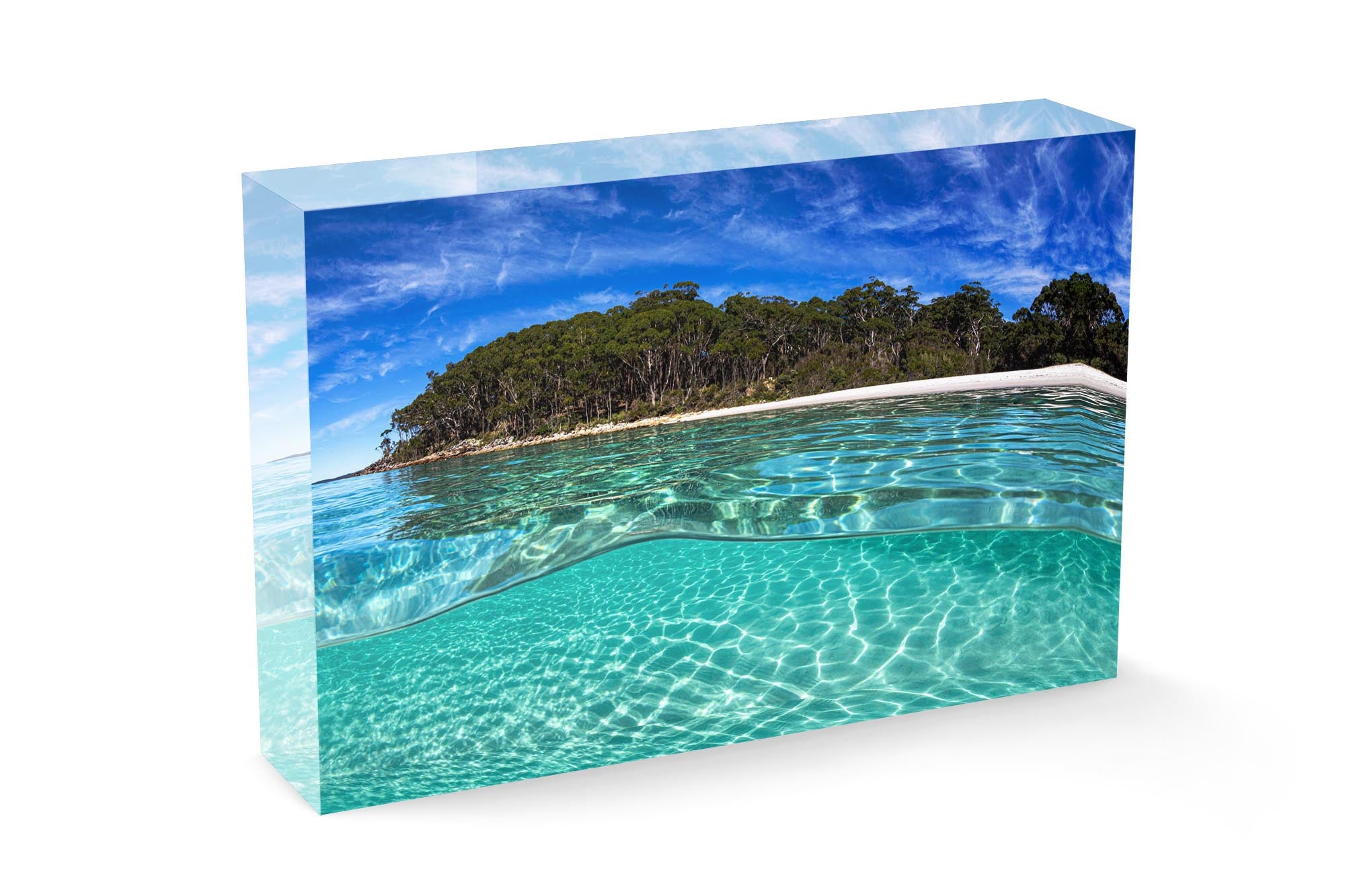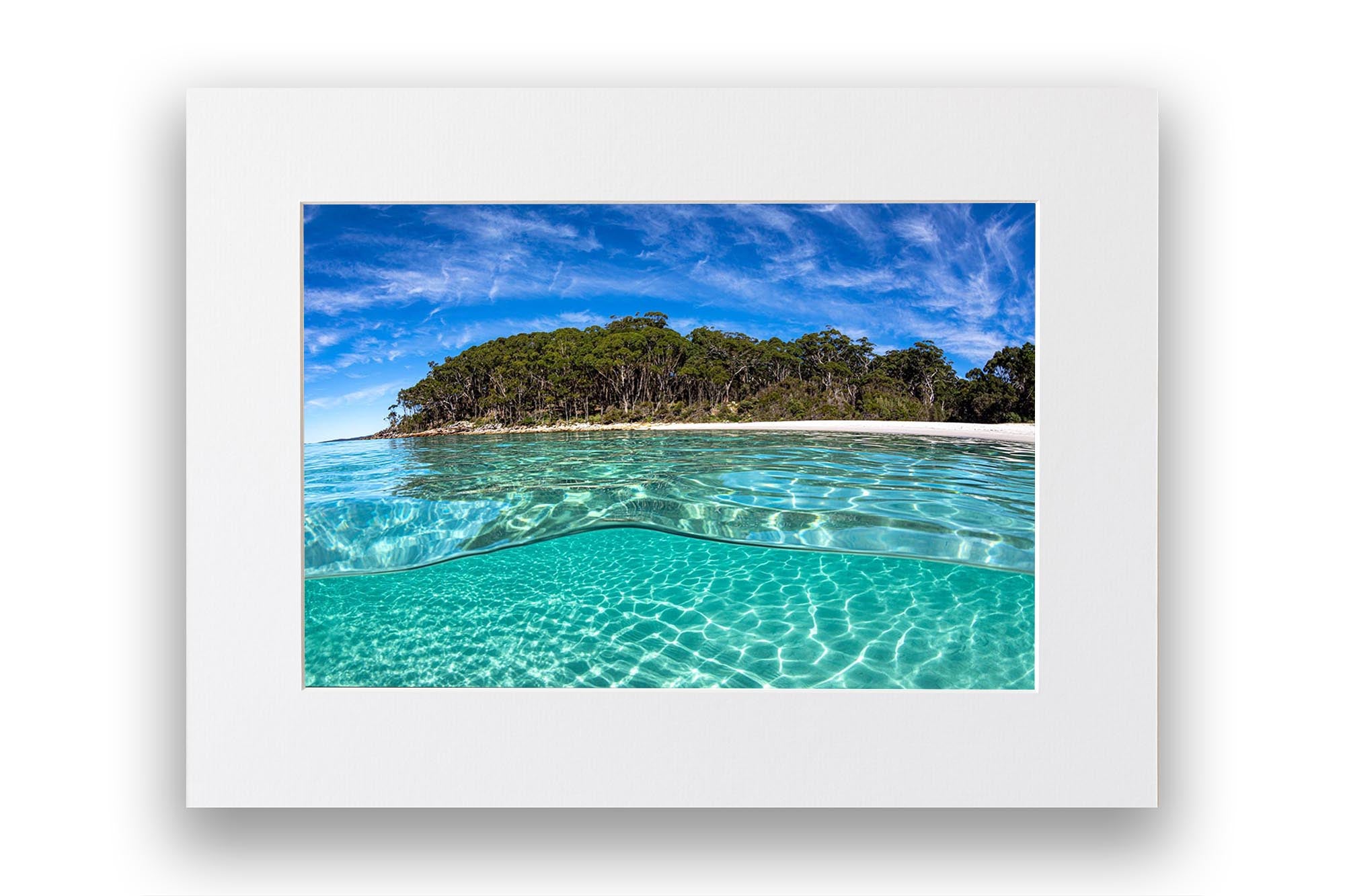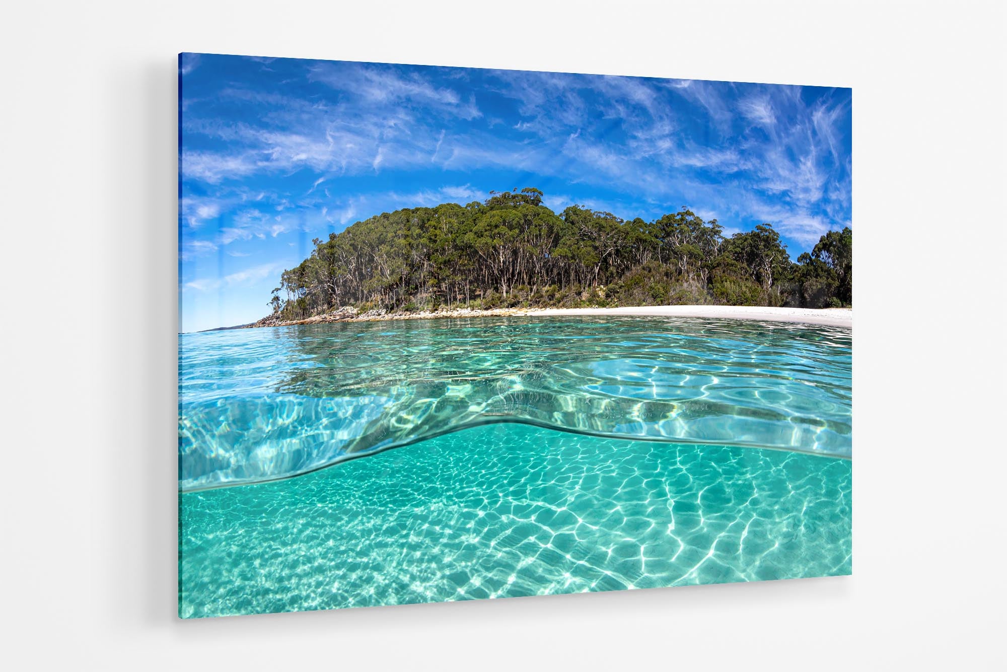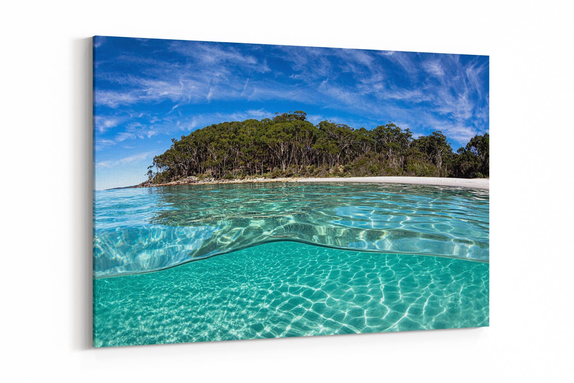Over-Under Photo Print of Greenfield Beach, Jervis Bay – Crystal Waters Meet White Sands & Native Bushland