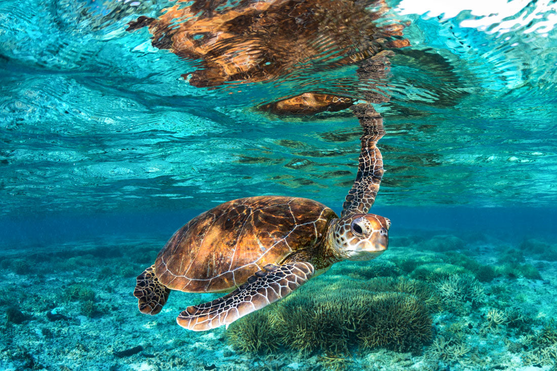 Green Sea Turtle (Chelonia mydas) Underwater Print – Lady Elliot Island, Great Barrier Reef, Australia