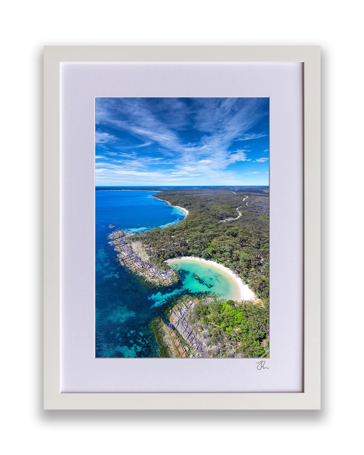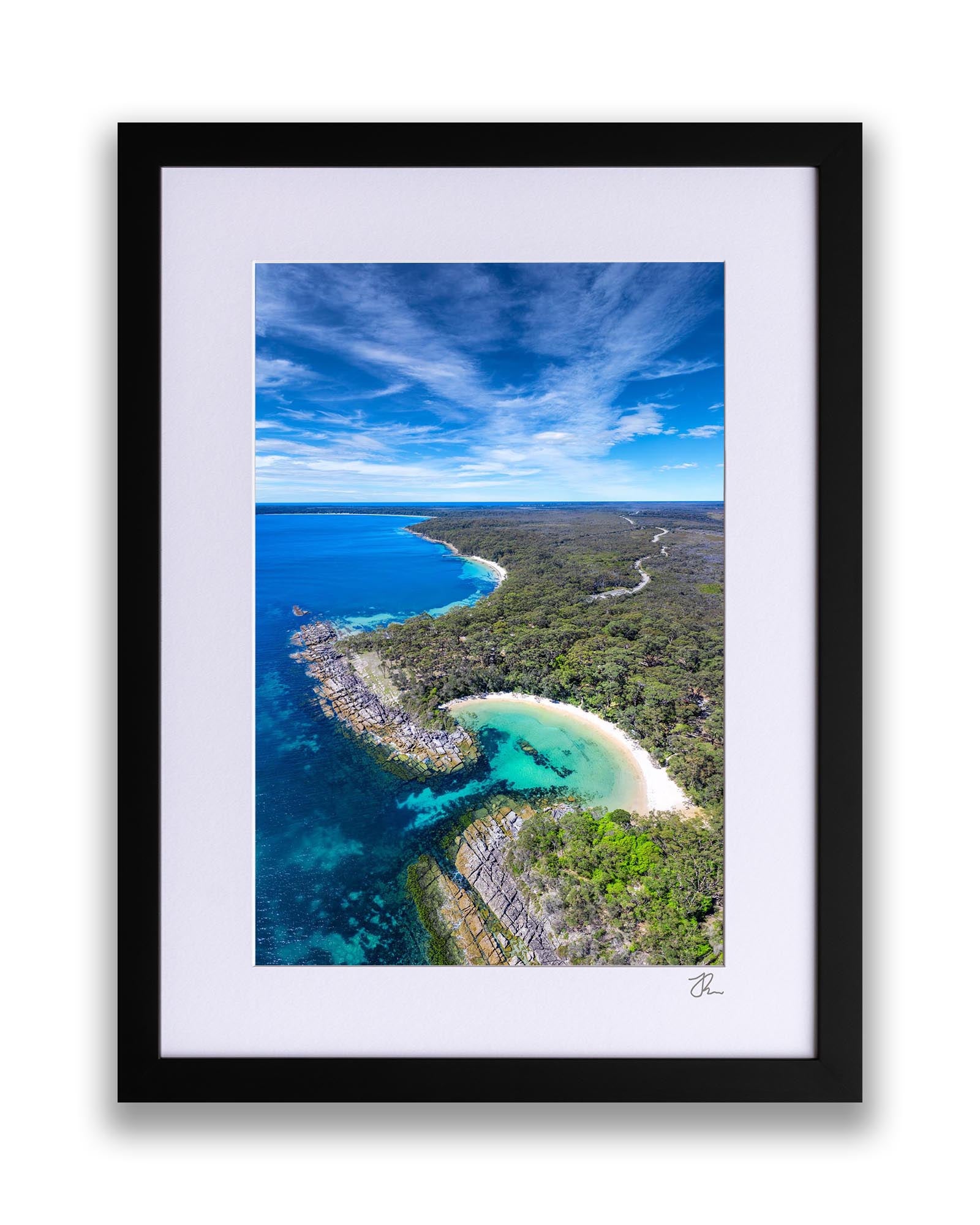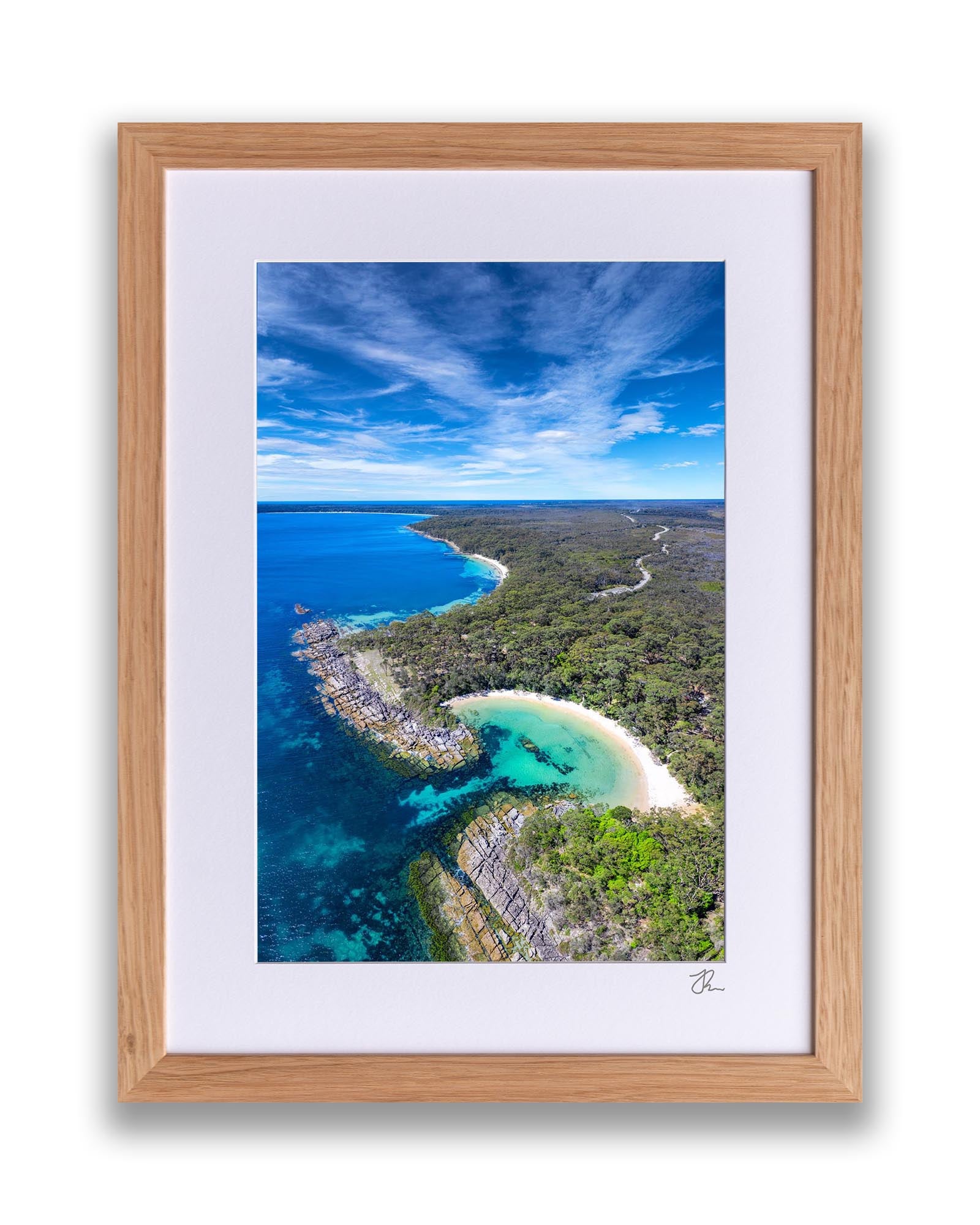 Aerial Fine Art Print – Honeymoon Bay, Jervis Bay | Coastal Wall Decor