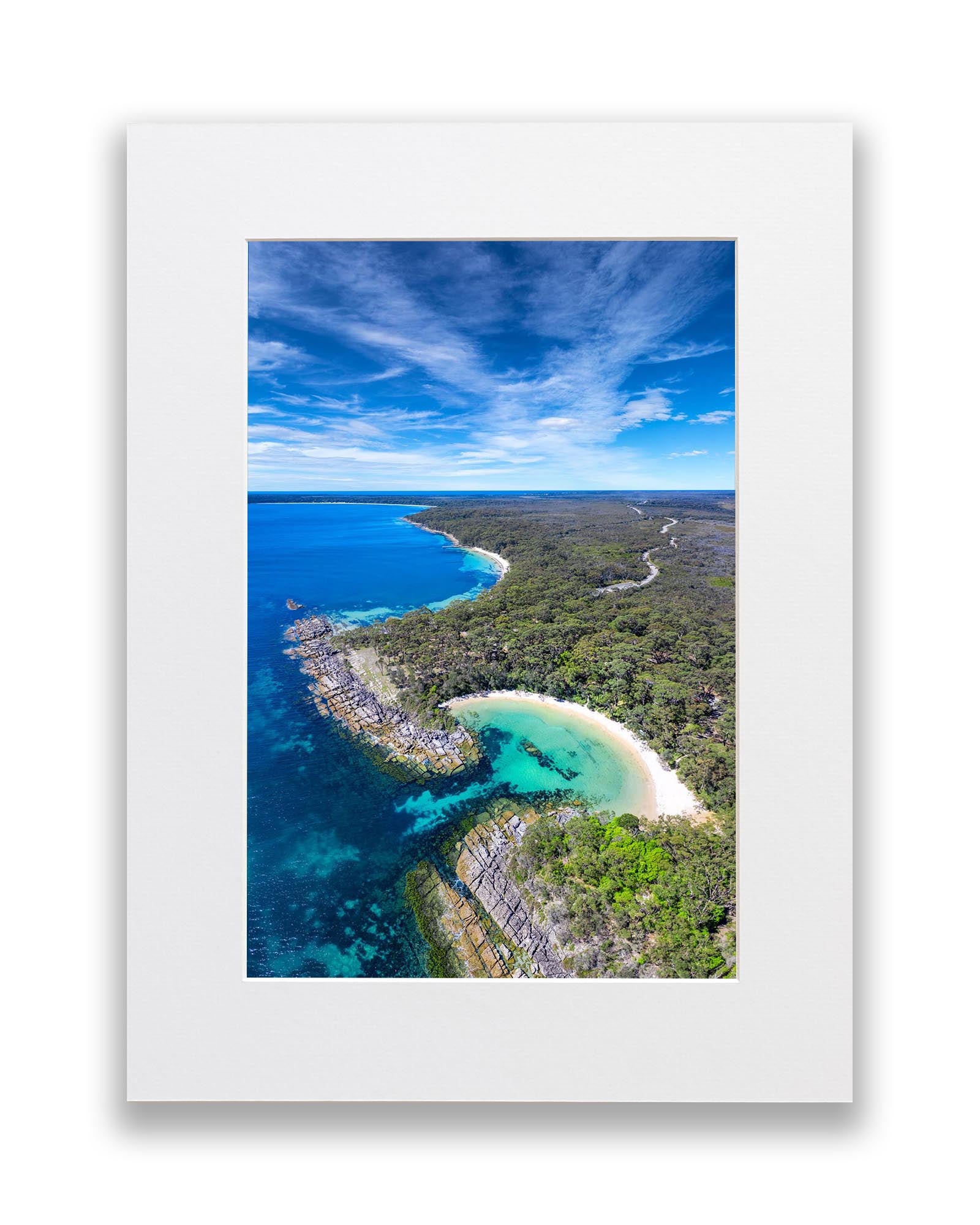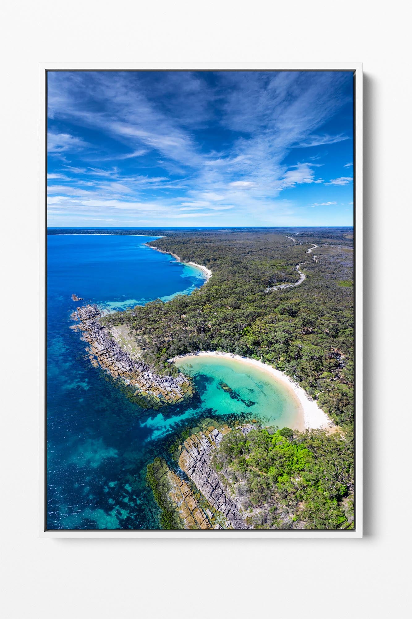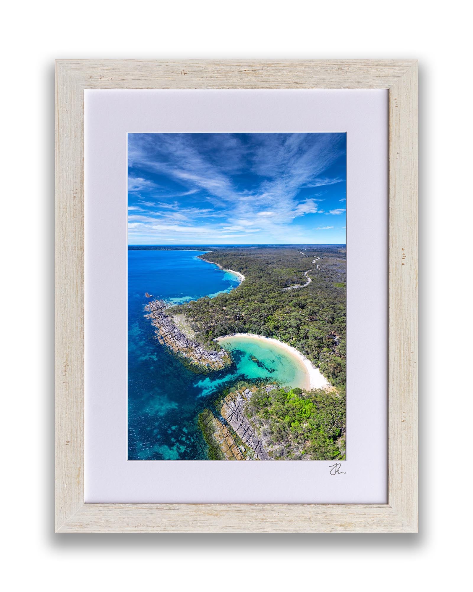 Aerial Fine Art Print – Honeymoon Bay, Jervis Bay | Coastal Wall Decor