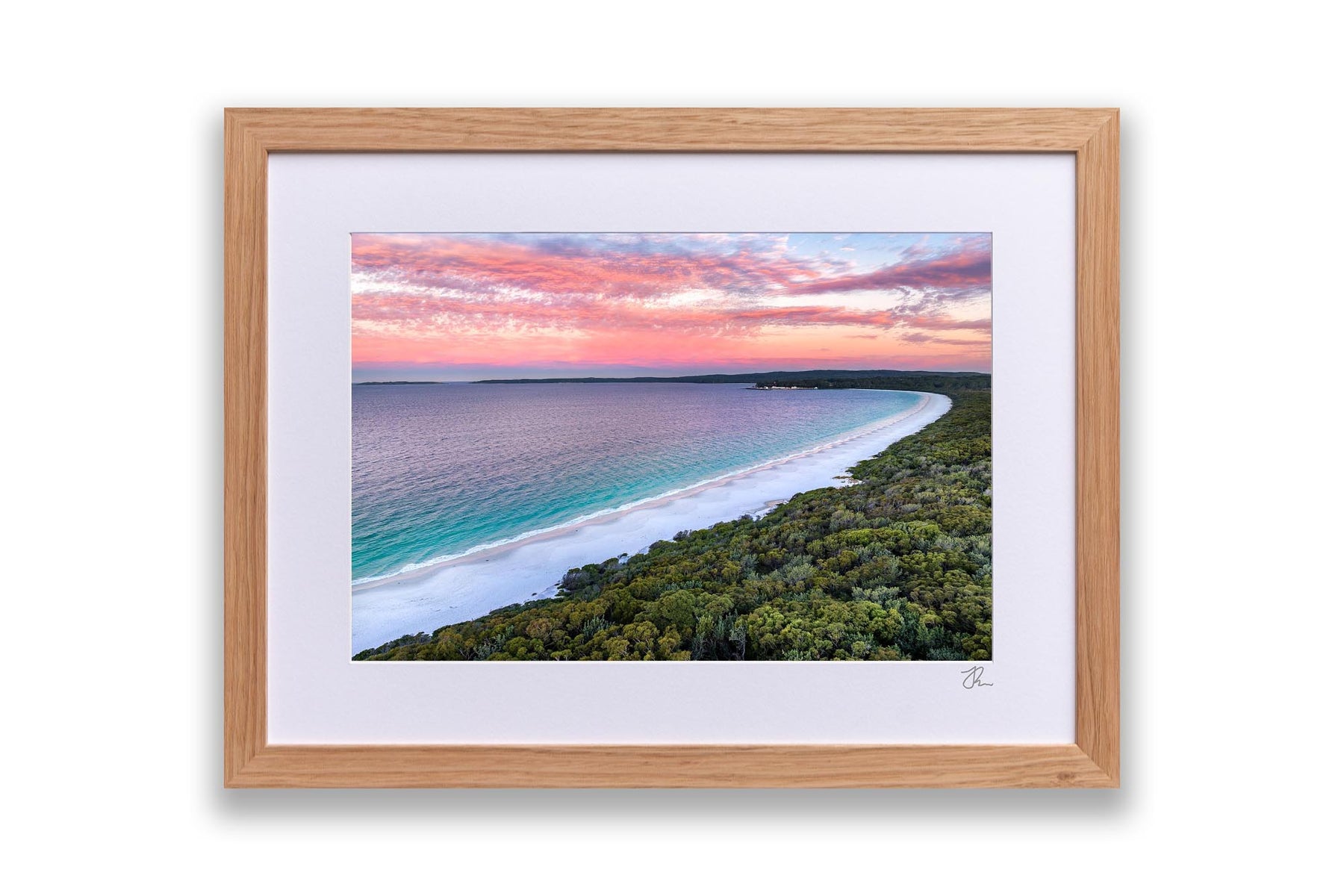Aerial Sunset Fine Art Print – Hyams Beach, Jervis Bay | Pastel Coastal Wall Art