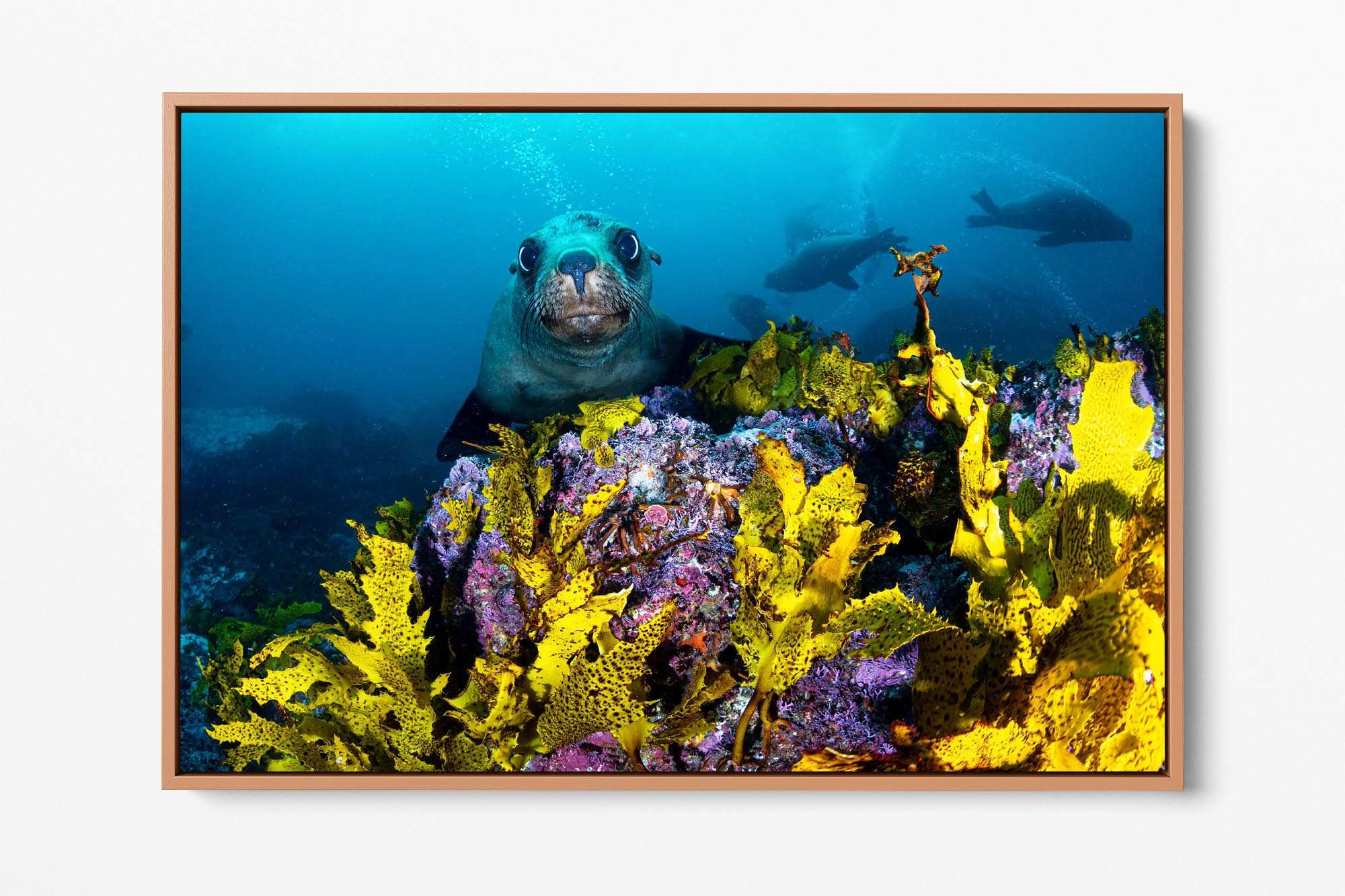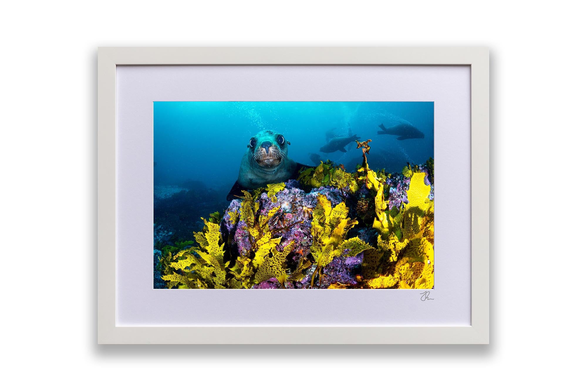 Experience the charm of a friendly local Fur Seal posing for the camera in the crystal-clear waters off the coast of Jervis Bay, one of Australia’s top diving destinations. This print showcases the playful nature of this beloved marine mammal, making it perfect for wildlife photography enthusiasts, ocean lovers, and diving enthusiasts.