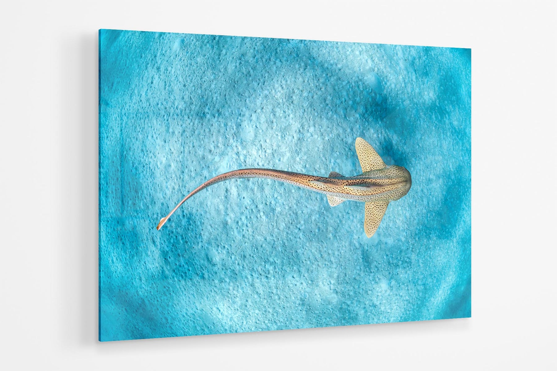 This stunning photo print captures a Leopard Shark / Zebra Shark (Stegostoma tigrinum) gracefully gliding over the sandy sea floor in the crystal-clear waters of the Ningaloo Reef, Western Australia. Known for their distinctive patterns and elegant movements, these sharks are also referred to as Zebra Sharks in other parts of the world, but in Australia, they are referred as Leopard Sharks.