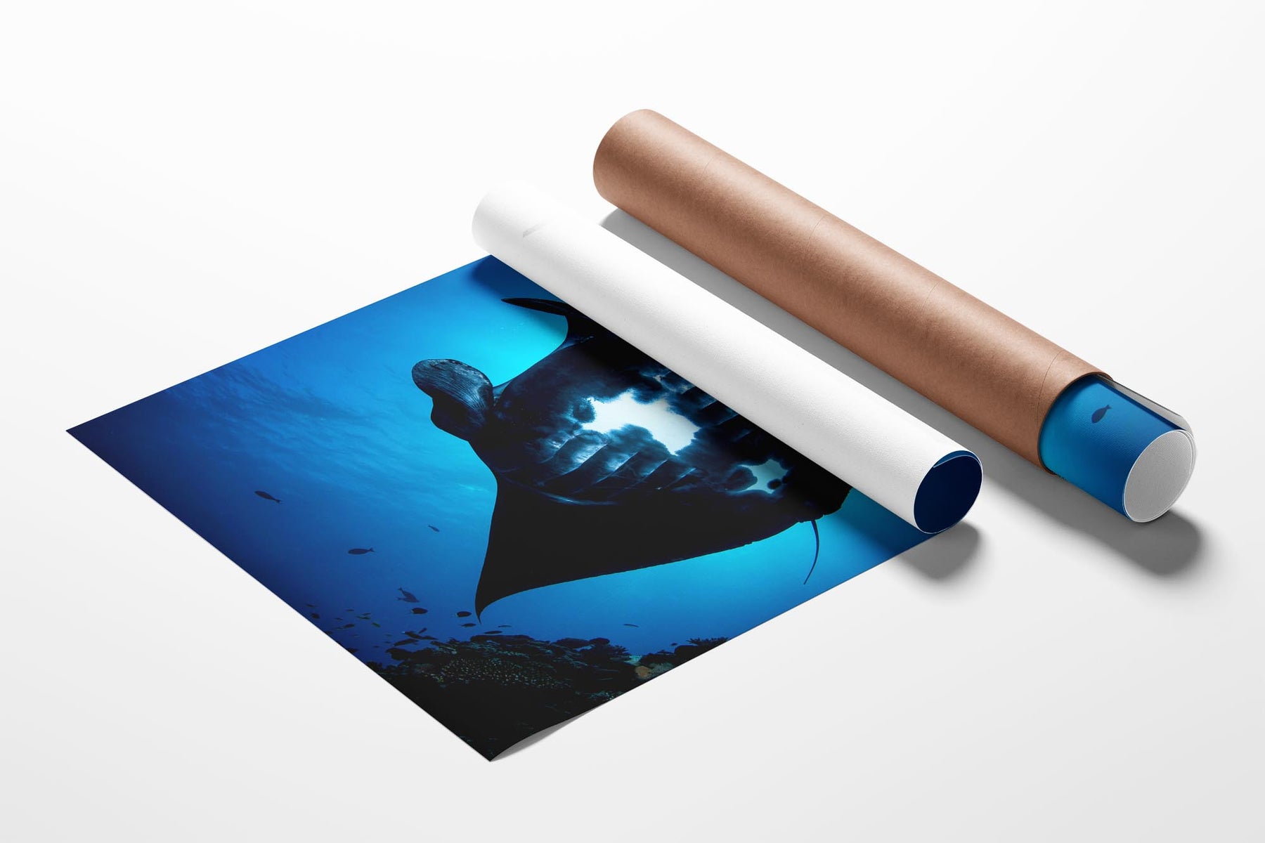 Melanistic Manta Ray Underwater Print – Lady Elliot Island, Great Barrier Reef, Queensland