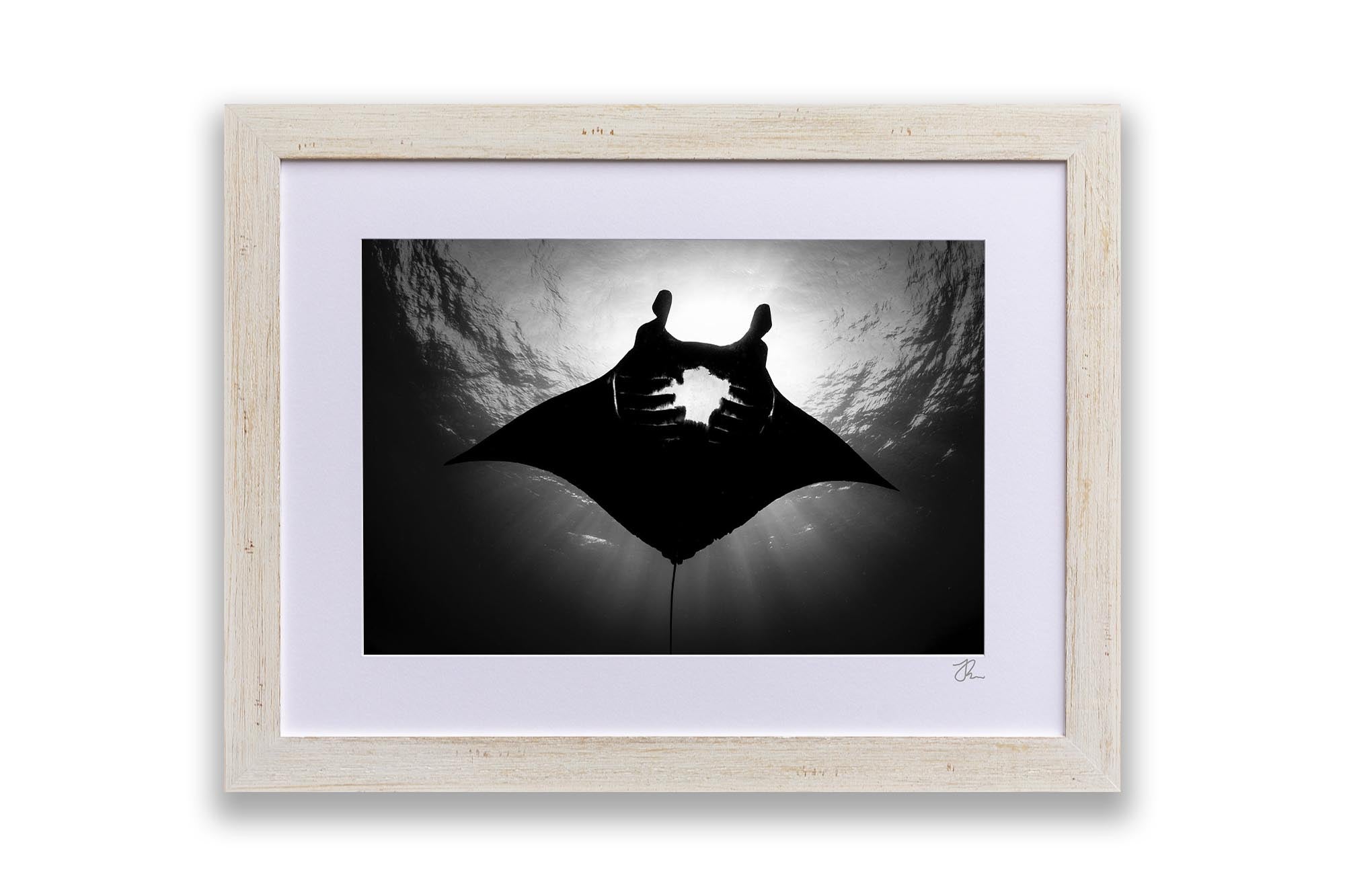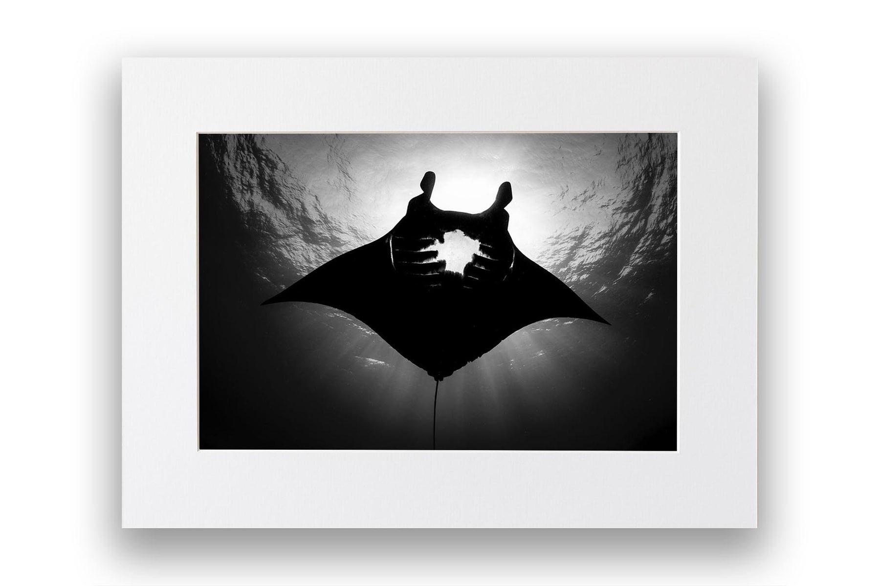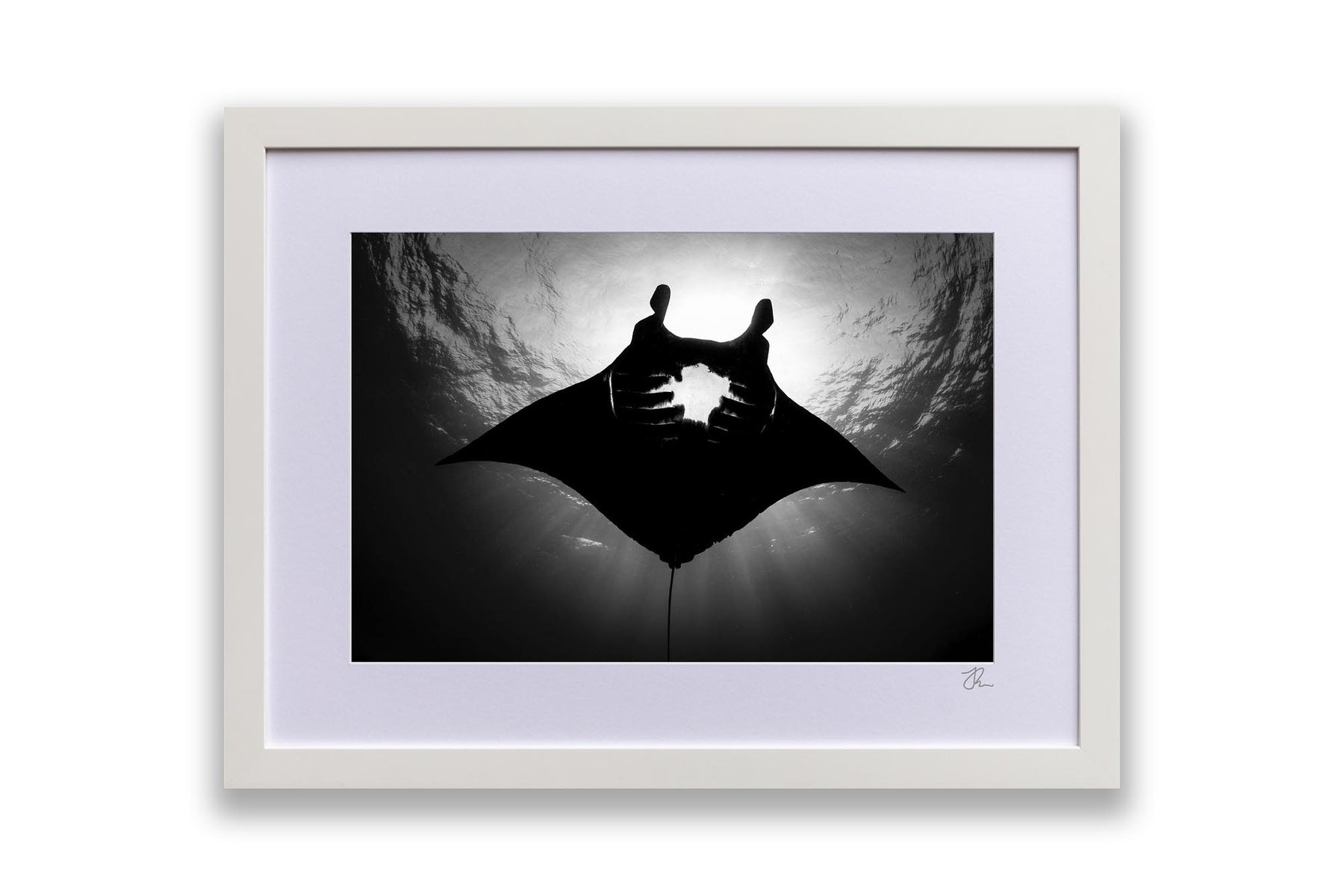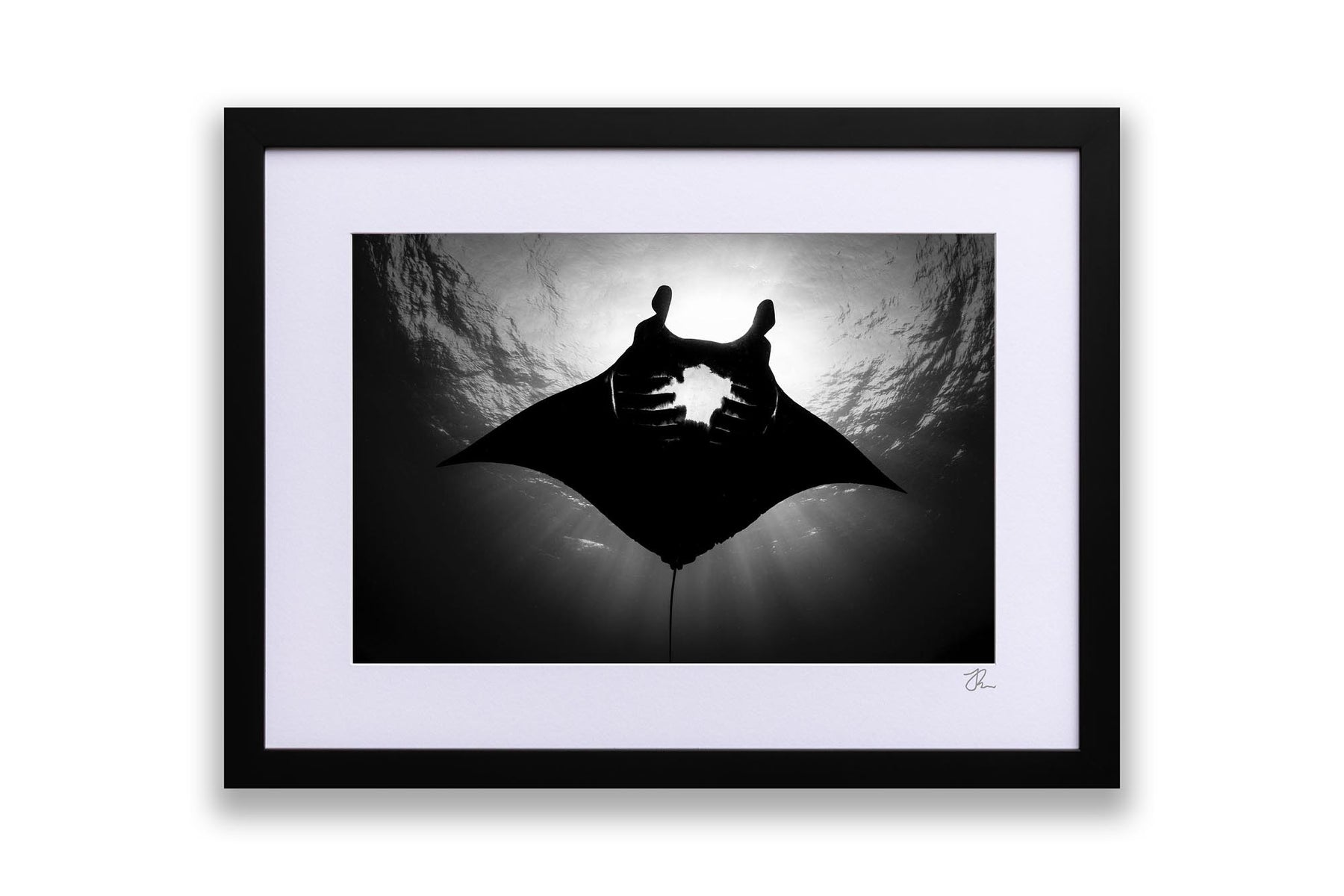 Silhouette Symphony Fine Art Print – Manta Ray at Lady Elliot Island | Monochrome Great Barrier Reef Masterpiece