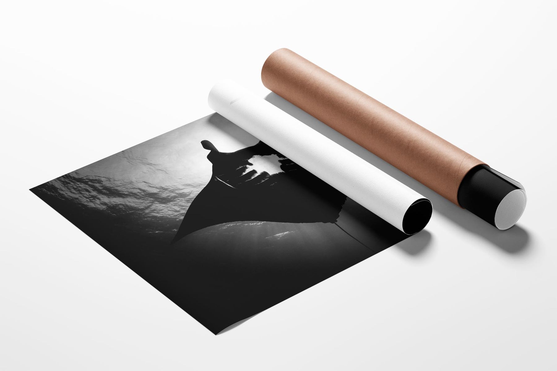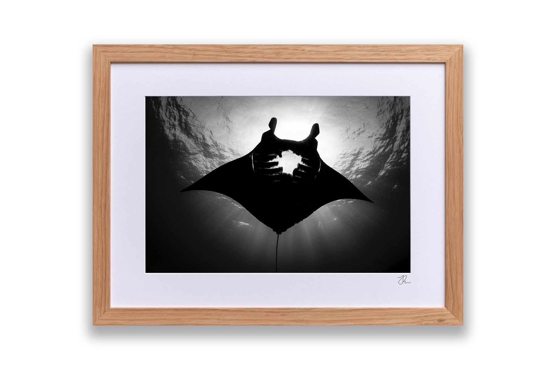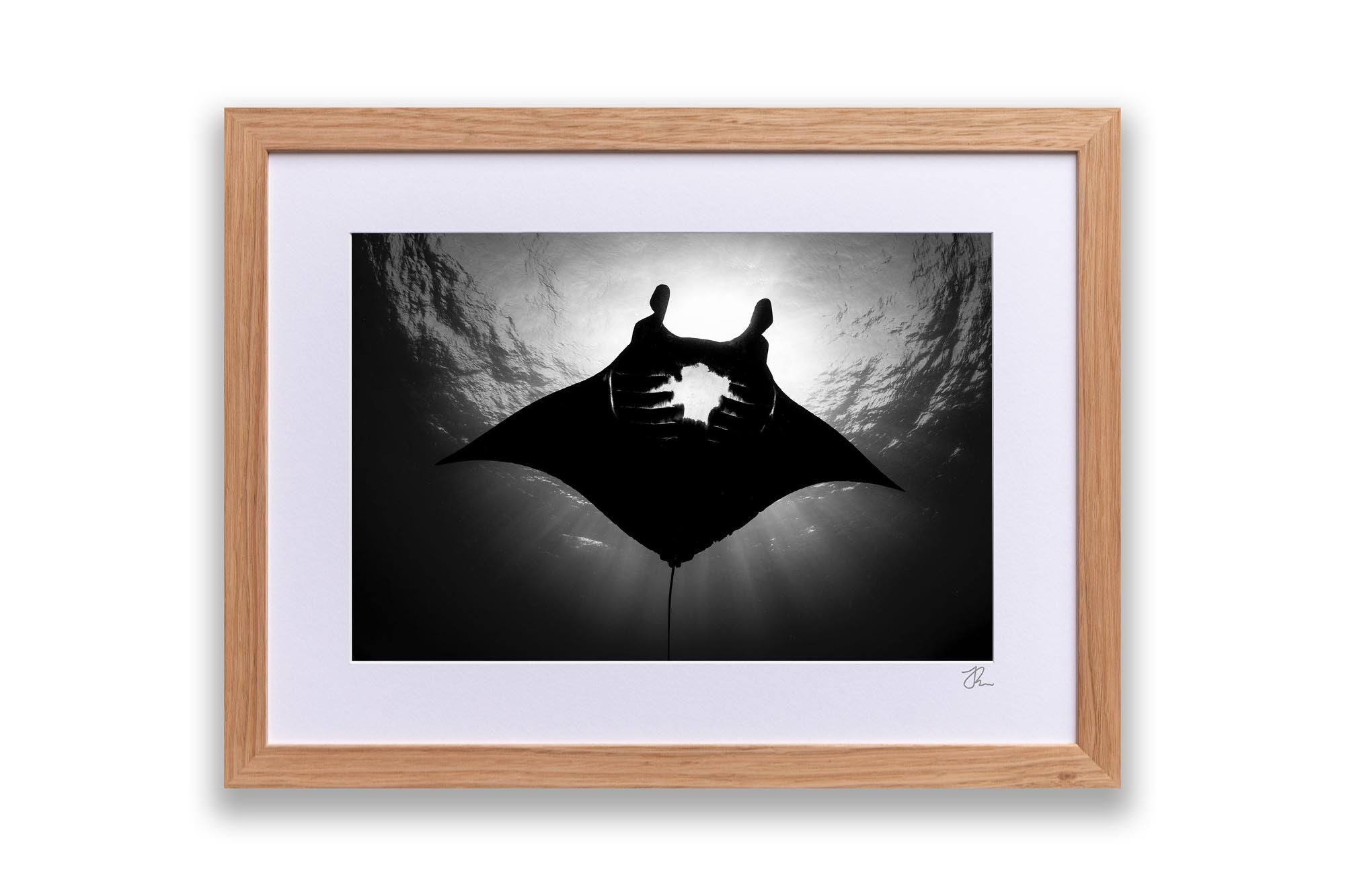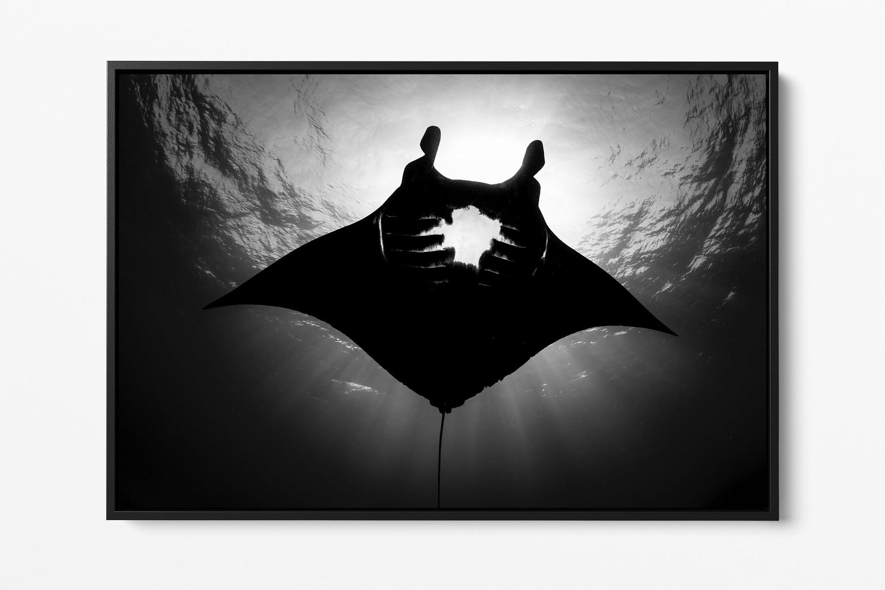 Silhouette Symphony Fine Art Print – Manta Ray at Lady Elliot Island | Monochrome Great Barrier Reef Masterpiece