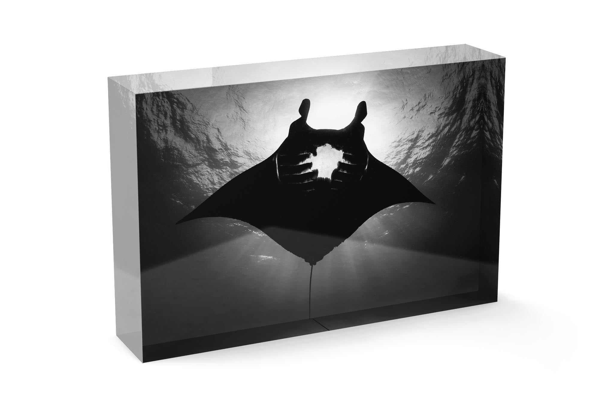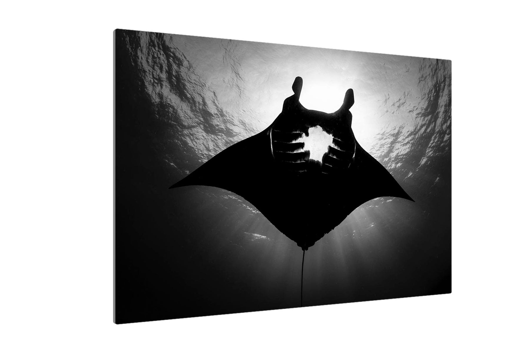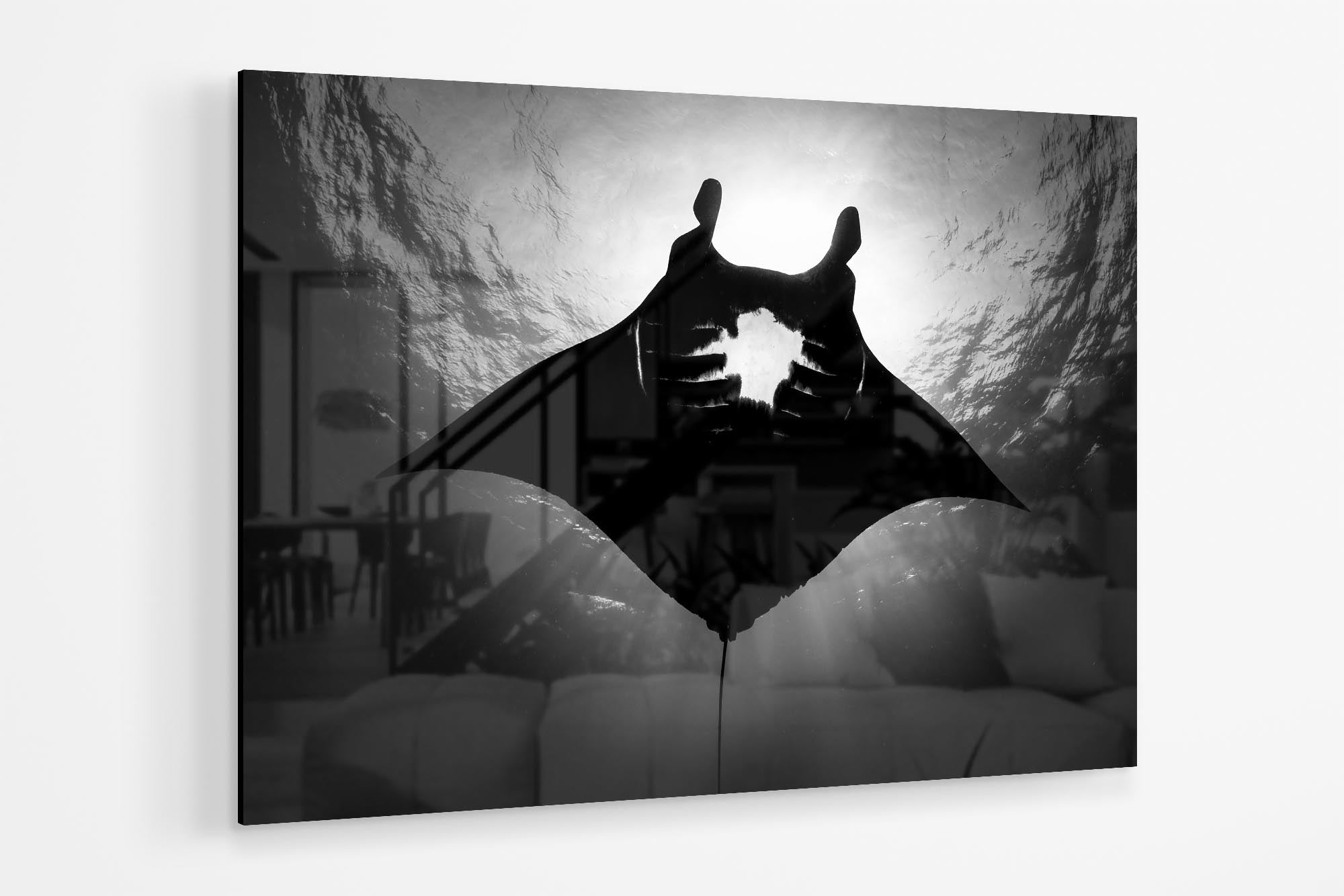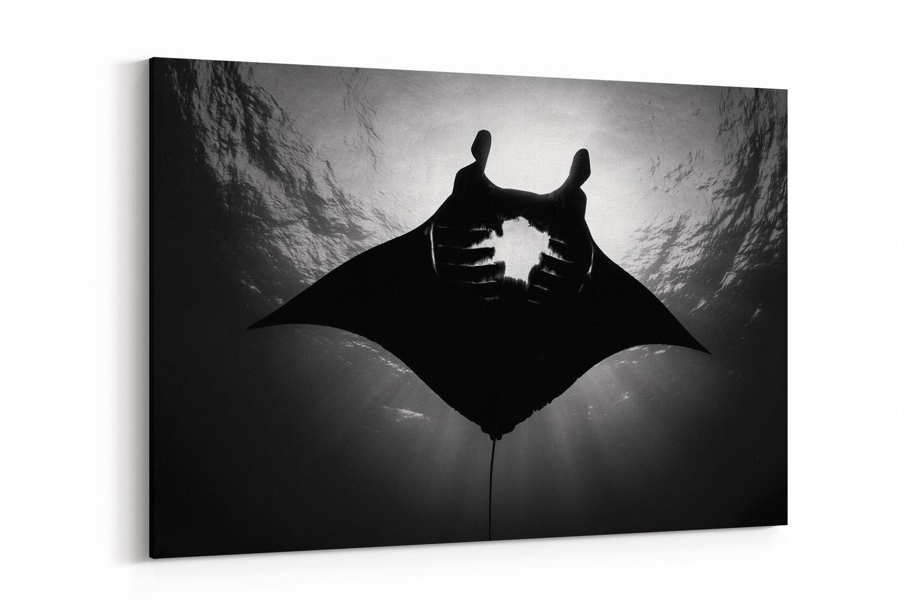 Silhouette Symphony Fine Art Print – Manta Ray at Lady Elliot Island | Monochrome Great Barrier Reef Masterpiece