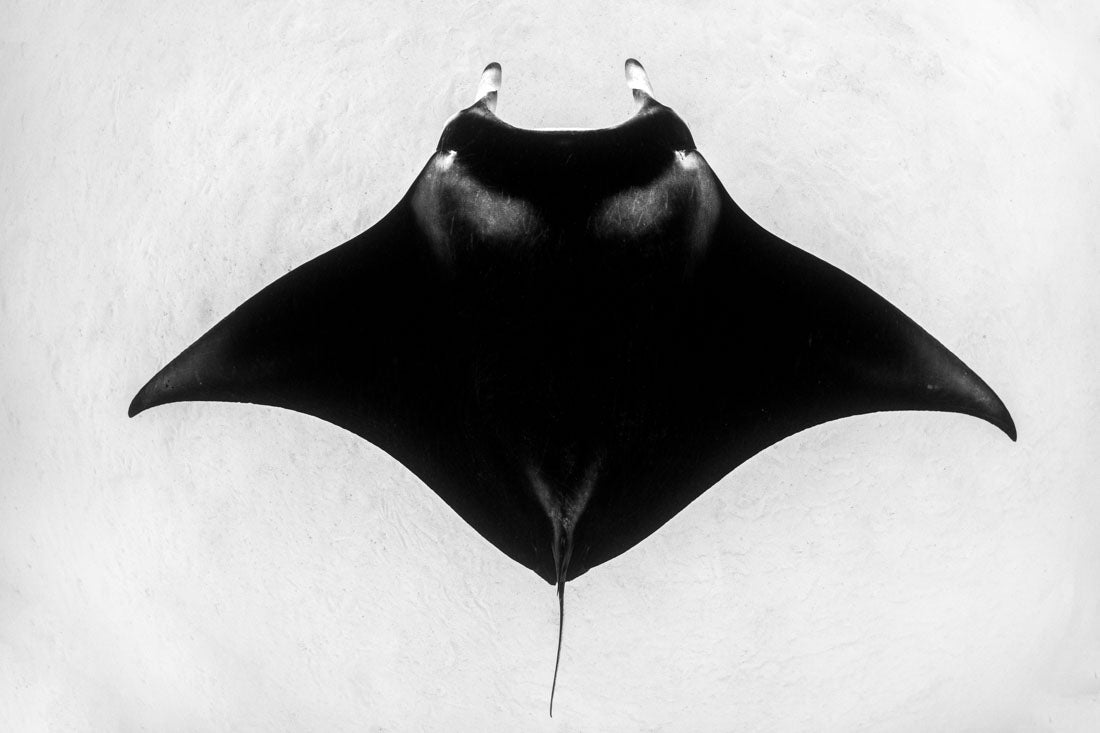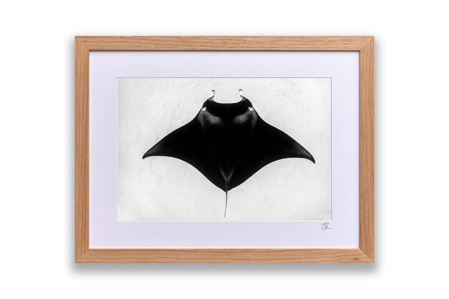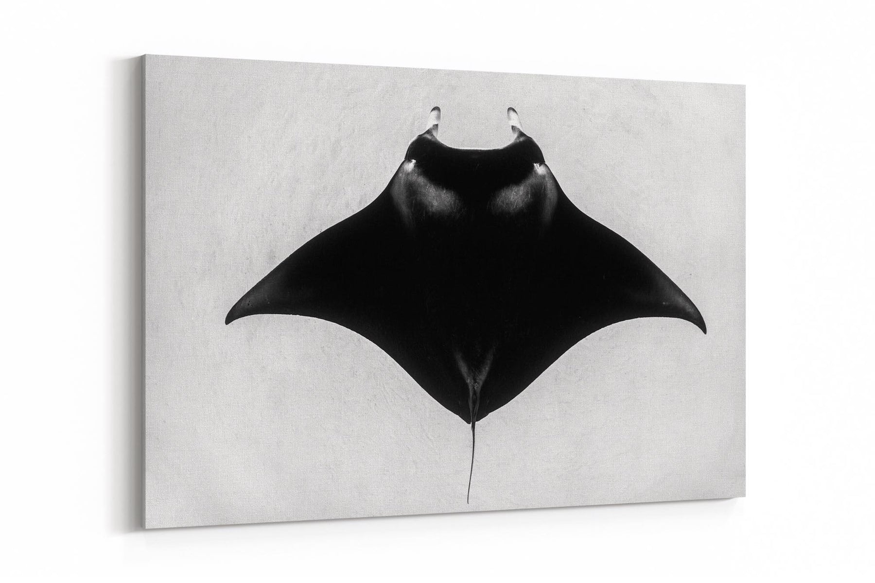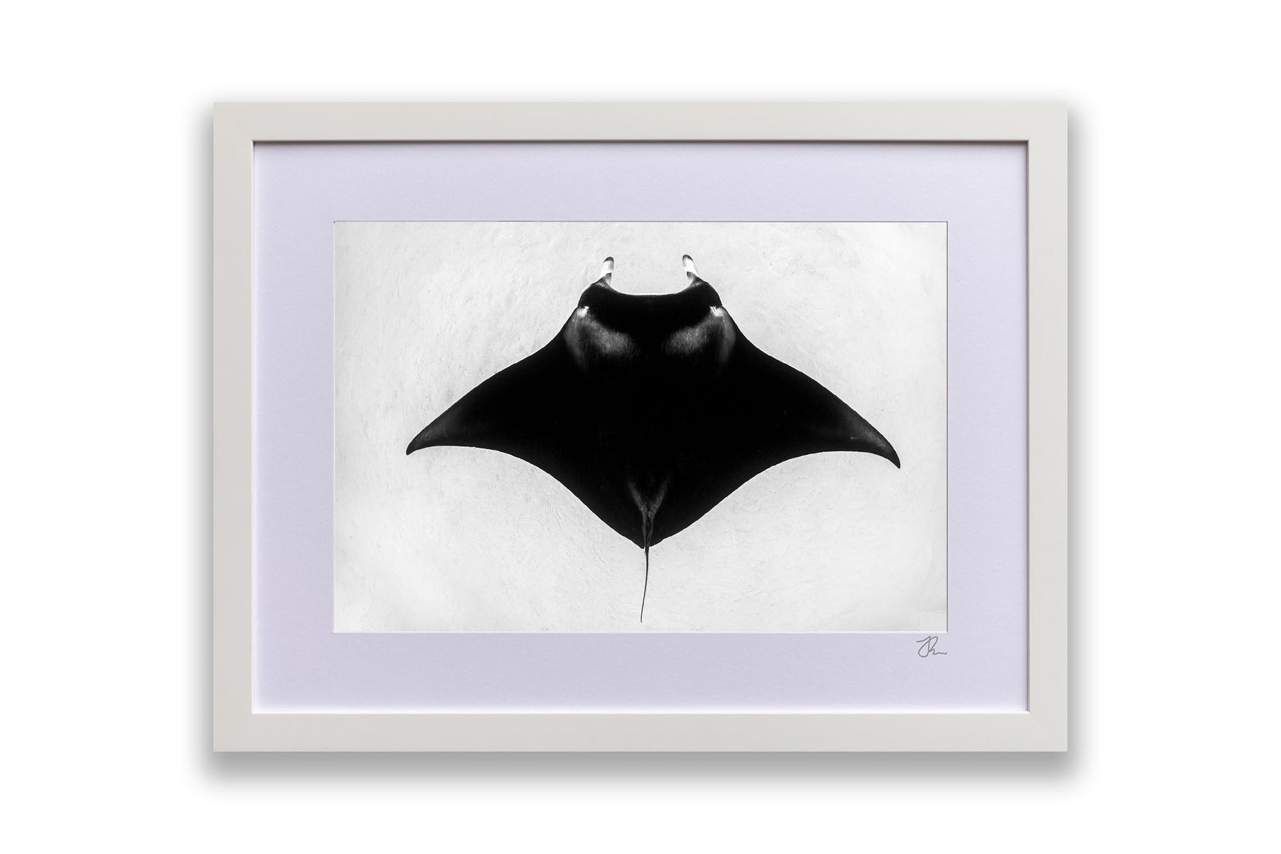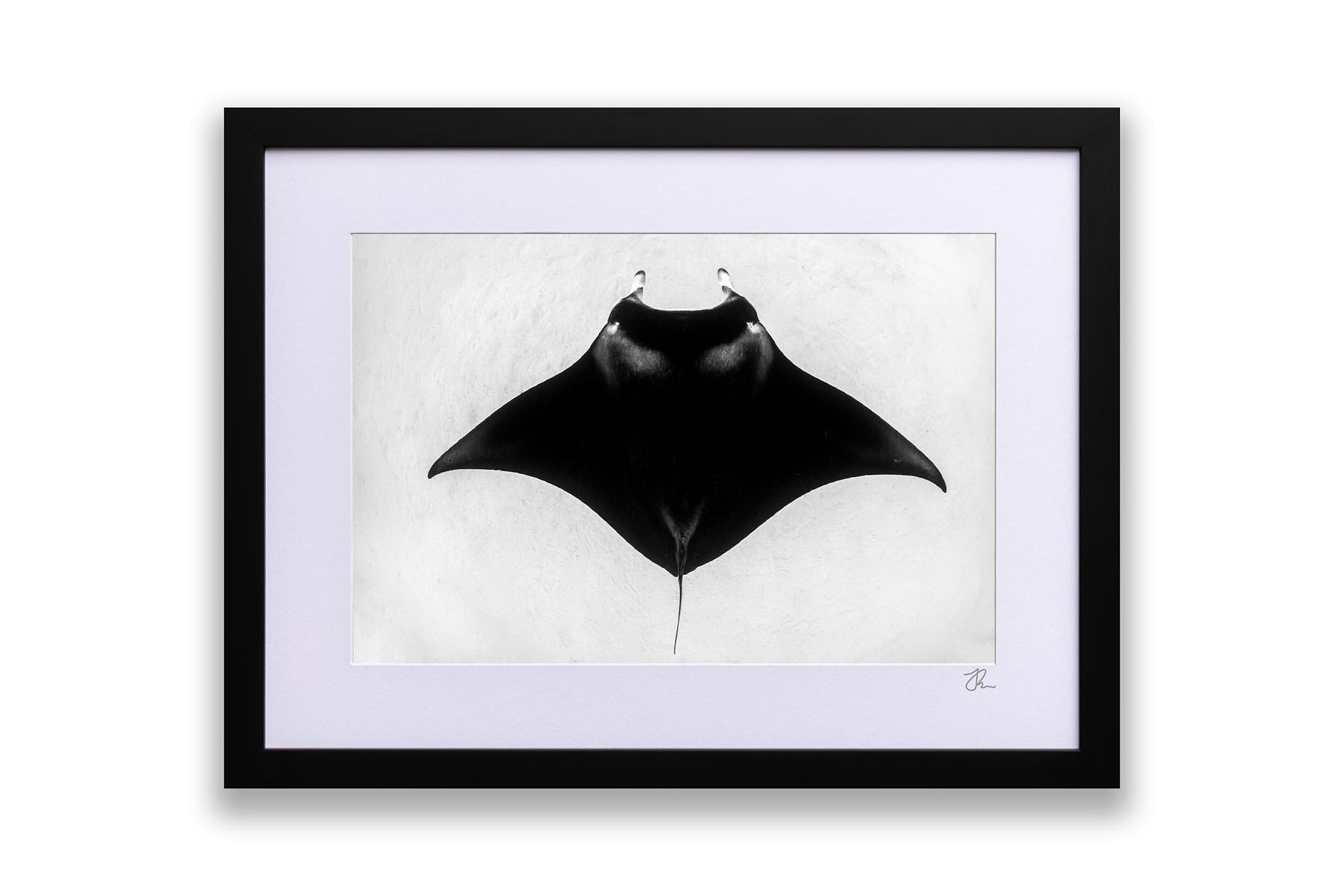 Elegance in Motion Fine Art Print – Manta Ray at Lady Elliot Island | Monochrome Great Barrier Reef Photography