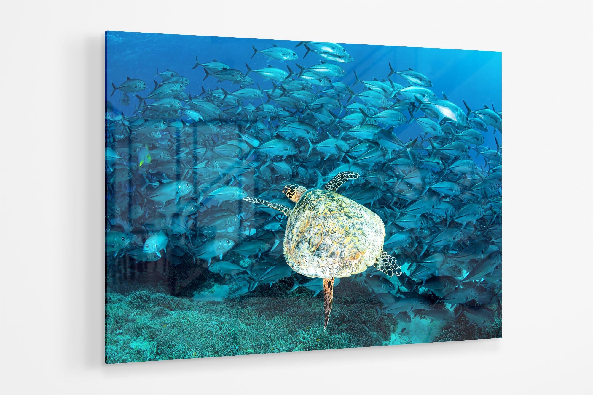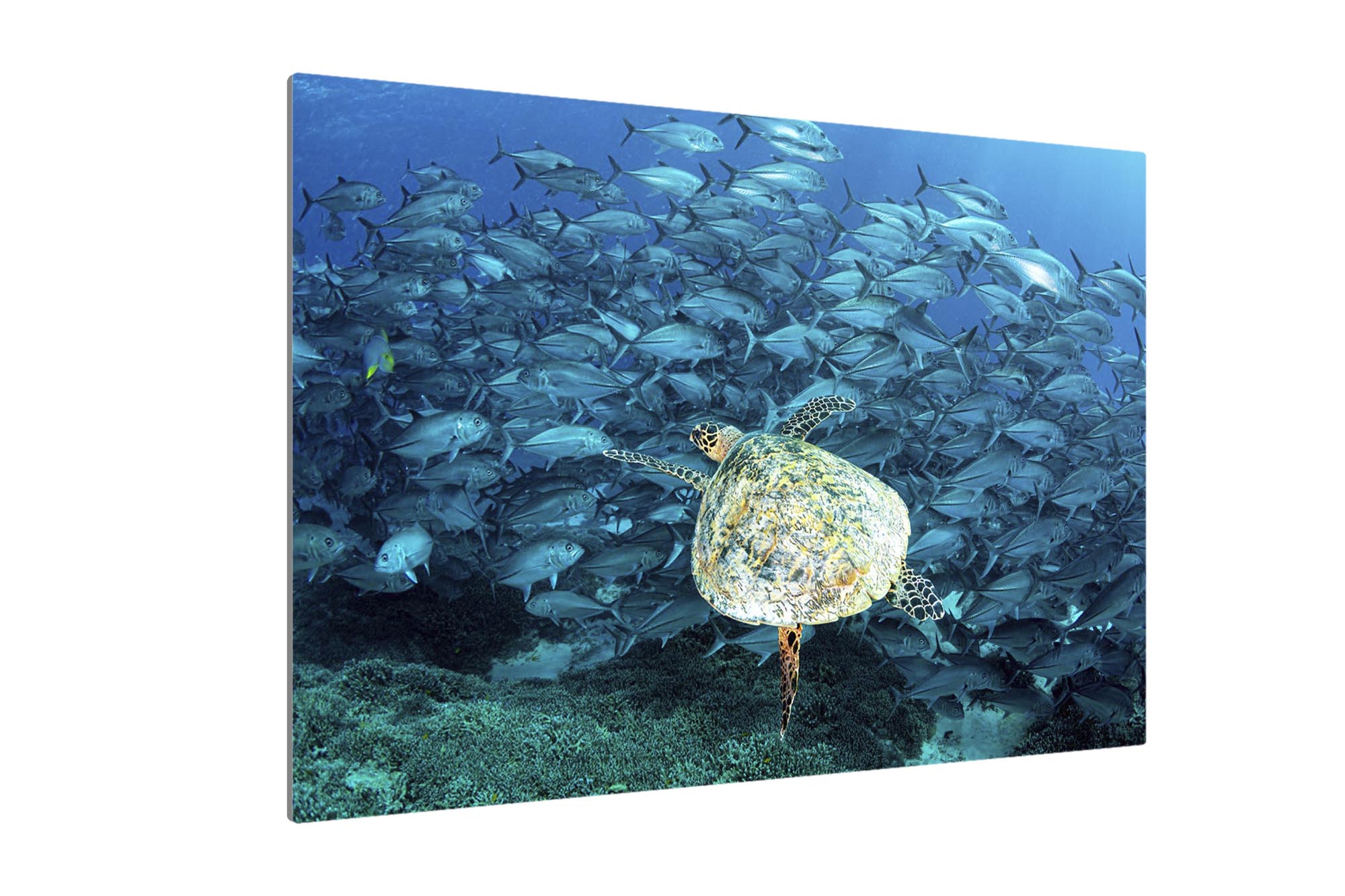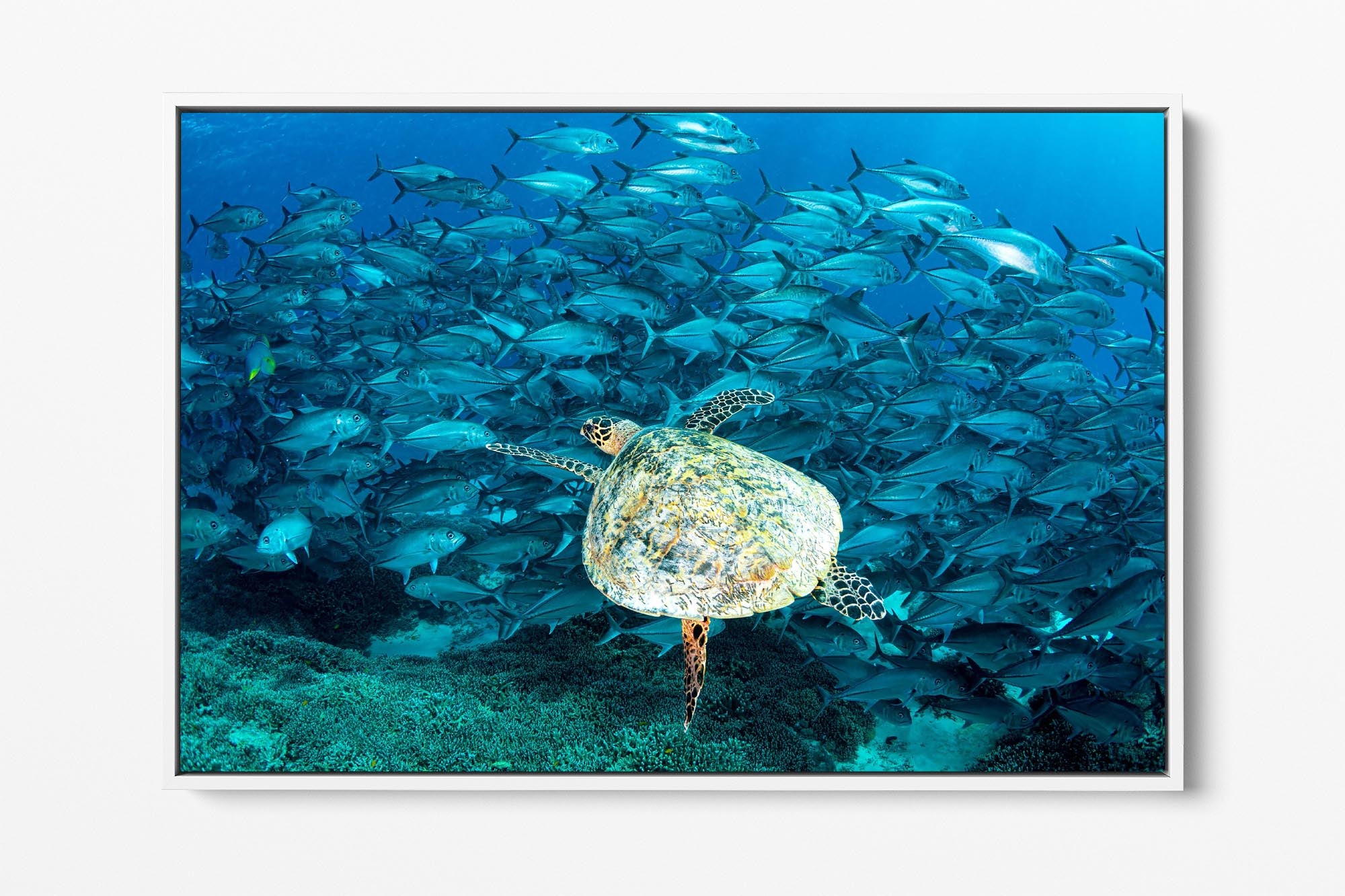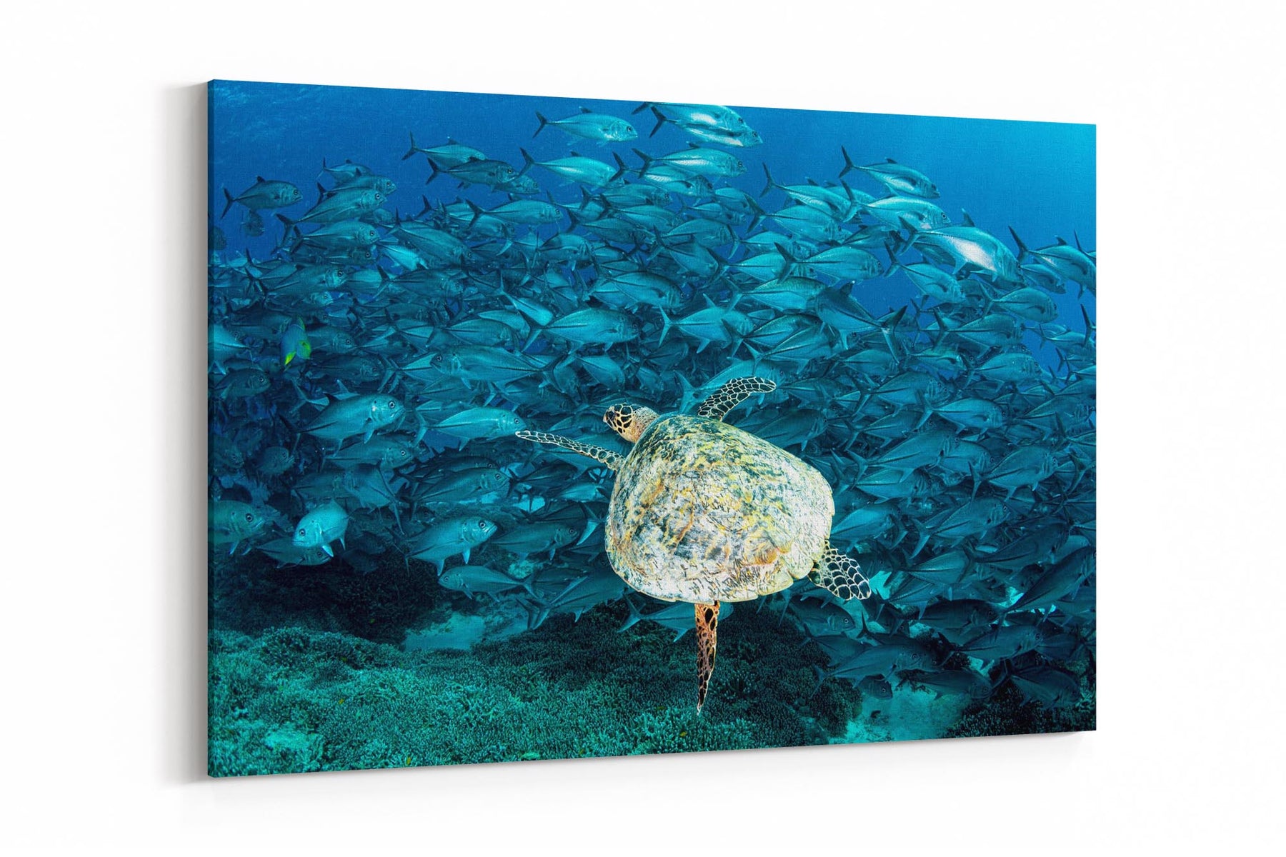 Hawksbill Sea Turtle & Big Eye Trevally School Print – Lady Elliot Island, Southern Great Barrier Reef, Australia