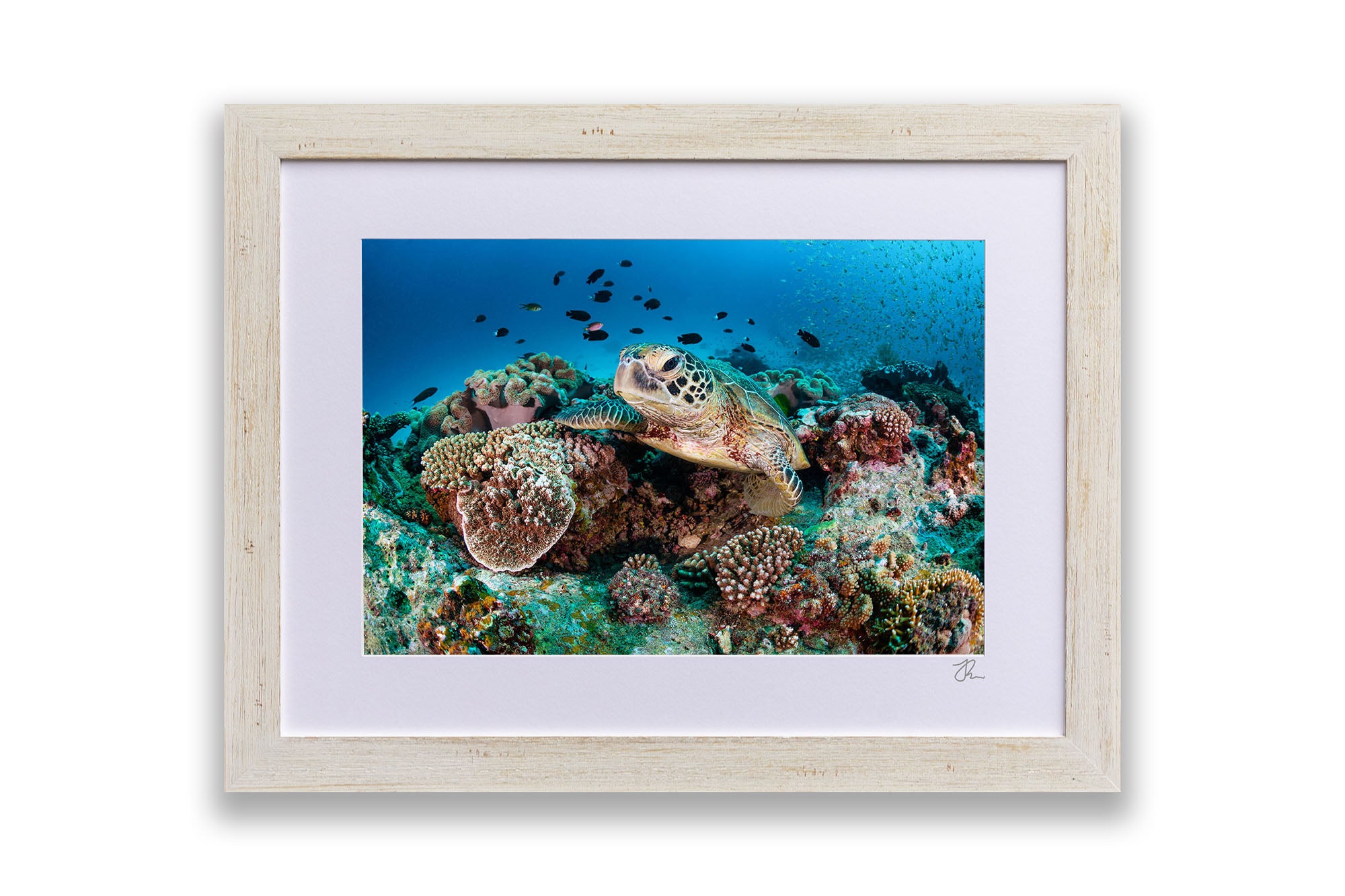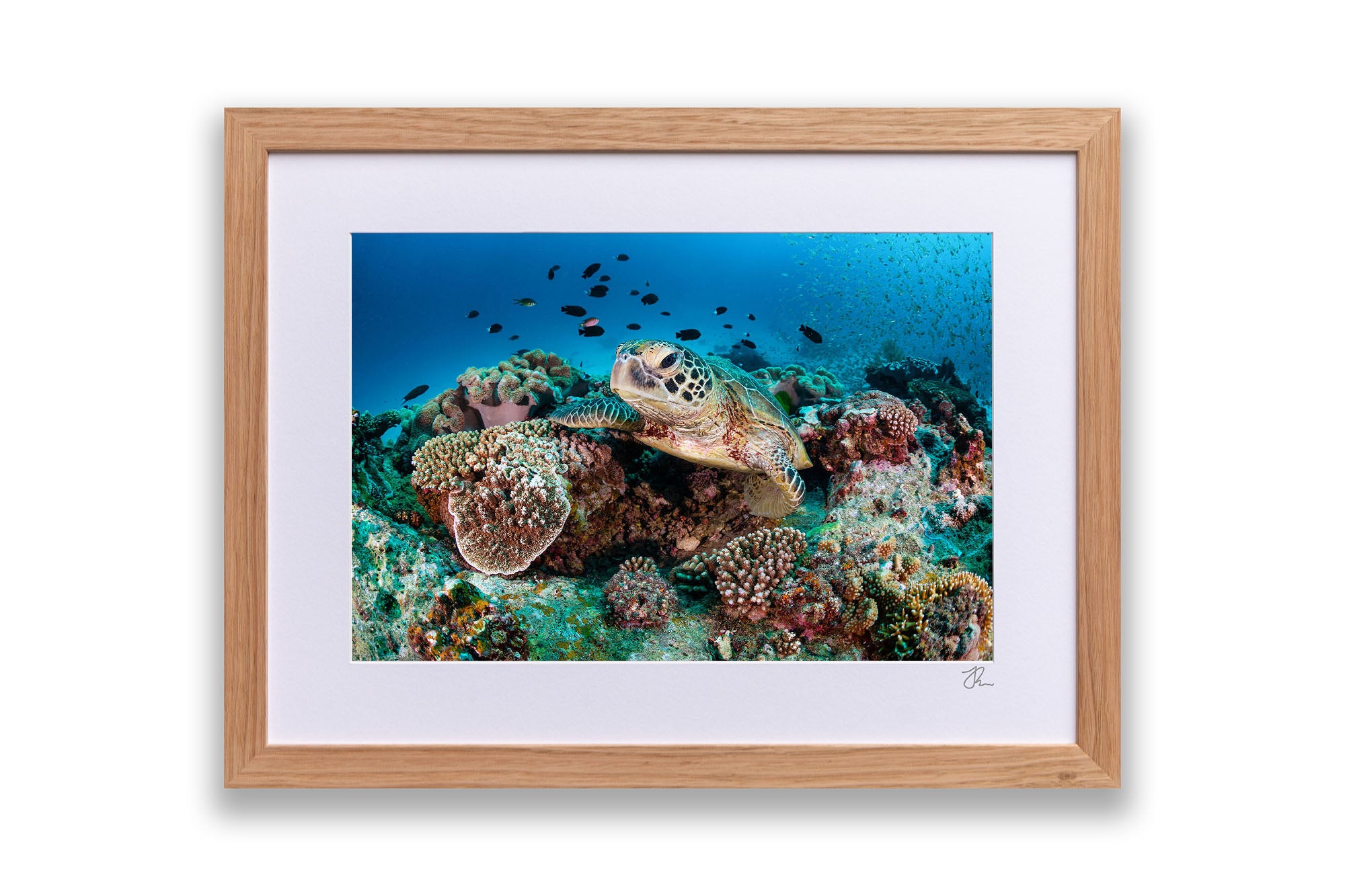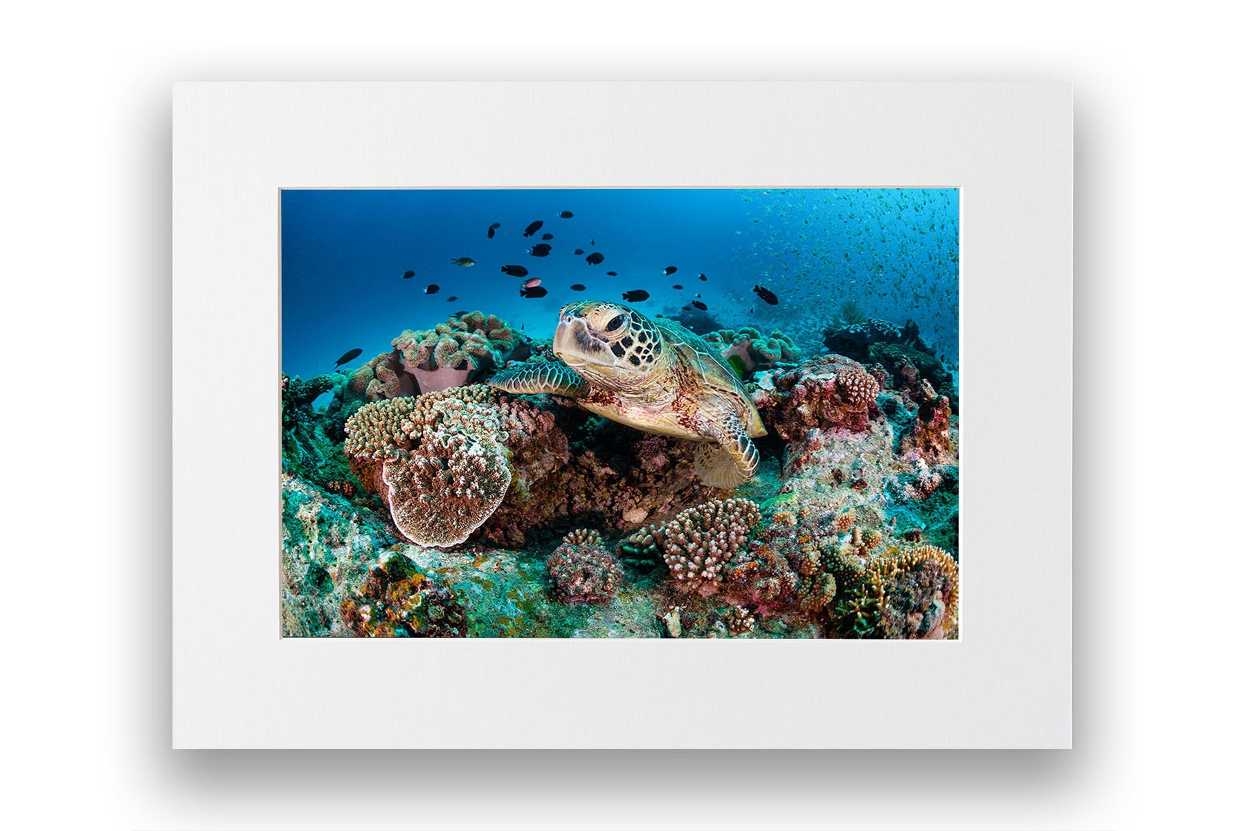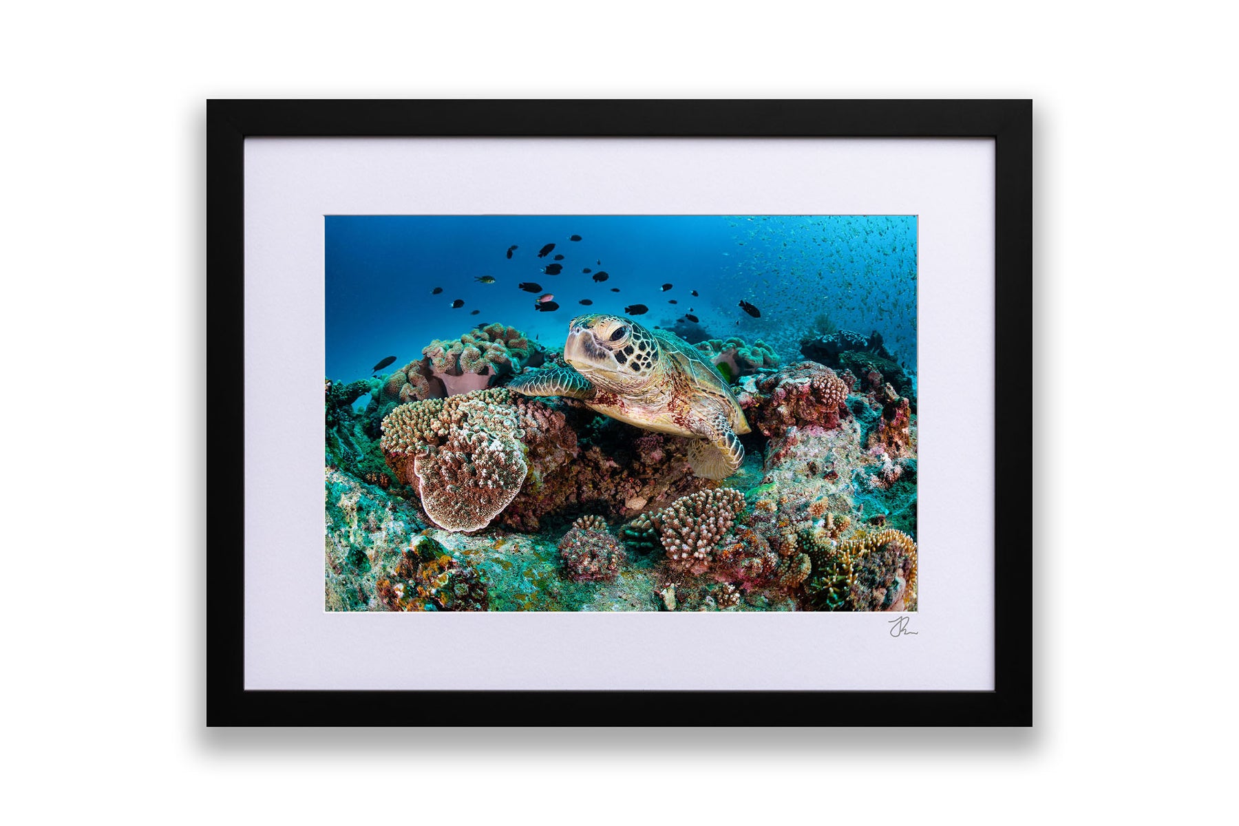 Endangered Green Sea Turtle (Chelonia mydas) Coral Reef Print – Lady Elliot Island, Southern Great Barrier Reef, Queensland