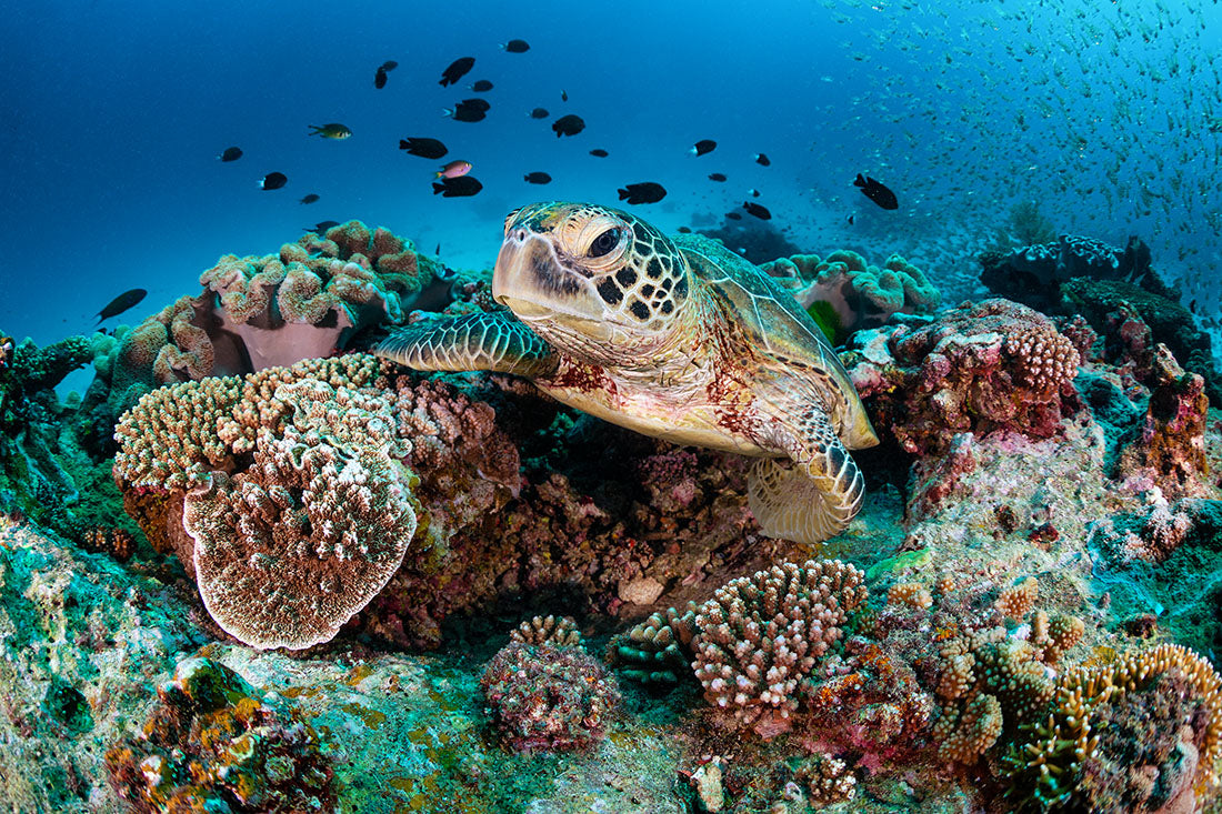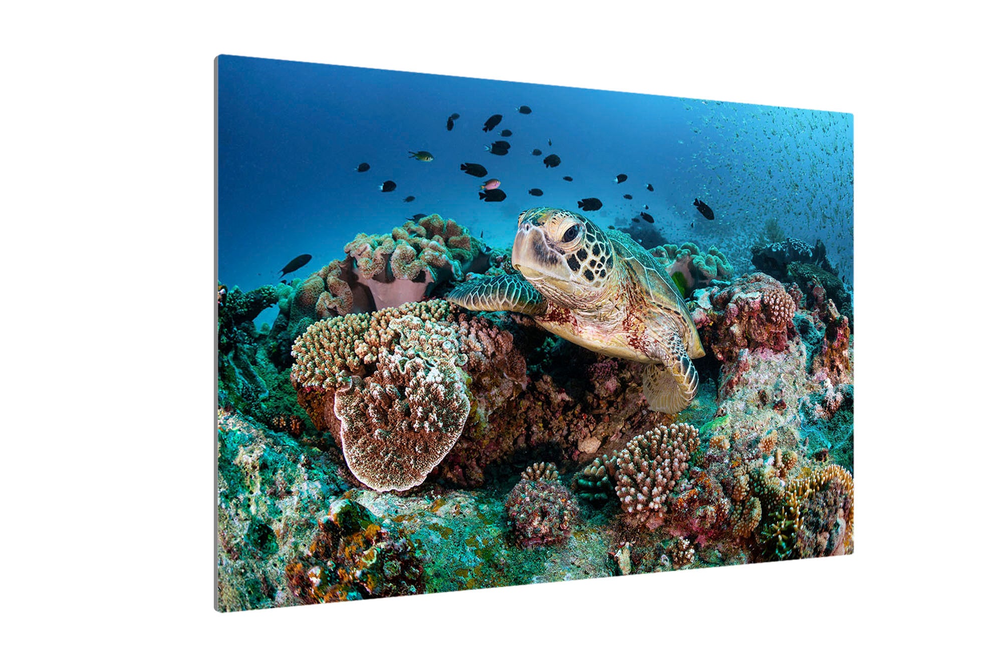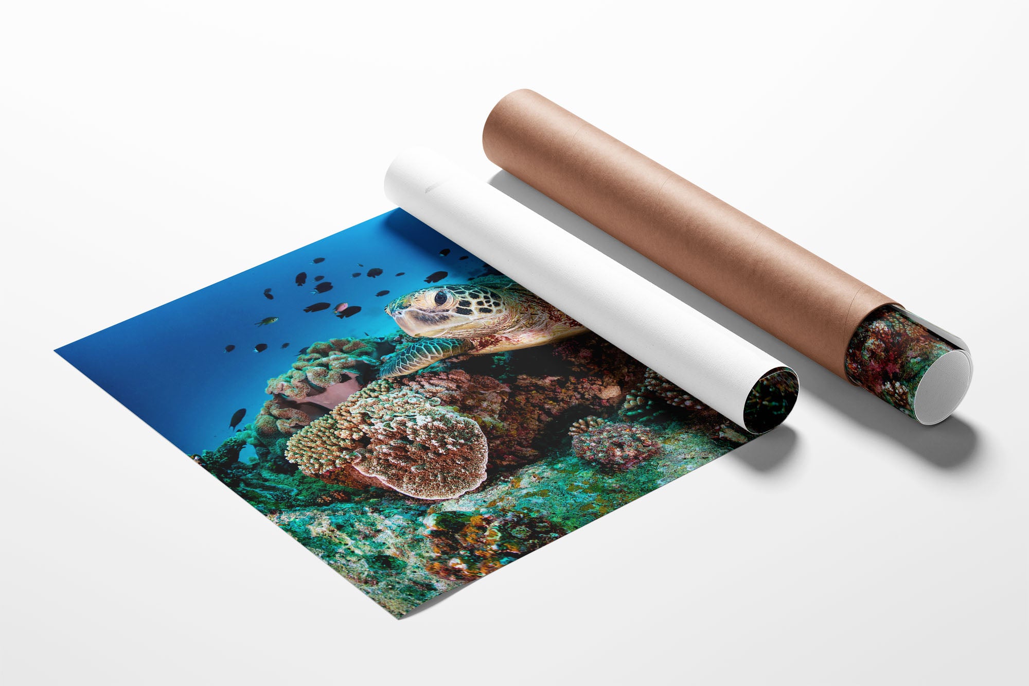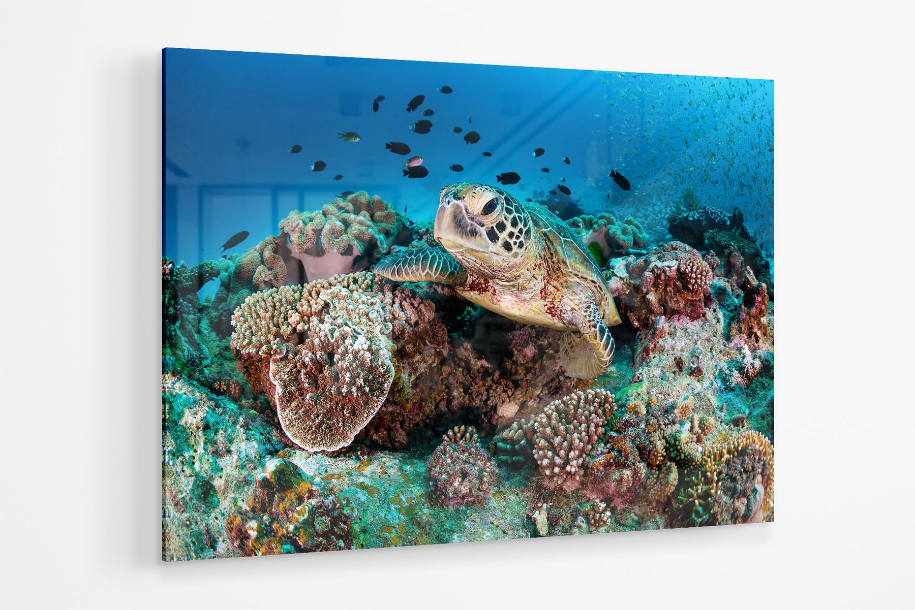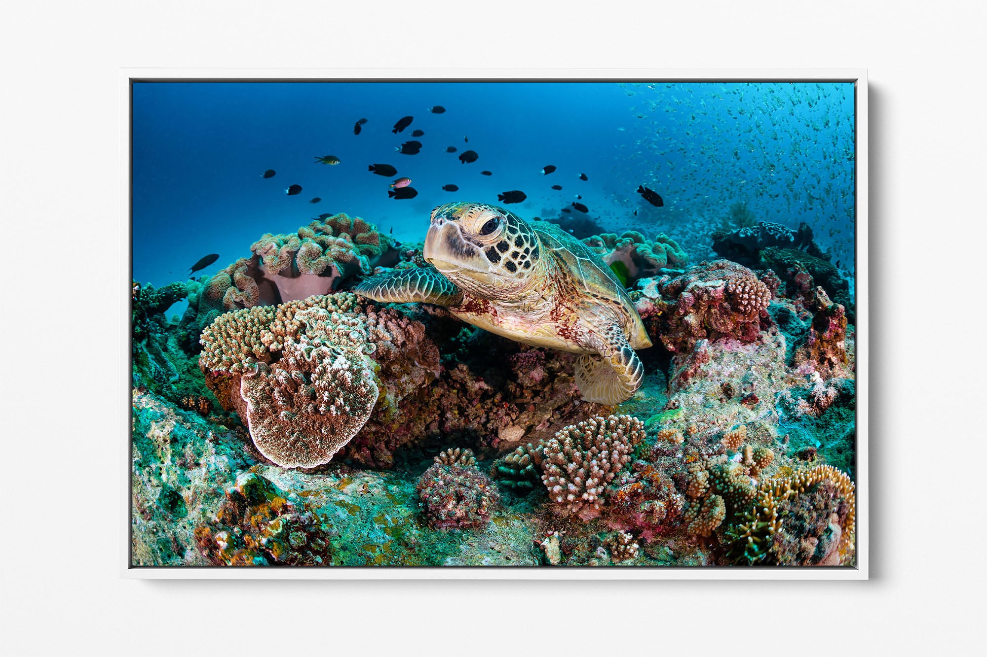 Endangered Green Sea Turtle (Chelonia mydas) Coral Reef Print – Lady Elliot Island, Southern Great Barrier Reef, Queensland