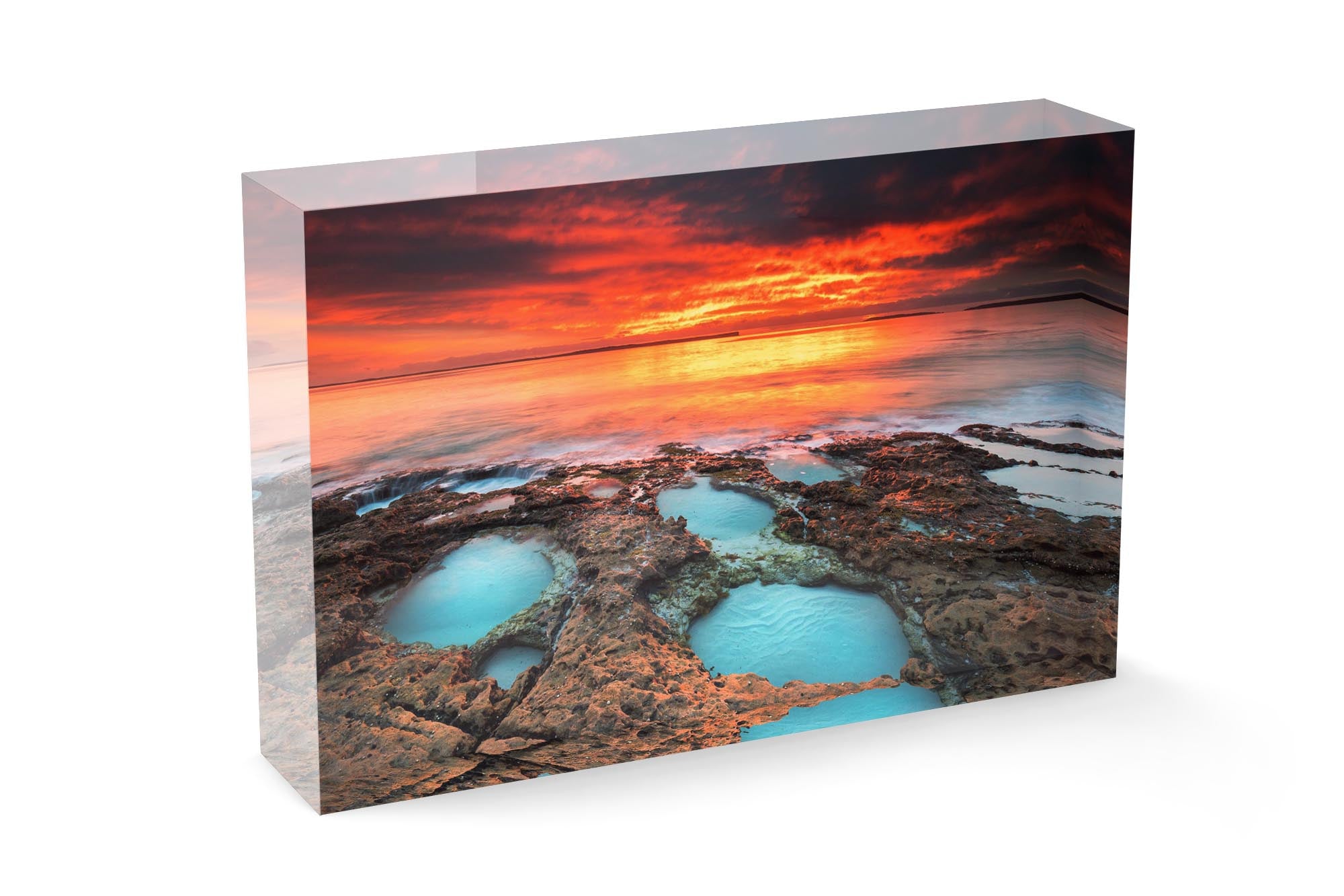 Elevate your decor with Jordans' acrylic blocks, featuring stunning ocean art printed on fine art metallic pearl paper. These free-standing acrylic blocks are perfect for display on desks or shelves, offering a striking 3D effect thanks to their thick 30mm acrylic and diamond-polished edges. Hand-finished for fine detail, the blocks enhance the vibrancy and depth of each photo.
