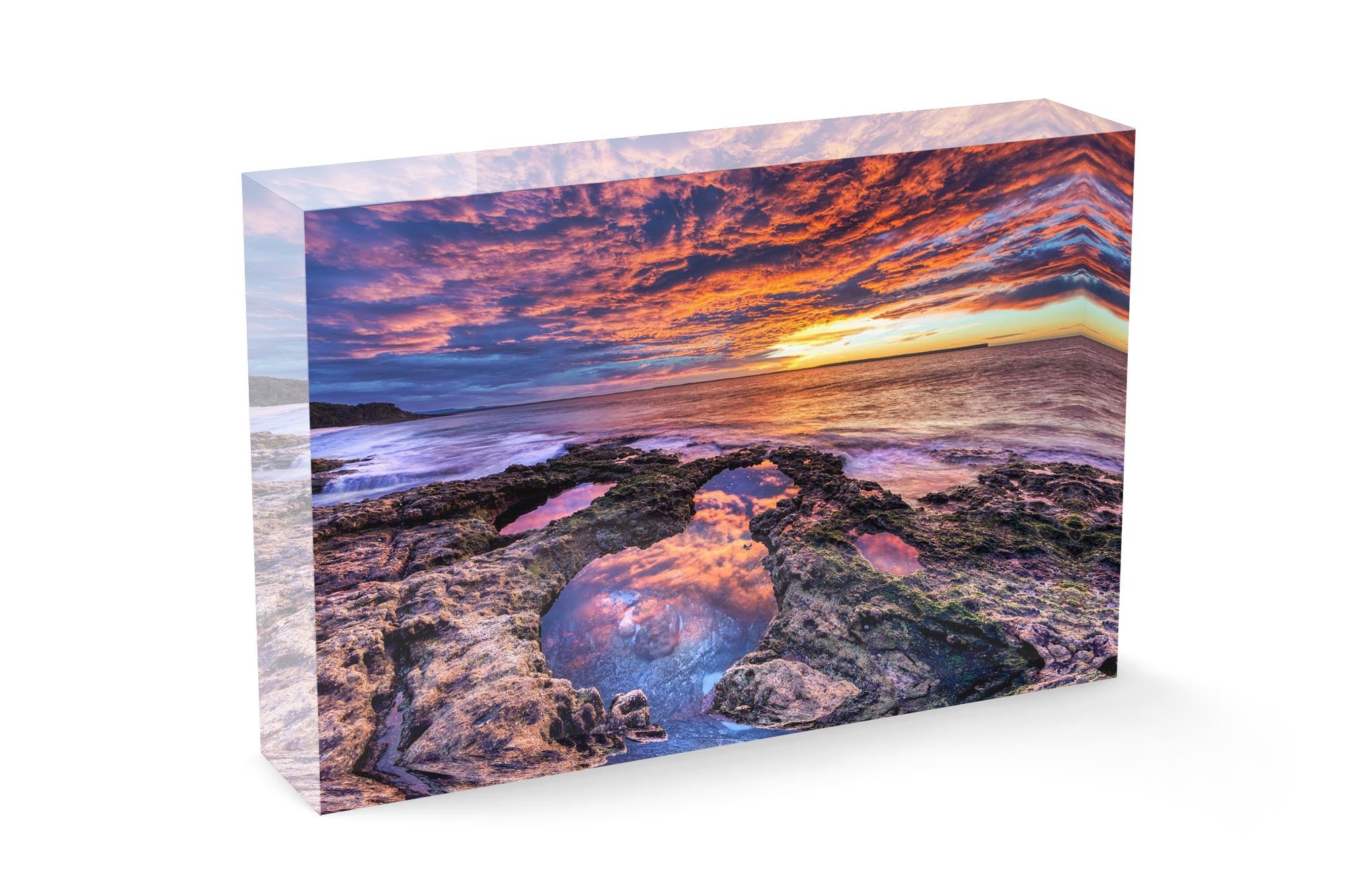 Elevate your decor with Jordans' acrylic blocks, featuring stunning ocean art printed on fine art metallic pearl paper. These free-standing acrylic blocks are perfect for display on desks or shelves, offering a striking 3D effect thanks to their thick 30mm acrylic and diamond-polished edges. Hand-finished for fine detail, the blocks enhance the vibrancy and depth of each photo.