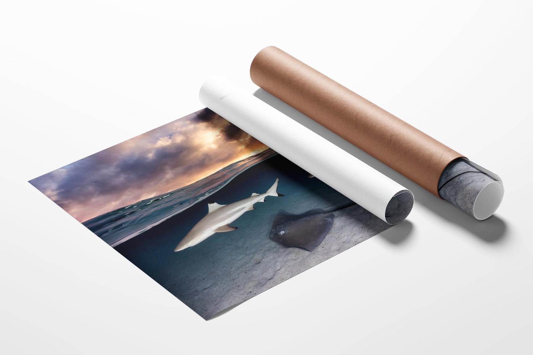 Blacktip Reef Shark & Whiptail Stingray Split-Shot Print – Mo’orea Lagoon, French Polynesia