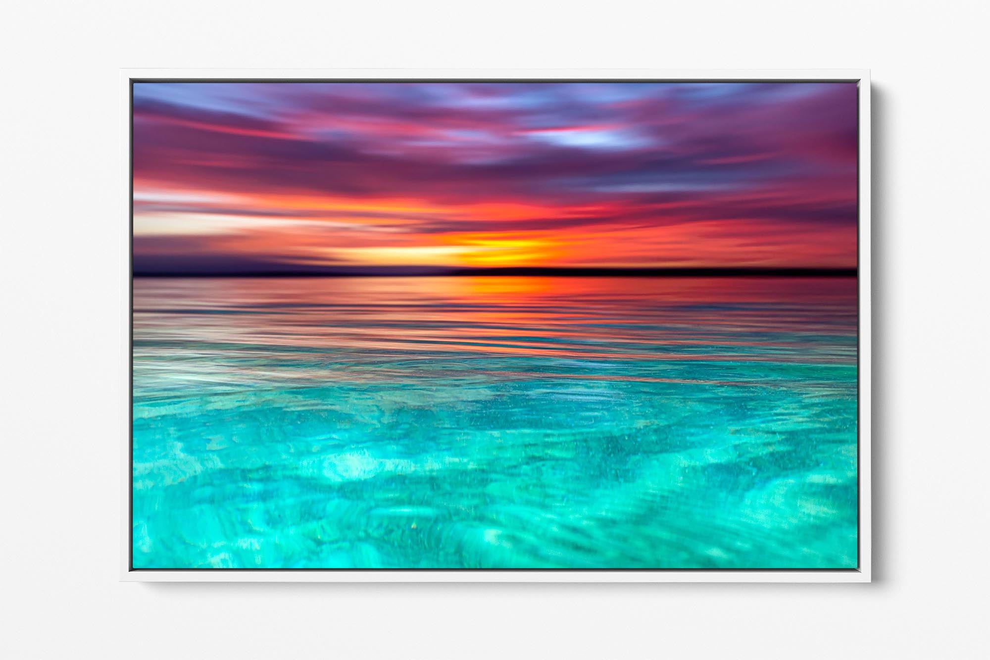 The fine art canvas come stretched around an internal timber frame however there is the option to add a float frame to the exterior of the fine art canvas. Float frames are available in white, black and Tasmanian oak and are a great way to add more depth and contrast to our fine art canvas range.